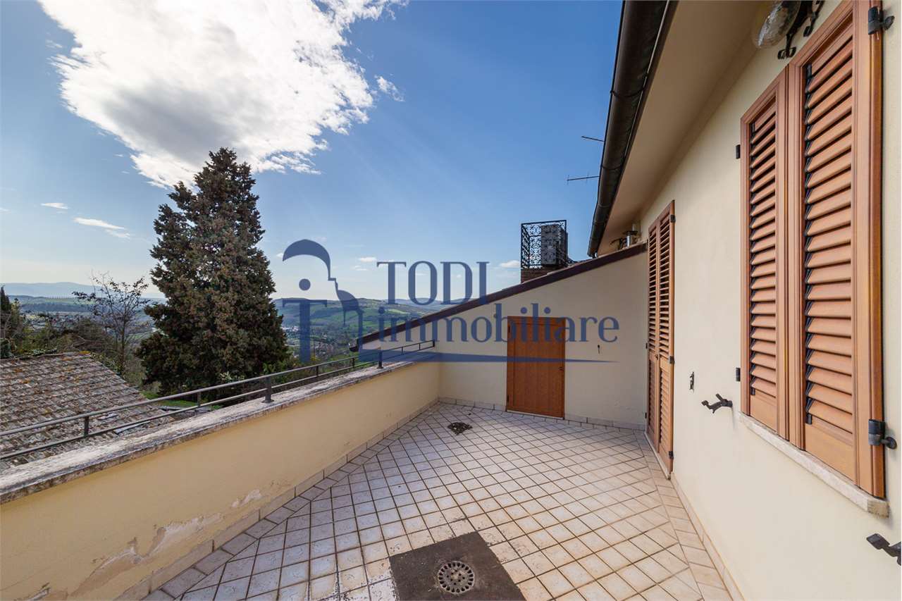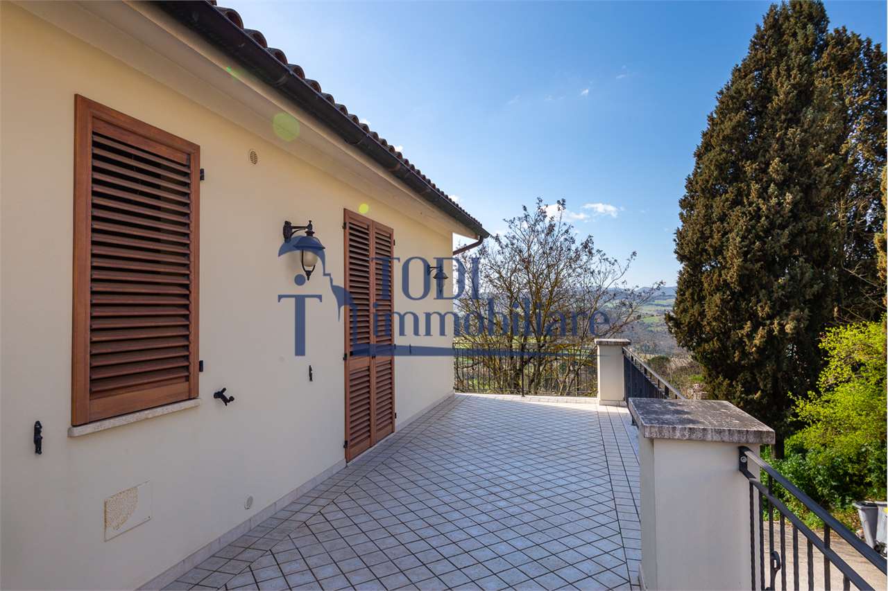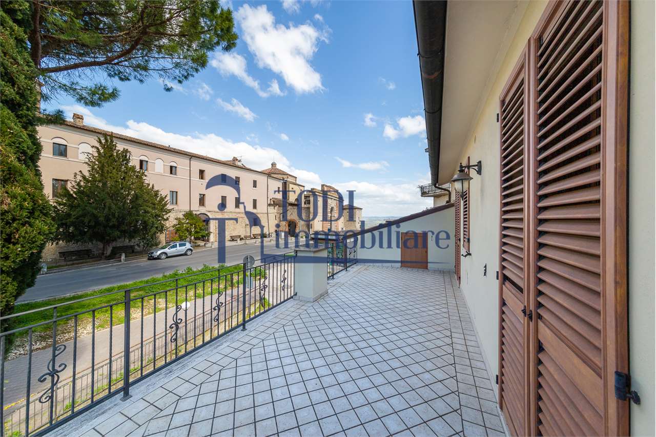 In vendita a Todi, proponiamo un\'interessante porzione di casa subito abitabile, adiacente al centro storico, situata in una posizione privilegiata. Il prezzo di vendita è di 340.000 EURO. L\'immobile si trova nelle immediate vicinanze di scuole, uffici vari, ambulatori e negozi, garantendo un facile accesso a tutti i servizi necessari uscendo di casa semplicemente a piedi. La Classe Energetica è di tipo B, quindi ha ottime caratteristiche che garantiscono un ottimo risparmio energetico in tutte le stagioni dell\'anno.\nL\'immobile dispone di ingresso indipendente, 3 terrazzi, parcheggio privato e un\'estesa vista panoramica su più lati dell\'abitazione. \nLa posizione è comoda per uscire di casa a piedi per ogni necessità, rendendo la casa ideale per chi desidera vivere in un ambiente residenziale e ben servito.\nChiamaci per poterla vedere.