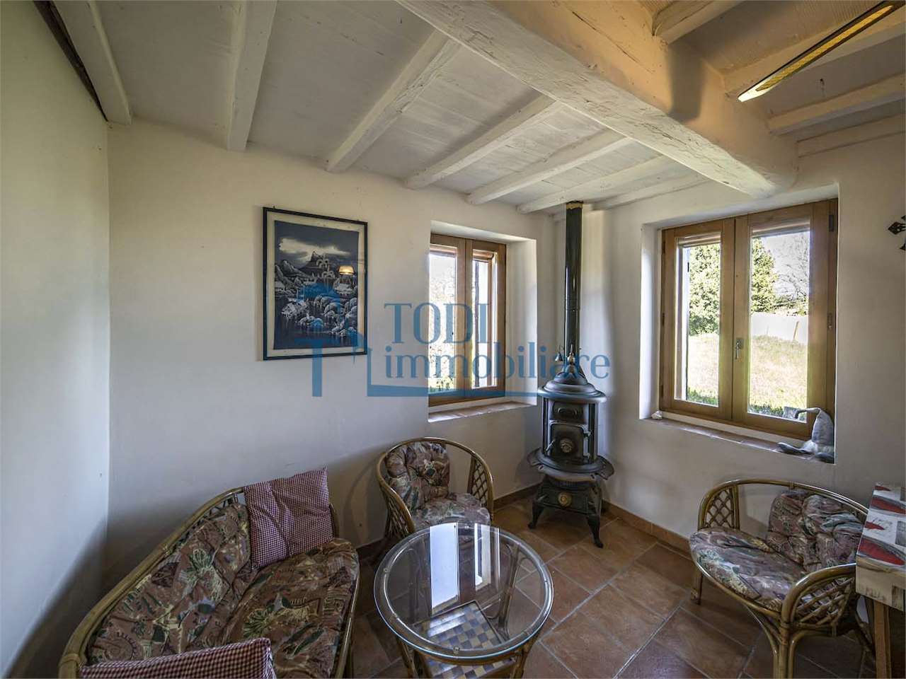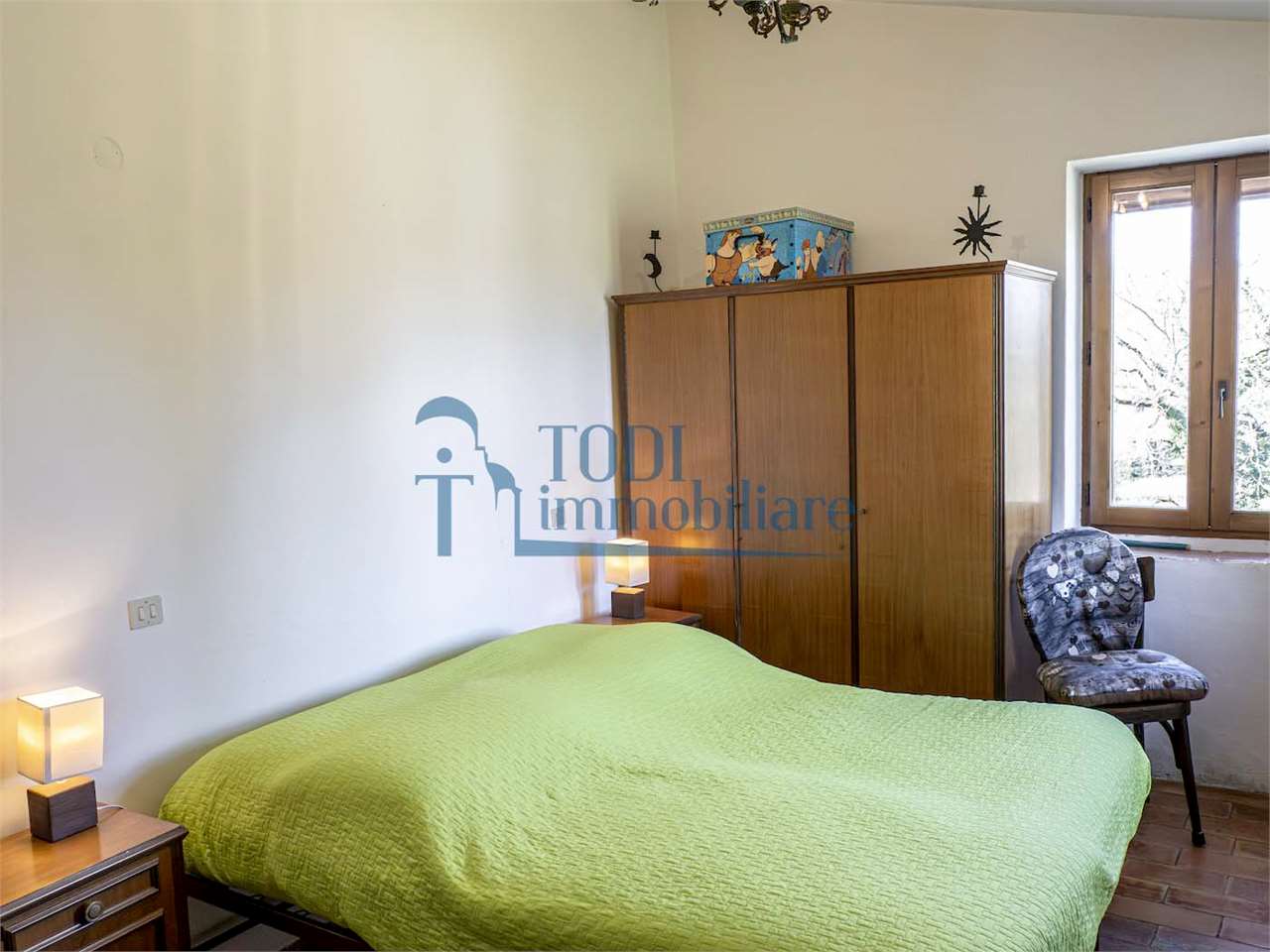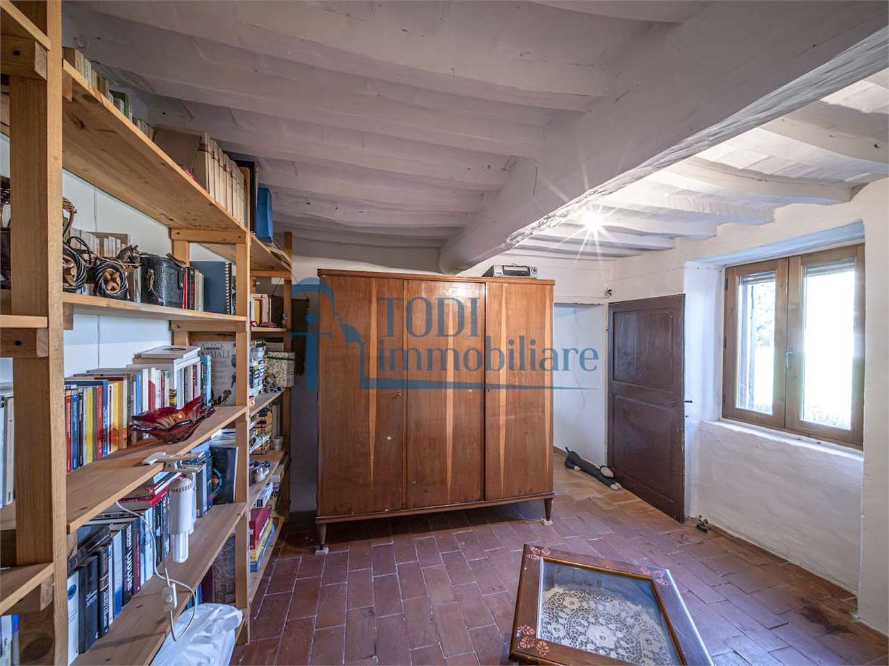 Rif. A074X – Questa meravigliosa casa di campagna si trova a margine dell\'abitato di Fratta Todina. L’abitazione in oggetto é la scelta giusta per chi vuole stare immerso nella tranquillità e la bellezza della campagna umbra ed al tempo stesso non vuole stare isolato, grazie ad alcune case nelle vicinanze, ed ai servizi a soli 800 metri. \nLa casa gode di una bella vista sulle colline circostanti, grazie alla sua posizione rialzata.\nLa proprietà é composta dall\'unità principale con al piano primo ingresso, pranzo, cucina, soggiorno e un ulteriore soggiorno studio. \nSalendo al piano secondo vi sono 3 camere e un bagno.\nAl piano terra vi é un magazzino e due locali dove é possibile realizzare un appartamento indipendente, composto da zona giorno, bagno e cucina.\nConclude la proprietà un annesso che fa da magazzino e garage, e il terreno dove é possibile realizzare il giardino o un orto.\nChiamaci per maggiori informazioni o per un appuntamento.