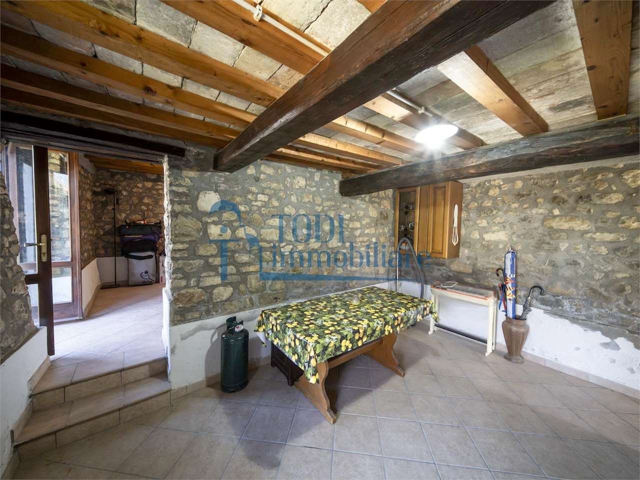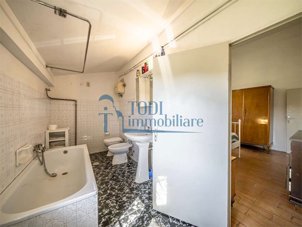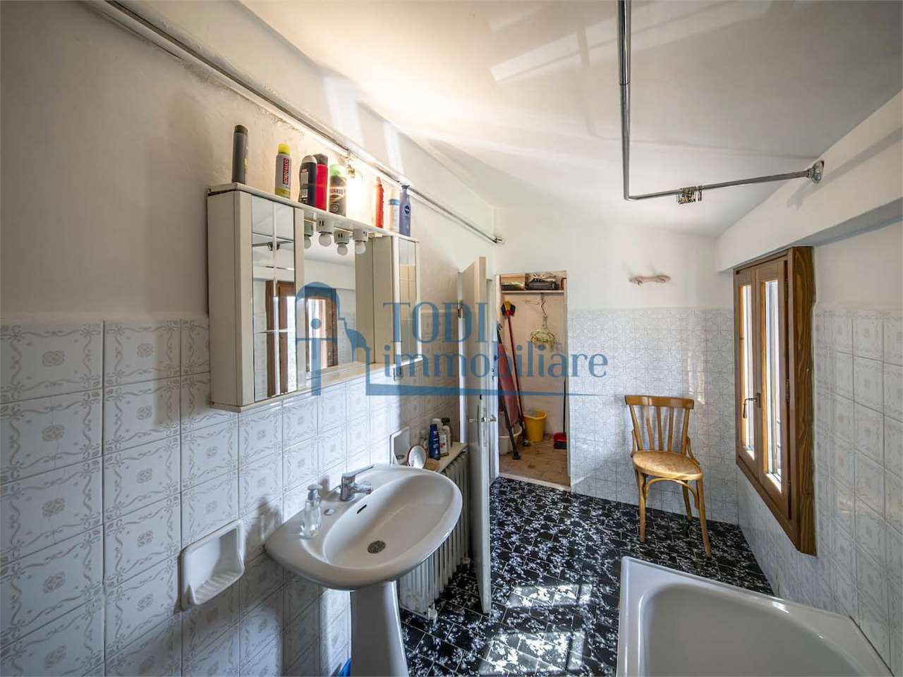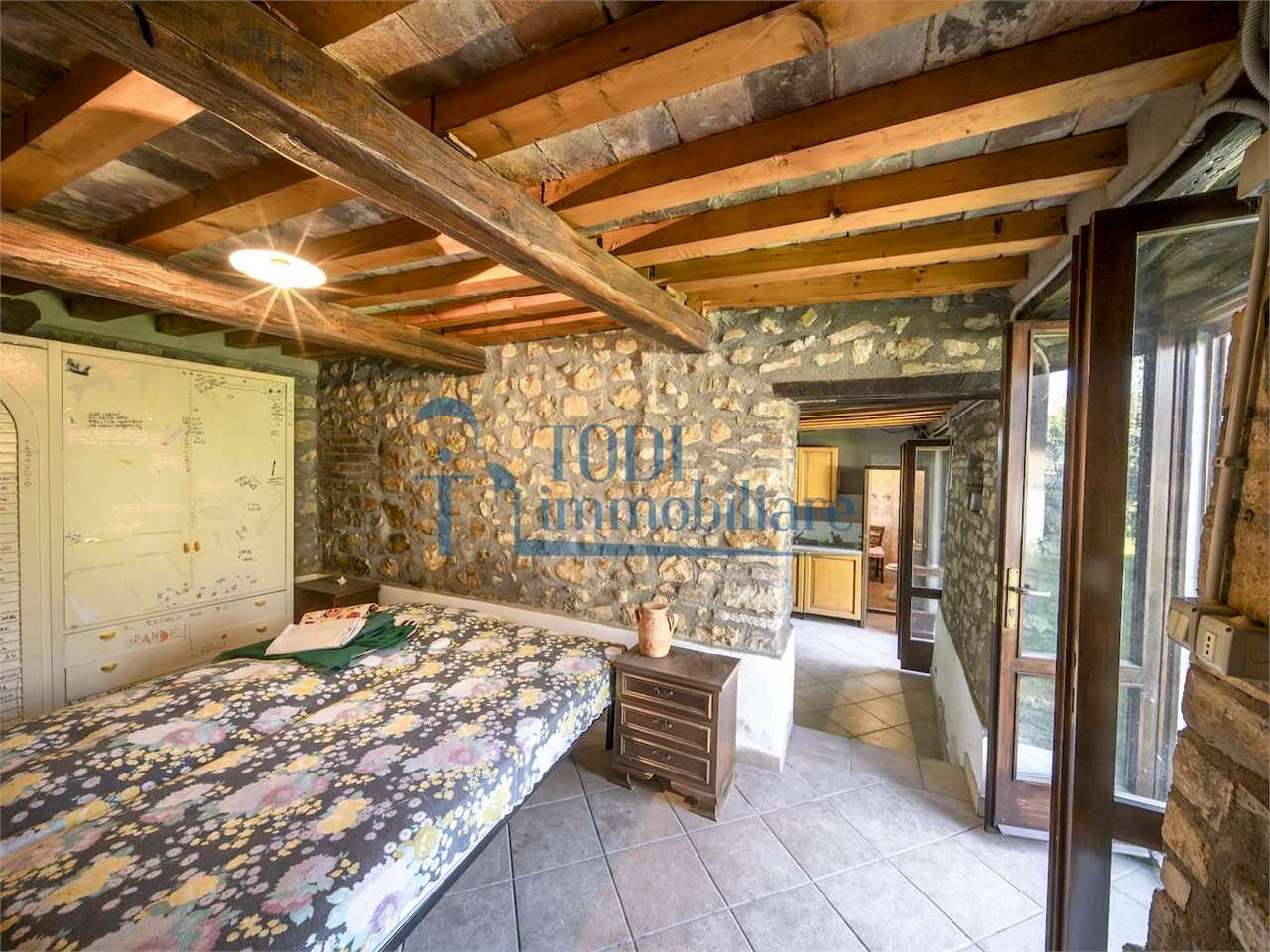 Rif. A074X – Questa meravigliosa casa di campagna si trova a margine dell\'abitato di Fratta Todina. L’abitazione in oggetto é la scelta giusta per chi vuole stare immerso nella tranquillità e la bellezza della campagna umbra ed al tempo stesso non vuole stare isolato, grazie ad alcune case nelle vicinanze, ed ai servizi a soli 800 metri. \nLa casa gode di una bella vista sulle colline circostanti, grazie alla sua posizione rialzata.\nLa proprietà é composta dall\'unità principale con al piano primo ingresso, pranzo, cucina, soggiorno e un ulteriore soggiorno studio. \nSalendo al piano secondo vi sono 3 camere e un bagno.\nAl piano terra vi é un magazzino e due locali dove é possibile realizzare un appartamento indipendente, composto da zona giorno, bagno e cucina.\nConclude la proprietà un annesso che fa da magazzino e garage, e il terreno dove é possibile realizzare il giardino o un orto.\nChiamaci per maggiori informazioni o per un appuntamento.