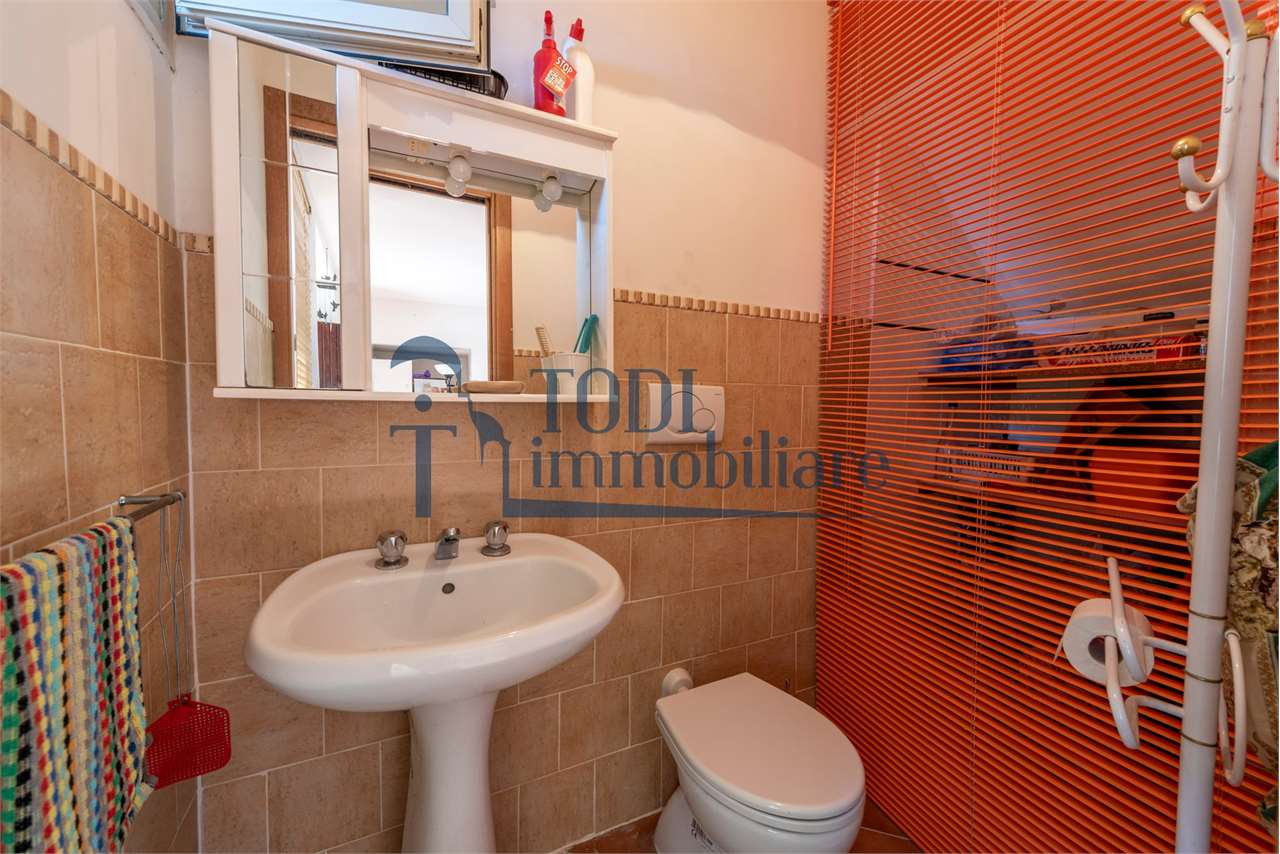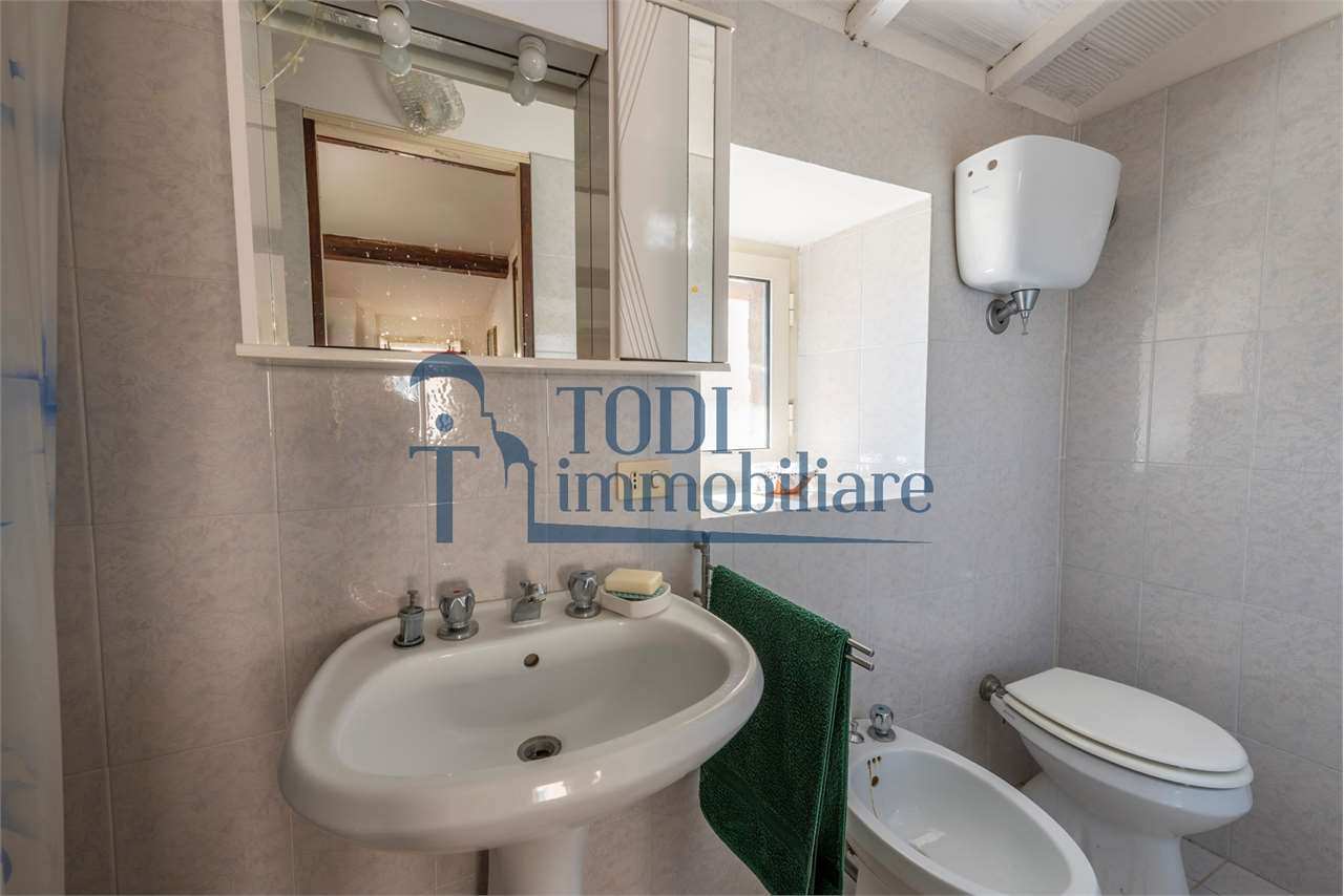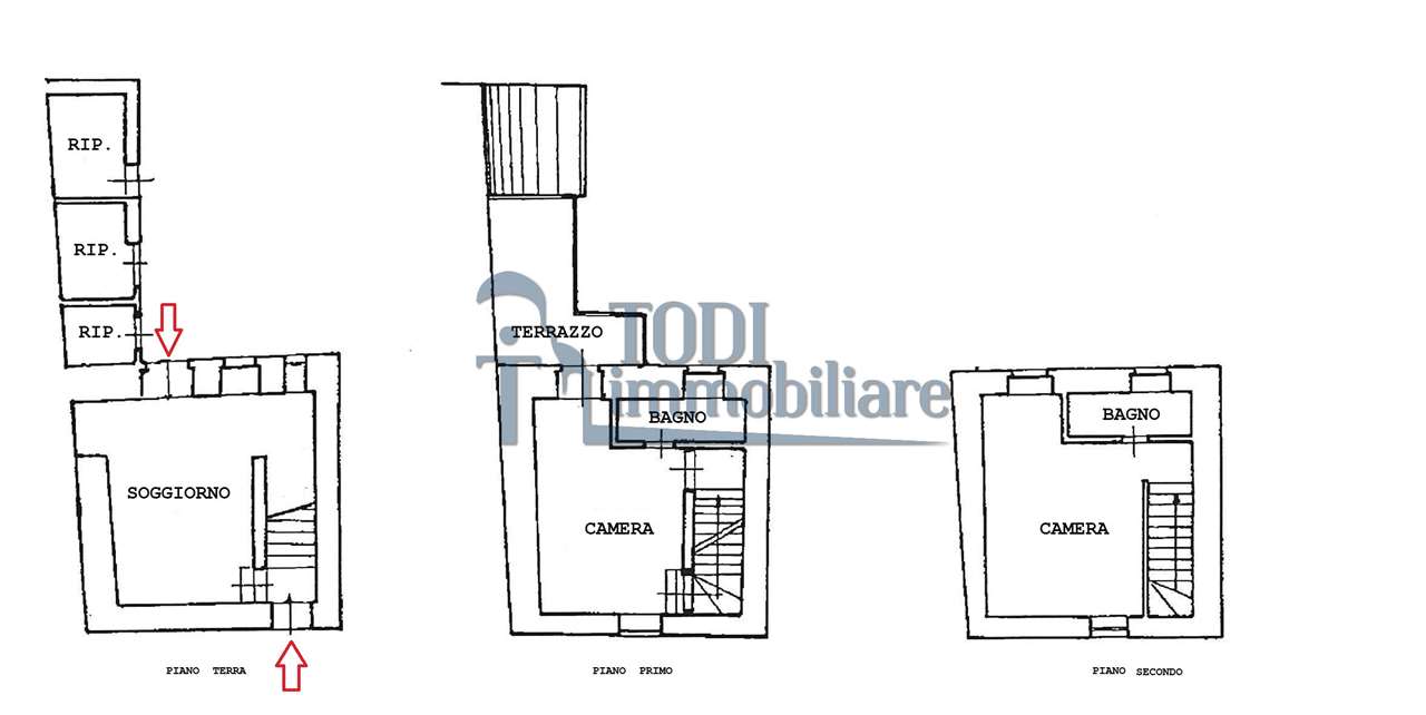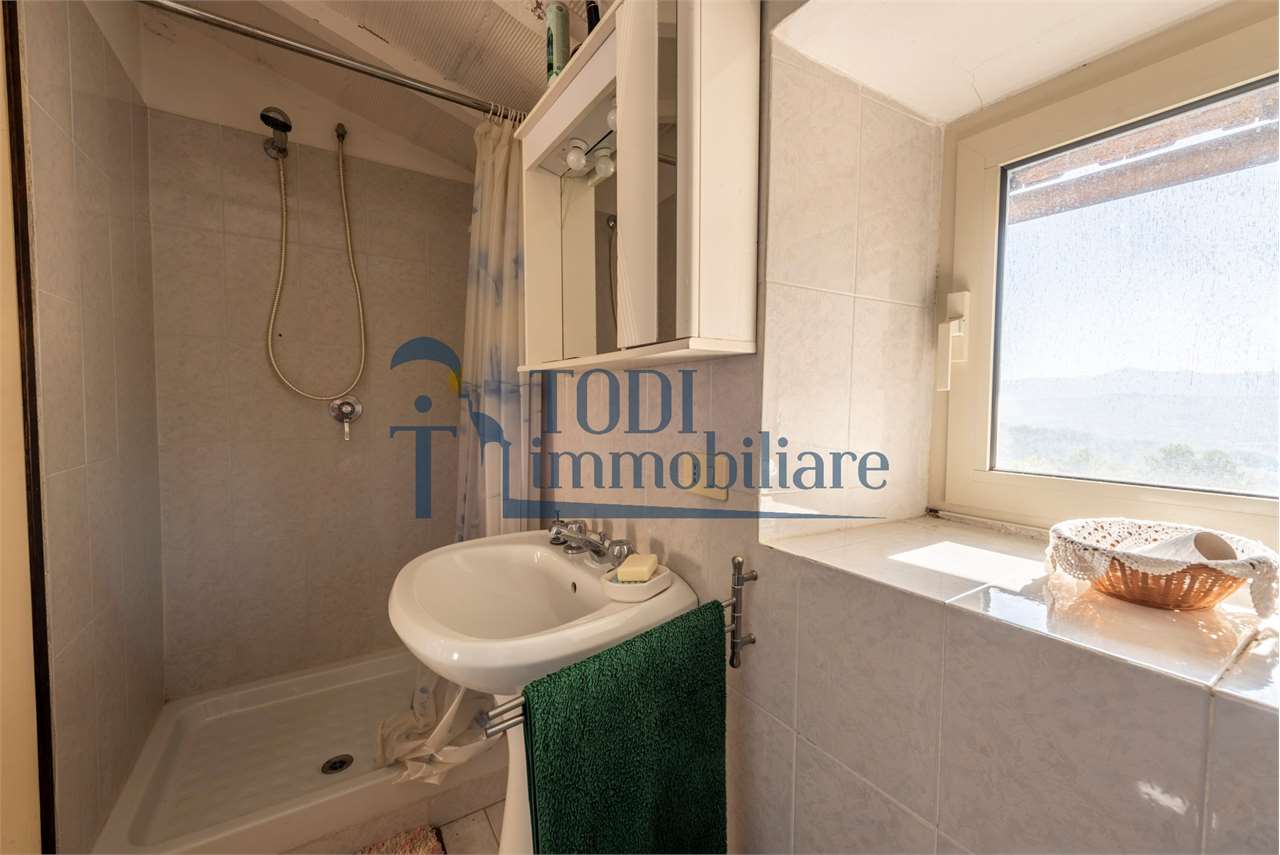 Todi - Rosceto, all\'interno di un caratteristico borgo medievale a soli 6 km da Todi, fortificato intorno al 1200 d.c., proponiamo in vendita un immobile Cielo-Terra con ingresso indipendente di circa 100 mq. disposto su tre livelli con terrazzo privato. La proprietà è in condizioni abitabili, al piano terra troviamo una cucina abitabile con camino, bagno e tre magazzini; al piano primo troviamo una camera, bagno e terrazza con vista; al piano secondo troviamo una camera matrimoniale con bagno.\nLa seguente proprietà può essere adibita tranquillamente sia come prima che seconda residenza.
