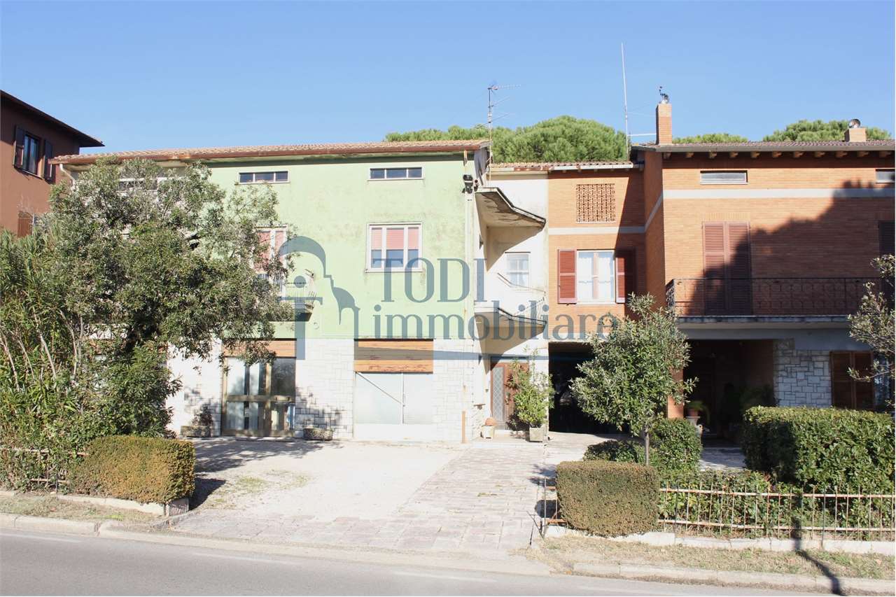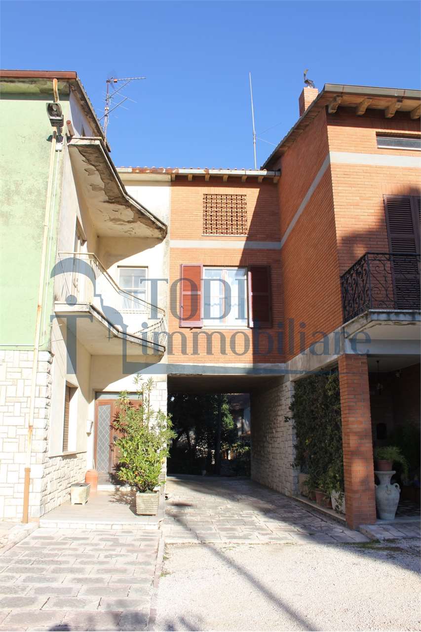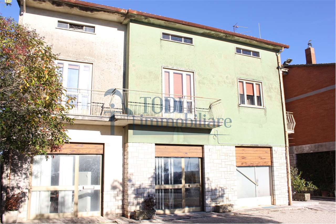 A due passi dalle affascinanti mura storiche di Todi, in un contesto unico dove ogni servizio è comodamente raggiungibile a piedi, proponiamo in vendita una splendida porzione di bifamiliare. \n\nLibera su tre lati, con ingresso indipendente e un’esclusiva corte esterna, questa proprietà rappresenta la soluzione ideale per chi desidera vivere il comfort quotidiano senza rinunciare al fascino di un centro storico tra i più suggestivi dell’Umbria. Perfetta come prima casa, offre un equilibrio impeccabile tra tranquillità, praticità e bellezza.\n\nLa proprietà si sviluppa su due livelli e dispone anche di una spaziosa soffitta, perfetta come area accessoria in cui riporre tutto ciò che non serve quotidianamente, mantenendo la casa sempre ordinata e funzionale.\n\nAl piano terra, oltre al vano cantina e al garage, troviamo due bagni e tre ampi locali originariamente destinati ad attività commerciali. Grazie agli spazi generosi e alla loro versatilità, è possibile trasformarli con una ristrutturazione mirata in una seconda unità abitativa completamente indipendente: una soluzione ideale per chi desidera creare un appartamento aggiuntivo per familiari, ospiti o per un eventuale investimento.\n\nIl piano primo, raggiungibile tramite una scala interna ad uso esclusivo, ospita l’abitazione principale. Qui l’ingresso introduce a un ambiente accogliente e funzionale, composto da cucina abitabile con camino, dispensa, luminosa sala con terrazzo, tre camere da letto – di cui due collegate da un ulteriore terrazzo – e un bagno. Gli spazi sono ampi e ariosi, valorizzati dall’ottima esposizione a sud che regala luce naturale per gran parte della giornata, oltre a una splendida vista panoramica sulle colline umbre.\n\nL’immobile necessita di una ristrutturazione completa, ma offre un potenziale straordinario per chi desidera dare vita a una casa personalizzata, moderna e perfettamente in linea con le proprie esigenze.\n\nAll’esterno, la corte privata che abbraccia i tre lati liberi della struttura offre un valore aggiunto raro: una parte può essere destinata a parcheggio, mentre la restante può trasformarsi in un piacevole giardino dove rilassarsi all’aria aperta.\n\nUna soluzione versatile, ricca di possibilità e immersa in un contesto comodo e suggestivo.