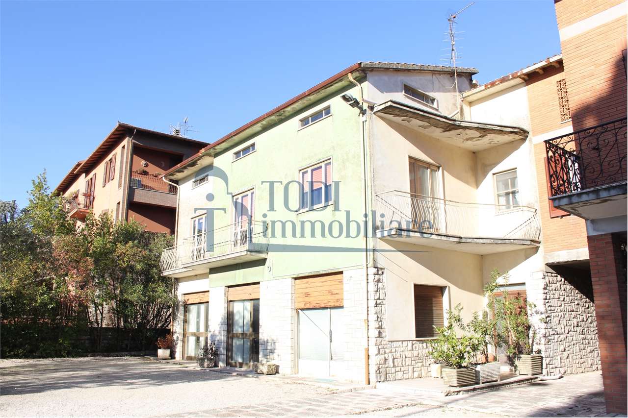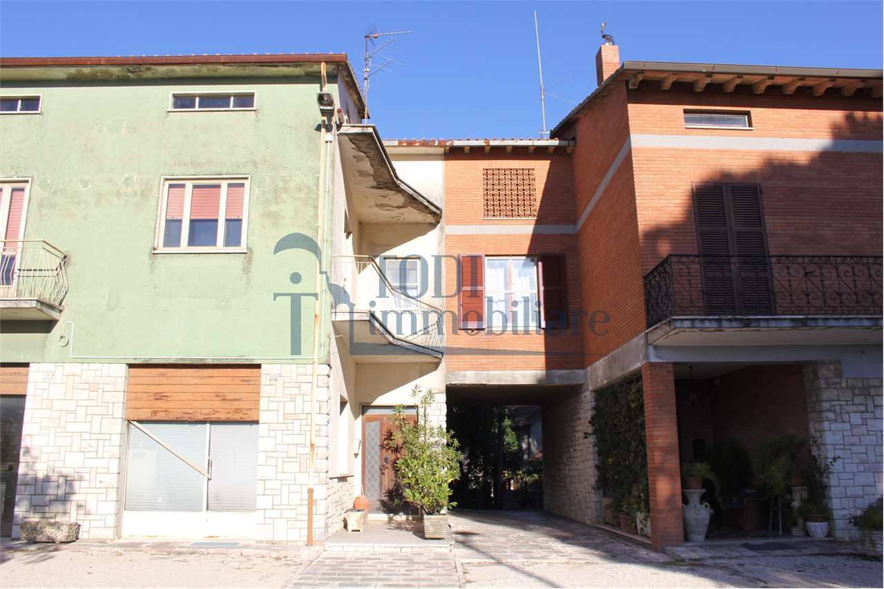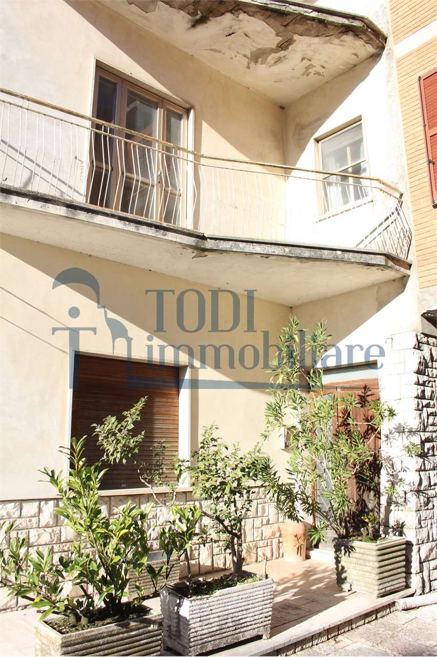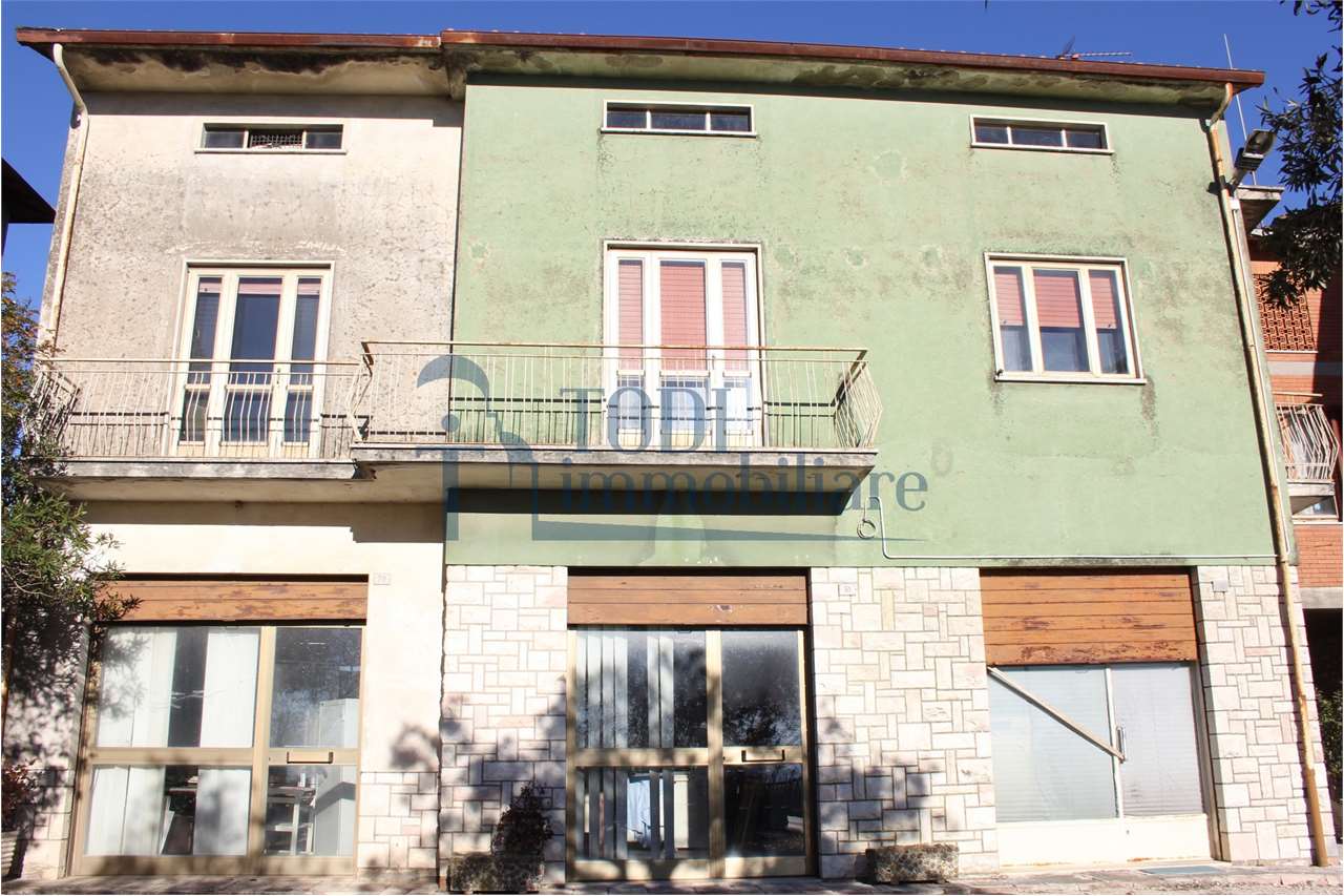 A due passi dalle affascinanti mura storiche di Todi, in un contesto unico dove ogni servizio è comodamente raggiungibile a piedi, proponiamo in vendita una splendida porzione di bifamiliare. \n\nLibera su tre lati, con ingresso indipendente e un’esclusiva corte esterna, questa proprietà rappresenta la soluzione ideale per chi desidera vivere il comfort quotidiano senza rinunciare al fascino di un centro storico tra i più suggestivi dell’Umbria. Perfetta come prima casa, offre un equilibrio impeccabile tra tranquillità, praticità e bellezza.\n\nLa proprietà si sviluppa su due livelli e dispone anche di una spaziosa soffitta, perfetta come area accessoria in cui riporre tutto ciò che non serve quotidianamente, mantenendo la casa sempre ordinata e funzionale.\n\nAl piano terra, oltre al vano cantina e al garage, troviamo due bagni e tre ampi locali originariamente destinati ad attività commerciali. Grazie agli spazi generosi e alla loro versatilità, è possibile trasformarli con una ristrutturazione mirata in una seconda unità abitativa completamente indipendente: una soluzione ideale per chi desidera creare un appartamento aggiuntivo per familiari, ospiti o per un eventuale investimento.\n\nIl piano primo, raggiungibile tramite una scala interna ad uso esclusivo, ospita l’abitazione principale. Qui l’ingresso introduce a un ambiente accogliente e funzionale, composto da cucina abitabile con camino, dispensa, luminosa sala con terrazzo, tre camere da letto – di cui due collegate da un ulteriore terrazzo – e un bagno. Gli spazi sono ampi e ariosi, valorizzati dall’ottima esposizione a sud che regala luce naturale per gran parte della giornata, oltre a una splendida vista panoramica sulle colline umbre.\n\nL’immobile necessita di una ristrutturazione completa, ma offre un potenziale straordinario per chi desidera dare vita a una casa personalizzata, moderna e perfettamente in linea con le proprie esigenze.\n\nAll’esterno, la corte privata che abbraccia i tre lati liberi della struttura offre un valore aggiunto raro: una parte può essere destinata a parcheggio, mentre la restante può trasformarsi in un piacevole giardino dove rilassarsi all’aria aperta.\n\nUna soluzione versatile, ricca di possibilità e immersa in un contesto comodo e suggestivo.