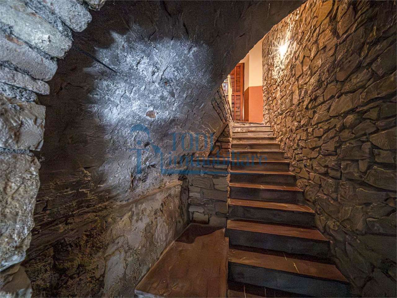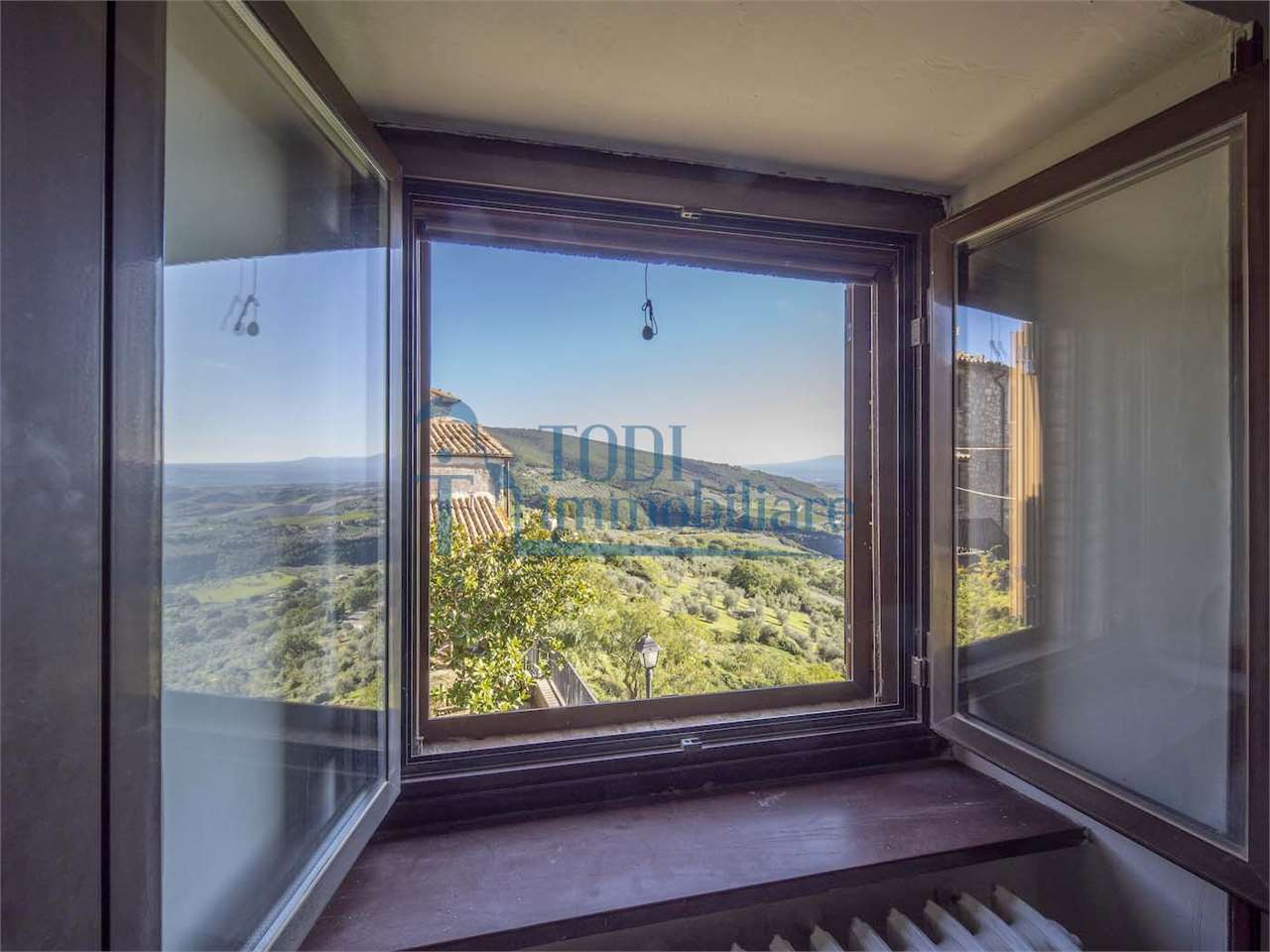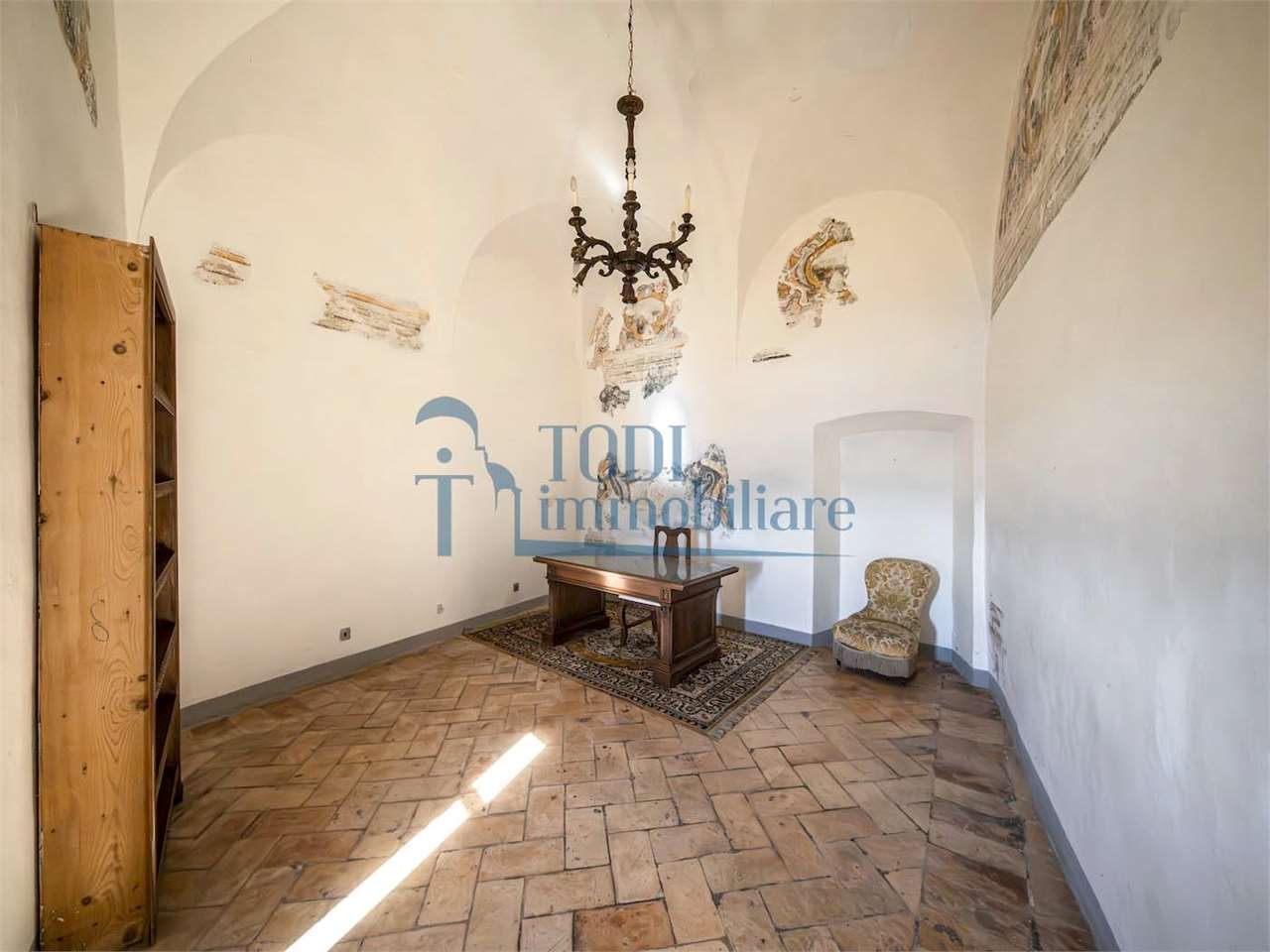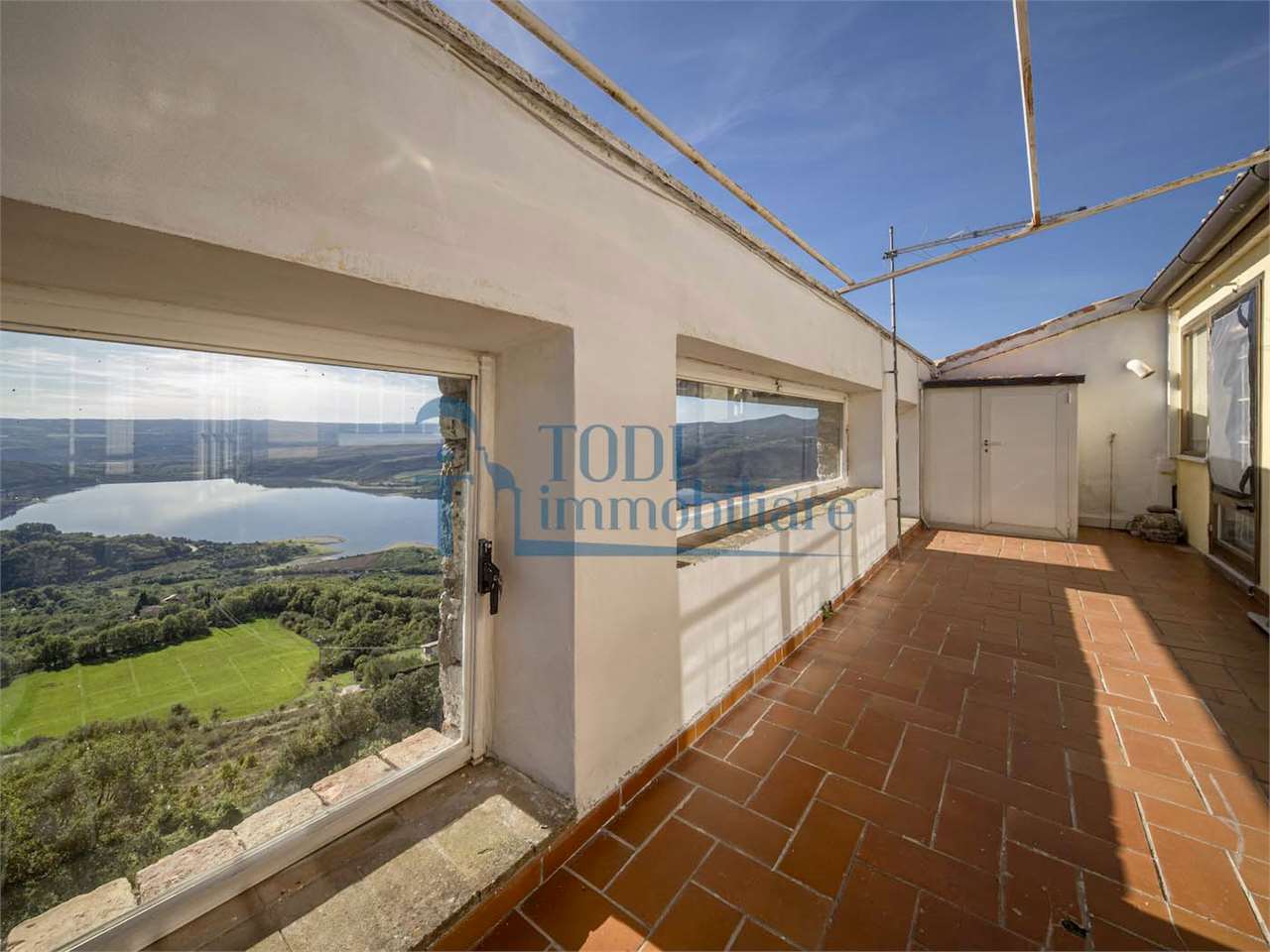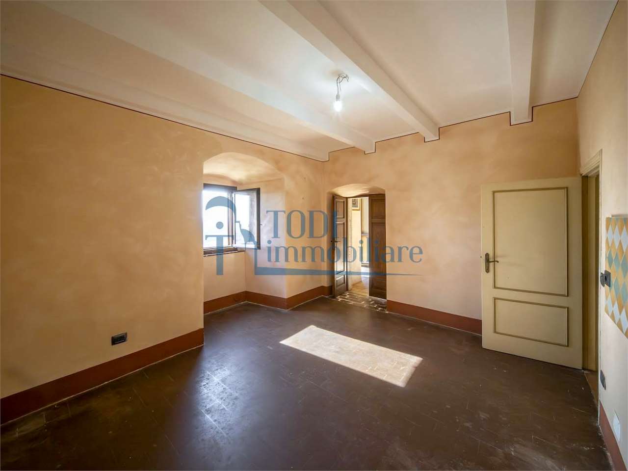 PRESTIGIOSA DIMORA STORICA CON TERRAZZA PANORAMICA SUL LAGO DI CORBARA\nCivitella del Lago – Umbria\n\nNel cuore dell’Umbria più autentica, tra Todi e Orvieto, all’interno dell’incantevole borgo medievale di Civitella del Lago, proponiamo in vendita una straordinaria residenza storica del XV secolo, rara opportunità immobiliare di assoluto pregio.\n\nImmersa in un contesto di quiete e bellezza senza tempo, la proprietà domina il paesaggio circostante offrendo panorami aperti e suggestivi sul Lago di Corbara e sulla Media Valle del Tevere, tra vigneti, oliveti e boschi secolari.\n\nLa dimora, appartenuta alla nobile famiglia tuderte degli Atti, si sviluppa su quattro livelli per una superficie complessiva di circa 550 mq, conservando intatti elementi architettonici originali di grande valore storico e artistico: facciate in pietra, inserti in marmo travertino, soffitti affrescati, camini monumentali, volte a vela e ambienti di rara eleganza.\n\nIl collegamento tra i piani avviene tramite una raffinata scala interna in marmo Rosso di Prodo, elemento distintivo che accompagna il percorso attraverso spazi ampi, luminosi e scenografici.\n\nDistribuzione degli ambienti:\n\nPiano Terra\nImportante ingresso di rappresentanza con doppio accesso, cucina abitabile, studio con soffitti affrescati, bagno e un maestoso salone panoramico con camino ottocentesco in marmo travertino, soffitti con volte a vela e grandi finestre che incorniciano il paesaggio umbro.\n\nPiano Primo\nZona notte con due camere matrimoniali e due bagni, ideale come piano padronale o area ospiti.\n\nPiano Secondo\nAmpia zona living con cucina abitabile, grande salone con camino e accesso diretto al terrazzo panoramico a pozzo, autentico gioiello della proprietà. Il piano ospita inoltre quattro camere matrimoniali e due bagni, rendendolo perfetto per accogliere famiglia e ospiti in totale comfort.\n\nPiano Seminterrato\nAffascinante salone in pietra con volta a botte in mattoncini, affacci panoramici sorprendenti, cantina e accesso diretto alla corte esterna esclusiva, ideale per momenti conviviali o degustazioni private.\n\nValore storico e unicità\n\nLa dimora è situata all’interno del prestigioso Cortile degli Atti, nel cuore del centro storico, con accesso dall’iconico Arco di Diomede, edificato da Diomede degli Atti, nobile tuderte e rettore della Chiesa di Santa Maria. Un contesto di assoluta riservatezza e fascino, riservato a poche proprietà di grande valore storico.\n\nCompleta la proprietà un terreno privato di circa 1.300 mq, con accesso diretto dalla residenza, elemento raro per un immobile all’interno di un borgo medievale.\n\nUna residenza esclusiva\n\nQuesta dimora rappresenta la soluzione ideale come:\n\nresidenza privata di prestigio\n\ndimora di rappresentanza\n\nresidenza per ospitalità di alto livello\n\ninvestimento immobiliare di valore storico e patrimoniale\n\nUn’opportunità unica per chi desidera vivere o investire in una residenza senza tempo, dove storia, panorama e lusso discreto si fondono in un’esperienza abitativa irripetibile.