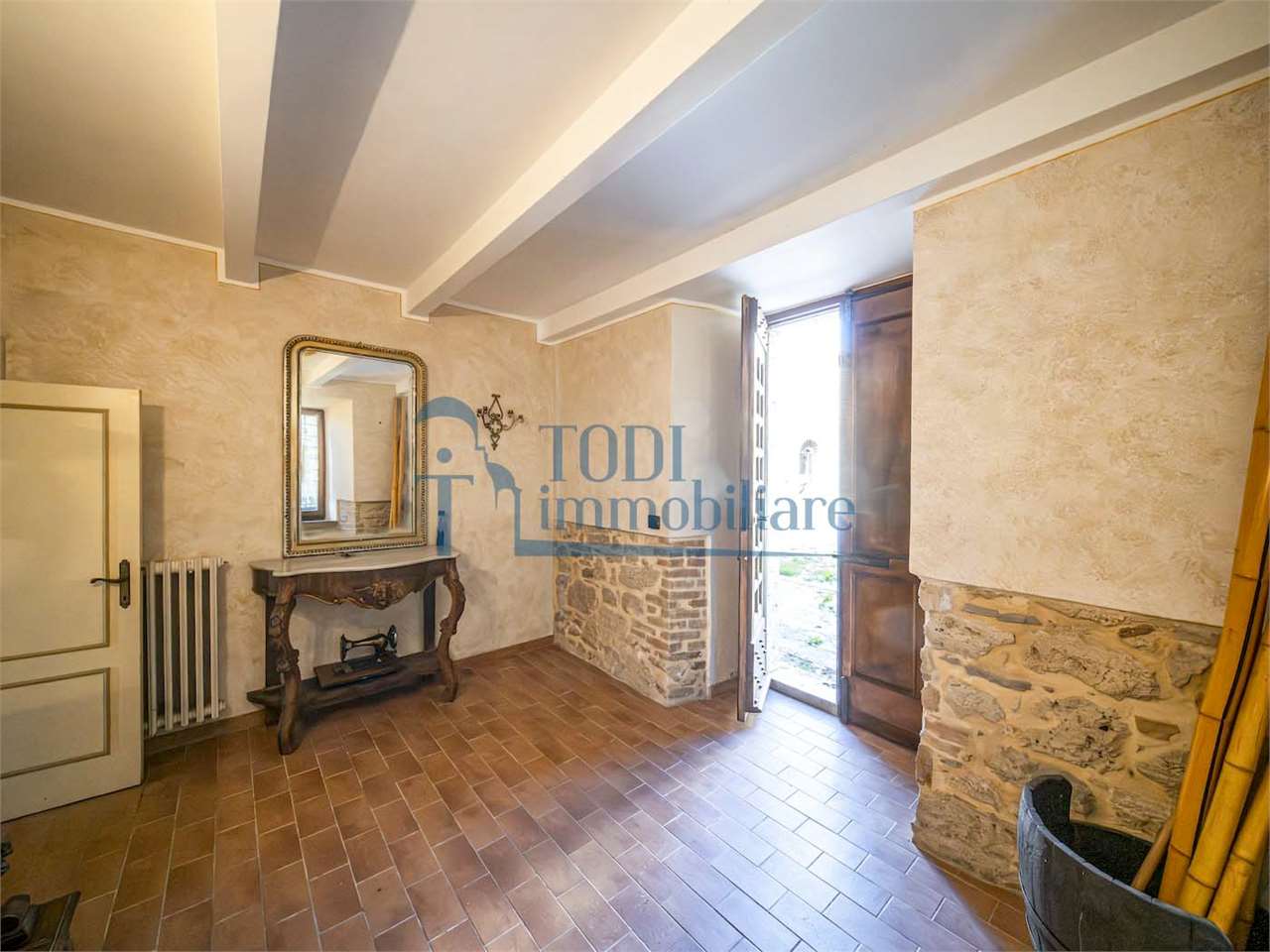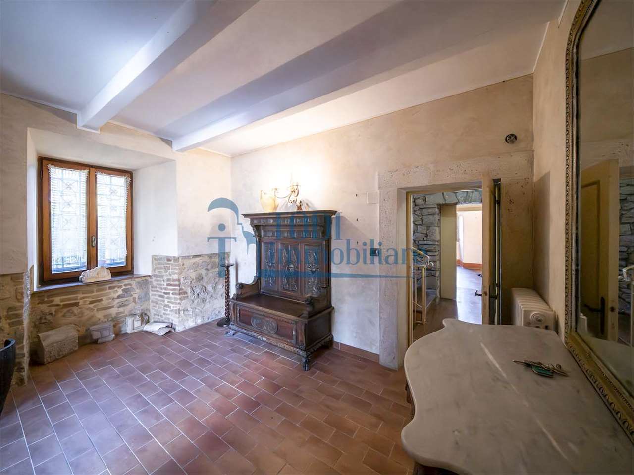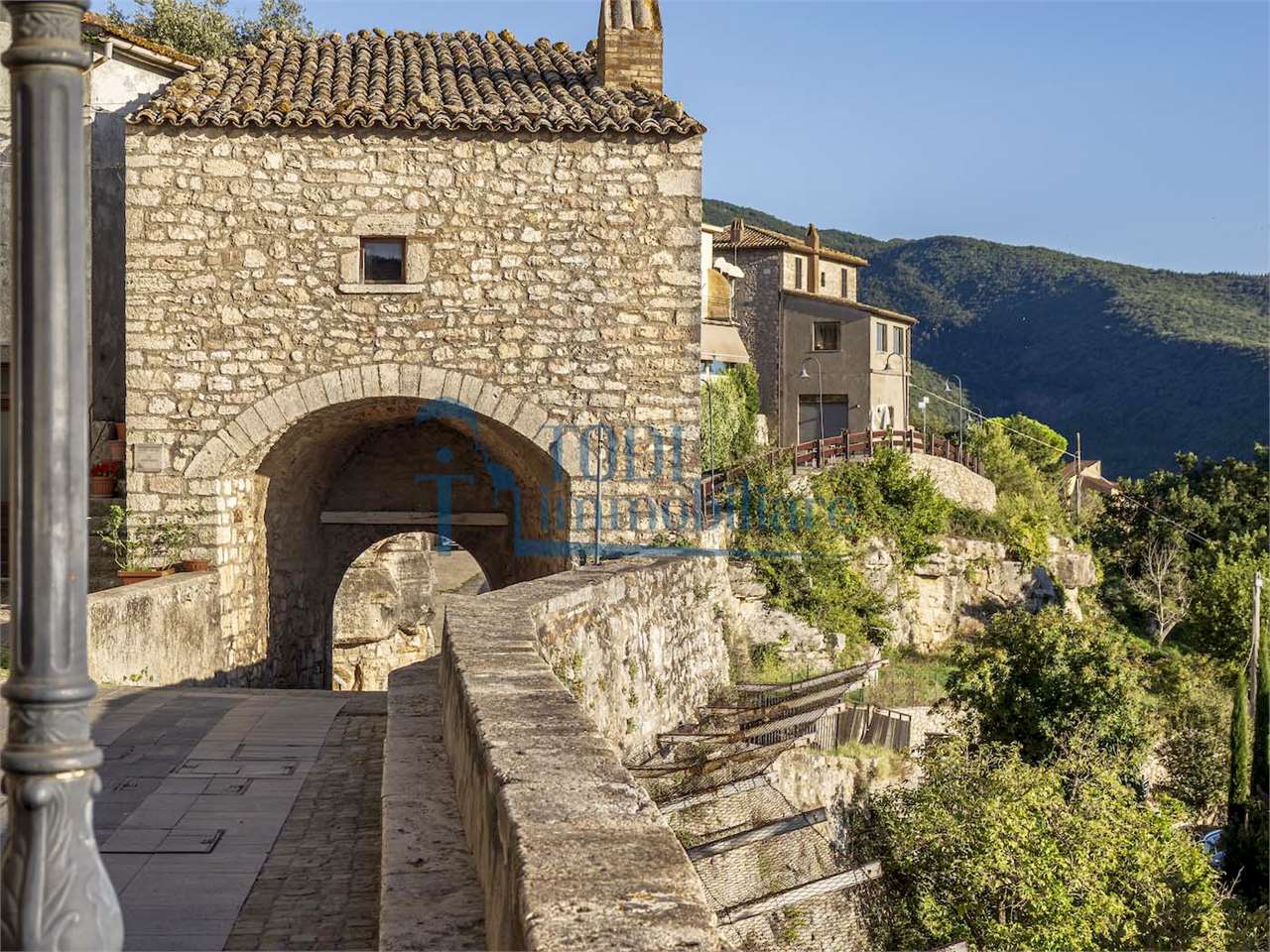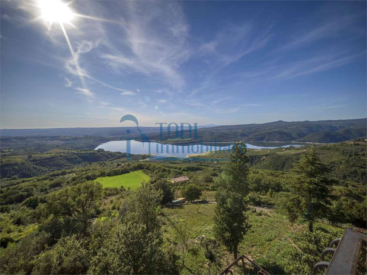 PRESTIGIOSA DIMORA STORICA CON TERRAZZA PANORAMICA SUL LAGO DI CORBARA\nCivitella del Lago – Umbria\n\nNel cuore dell’Umbria più autentica, tra Todi e Orvieto, all’interno dell’incantevole borgo medievale di Civitella del Lago, proponiamo in vendita una straordinaria residenza storica del XV secolo, rara opportunità immobiliare di assoluto pregio.\n\nImmersa in un contesto di quiete e bellezza senza tempo, la proprietà domina il paesaggio circostante offrendo panorami aperti e suggestivi sul Lago di Corbara e sulla Media Valle del Tevere, tra vigneti, oliveti e boschi secolari.\n\nLa dimora, appartenuta alla nobile famiglia tuderte degli Atti, si sviluppa su quattro livelli per una superficie complessiva di circa 550 mq, conservando intatti elementi architettonici originali di grande valore storico e artistico: facciate in pietra, inserti in marmo travertino, soffitti affrescati, camini monumentali, volte a vela e ambienti di rara eleganza.\n\nIl collegamento tra i piani avviene tramite una raffinata scala interna in marmo Rosso di Prodo, elemento distintivo che accompagna il percorso attraverso spazi ampi, luminosi e scenografici.\n\nDistribuzione degli ambienti:\n\nPiano Terra\nImportante ingresso di rappresentanza con doppio accesso, cucina abitabile, studio con soffitti affrescati, bagno e un maestoso salone panoramico con camino ottocentesco in marmo travertino, soffitti con volte a vela e grandi finestre che incorniciano il paesaggio umbro.\n\nPiano Primo\nZona notte con due camere matrimoniali e due bagni, ideale come piano padronale o area ospiti.\n\nPiano Secondo\nAmpia zona living con cucina abitabile, grande salone con camino e accesso diretto al terrazzo panoramico a pozzo, autentico gioiello della proprietà. Il piano ospita inoltre quattro camere matrimoniali e due bagni, rendendolo perfetto per accogliere famiglia e ospiti in totale comfort.\n\nPiano Seminterrato\nAffascinante salone in pietra con volta a botte in mattoncini, affacci panoramici sorprendenti, cantina e accesso diretto alla corte esterna esclusiva, ideale per momenti conviviali o degustazioni private.\n\nValore storico e unicità\n\nLa dimora è situata all’interno del prestigioso Cortile degli Atti, nel cuore del centro storico, con accesso dall’iconico Arco di Diomede, edificato da Diomede degli Atti, nobile tuderte e rettore della Chiesa di Santa Maria. Un contesto di assoluta riservatezza e fascino, riservato a poche proprietà di grande valore storico.\n\nCompleta la proprietà un terreno privato di circa 1.300 mq, con accesso diretto dalla residenza, elemento raro per un immobile all’interno di un borgo medievale.\n\nUna residenza esclusiva\n\nQuesta dimora rappresenta la soluzione ideale come:\n\nresidenza privata di prestigio\n\ndimora di rappresentanza\n\nresidenza per ospitalità di alto livello\n\ninvestimento immobiliare di valore storico e patrimoniale\n\nUn’opportunità unica per chi desidera vivere o investire in una residenza senza tempo, dove storia, panorama e lusso discreto si fondono in un’esperienza abitativa irripetibile.