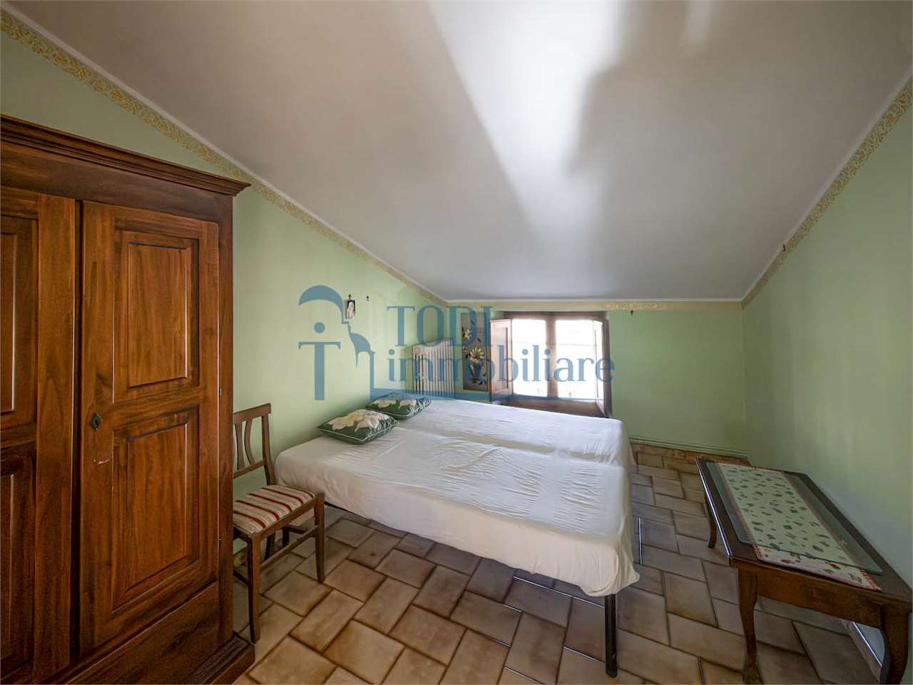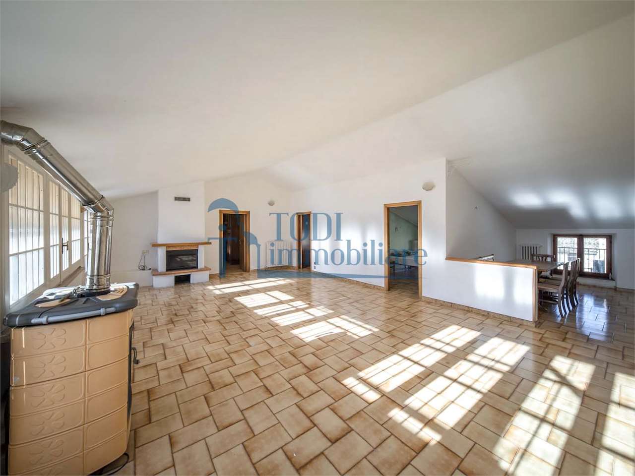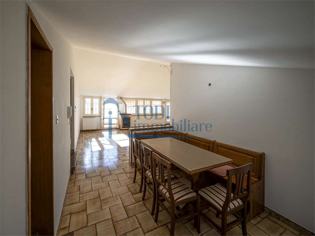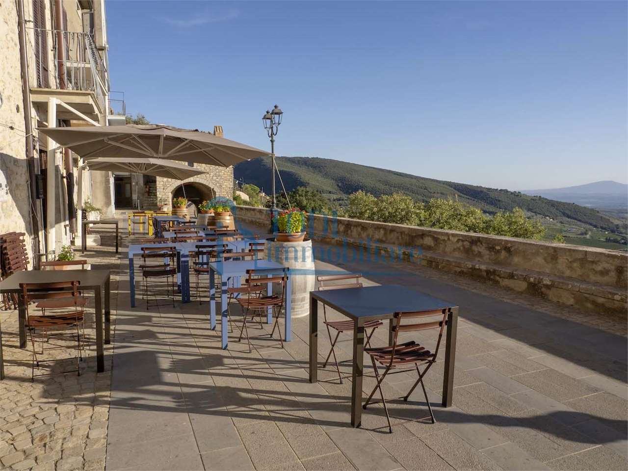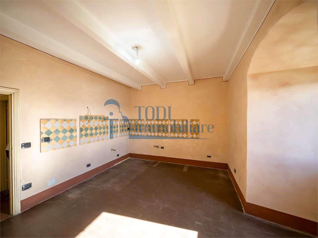 PRESTIGIOSA DIMORA STORICA CON TERRAZZA PANORAMICA SUL LAGO DI CORBARA\nCivitella del Lago – Umbria\n\nNel cuore dell’Umbria più autentica, tra Todi e Orvieto, all’interno dell’incantevole borgo medievale di Civitella del Lago, proponiamo in vendita una straordinaria residenza storica del XV secolo, rara opportunità immobiliare di assoluto pregio.\n\nImmersa in un contesto di quiete e bellezza senza tempo, la proprietà domina il paesaggio circostante offrendo panorami aperti e suggestivi sul Lago di Corbara e sulla Media Valle del Tevere, tra vigneti, oliveti e boschi secolari.\n\nLa dimora, appartenuta alla nobile famiglia tuderte degli Atti, si sviluppa su quattro livelli per una superficie complessiva di circa 550 mq, conservando intatti elementi architettonici originali di grande valore storico e artistico: facciate in pietra, inserti in marmo travertino, soffitti affrescati, camini monumentali, volte a vela e ambienti di rara eleganza.\n\nIl collegamento tra i piani avviene tramite una raffinata scala interna in marmo Rosso di Prodo, elemento distintivo che accompagna il percorso attraverso spazi ampi, luminosi e scenografici.\n\nDistribuzione degli ambienti:\n\nPiano Terra\nImportante ingresso di rappresentanza con doppio accesso, cucina abitabile, studio con soffitti affrescati, bagno e un maestoso salone panoramico con camino ottocentesco in marmo travertino, soffitti con volte a vela e grandi finestre che incorniciano il paesaggio umbro.\n\nPiano Primo\nZona notte con due camere matrimoniali e due bagni, ideale come piano padronale o area ospiti.\n\nPiano Secondo\nAmpia zona living con cucina abitabile, grande salone con camino e accesso diretto al terrazzo panoramico a pozzo, autentico gioiello della proprietà. Il piano ospita inoltre quattro camere matrimoniali e due bagni, rendendolo perfetto per accogliere famiglia e ospiti in totale comfort.\n\nPiano Seminterrato\nAffascinante salone in pietra con volta a botte in mattoncini, affacci panoramici sorprendenti, cantina e accesso diretto alla corte esterna esclusiva, ideale per momenti conviviali o degustazioni private.\n\nValore storico e unicità\n\nLa dimora è situata all’interno del prestigioso Cortile degli Atti, nel cuore del centro storico, con accesso dall’iconico Arco di Diomede, edificato da Diomede degli Atti, nobile tuderte e rettore della Chiesa di Santa Maria. Un contesto di assoluta riservatezza e fascino, riservato a poche proprietà di grande valore storico.\n\nCompleta la proprietà un terreno privato di circa 1.300 mq, con accesso diretto dalla residenza, elemento raro per un immobile all’interno di un borgo medievale.\n\nUna residenza esclusiva\n\nQuesta dimora rappresenta la soluzione ideale come:\n\nresidenza privata di prestigio\n\ndimora di rappresentanza\n\nresidenza per ospitalità di alto livello\n\ninvestimento immobiliare di valore storico e patrimoniale\n\nUn’opportunità unica per chi desidera vivere o investire in una residenza senza tempo, dove storia, panorama e lusso discreto si fondono in un’esperienza abitativa irripetibile.