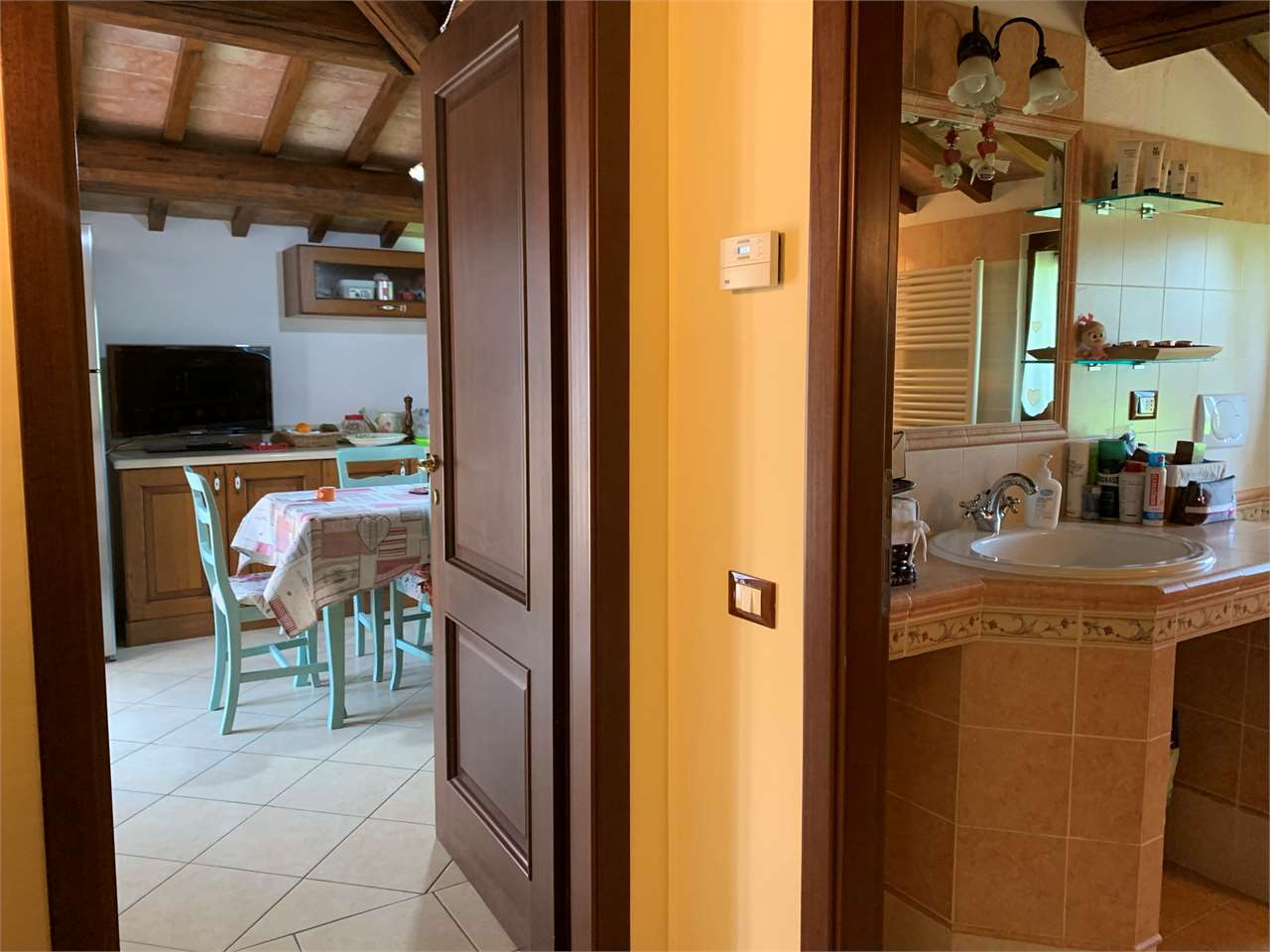 Torgiano in ottima posizione proponiamo in vendita porzione di casolare immerso nella campagna umbra ma vicino ai servizi, già suddiviso in due unità immobiliari indipendenti, la prima porzione posta al piano primo si suddivide in un soggiorno doppio, cucina abitabile, due camere matrimoniali, lavanderia, due bagni, ampio terrazzo abitabile e panoramico. La seconda unità si trova al piano terra ed essendo ancora al grezzo e da suddividere, da la possibilità di essere fortemente personalizzata. Completa la proprietà un ampio giardino totalmente pianura, circondato dalla bellissima campagna circostante.\nPer info e appuntamenti, contattare Roberto Settonce 3289519484