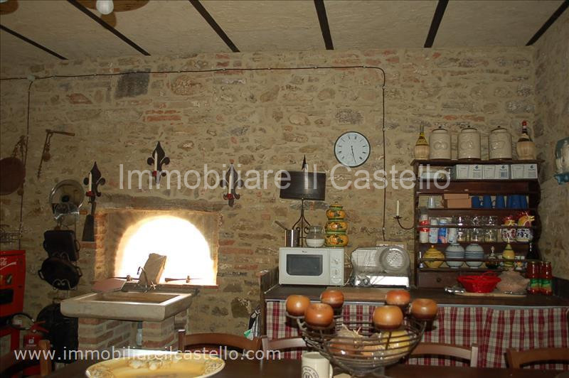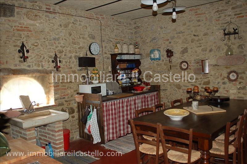 DESCRIZIONE: casolare in pietra, tipico della tradizione edilizia umbro-toscana, recentemente ristrutturato. Il casale, di circa 300 mq, si sviluppa su due piani: al piano terra troviamo un ampio salone, cucina abitabile, un altro locale e due bagni. Il primo piano, che ha un accesso indipendente attraverso la scala esterna con loggia, è composto da salone con camino, cucina abitabile, due camere, bagno-lavanderia, un altro ampio bagno e la camera padronale con bagno privato. All'esterno troviamo un grande giardino di circa 5000 mq con alcuni alberi da frutta e 35 olivi su cui affaccia un porticato semi-aperto (limonaia), perfetto per godersi i pasti all'aperto. La proprietà, inoltre, comprende una cantina, un fondo, e un forno a legna esterno. L'immobile è stato recentemente ristrutturato, tenendo fede alle caratteristiche originali del casolare: pavimenti e pianelle in cotto, travi in legno a vista al primo piano. Attualmente non è presente l'impianto di riscaldamento, ma è stato predisposto. Il tetto è da rifare