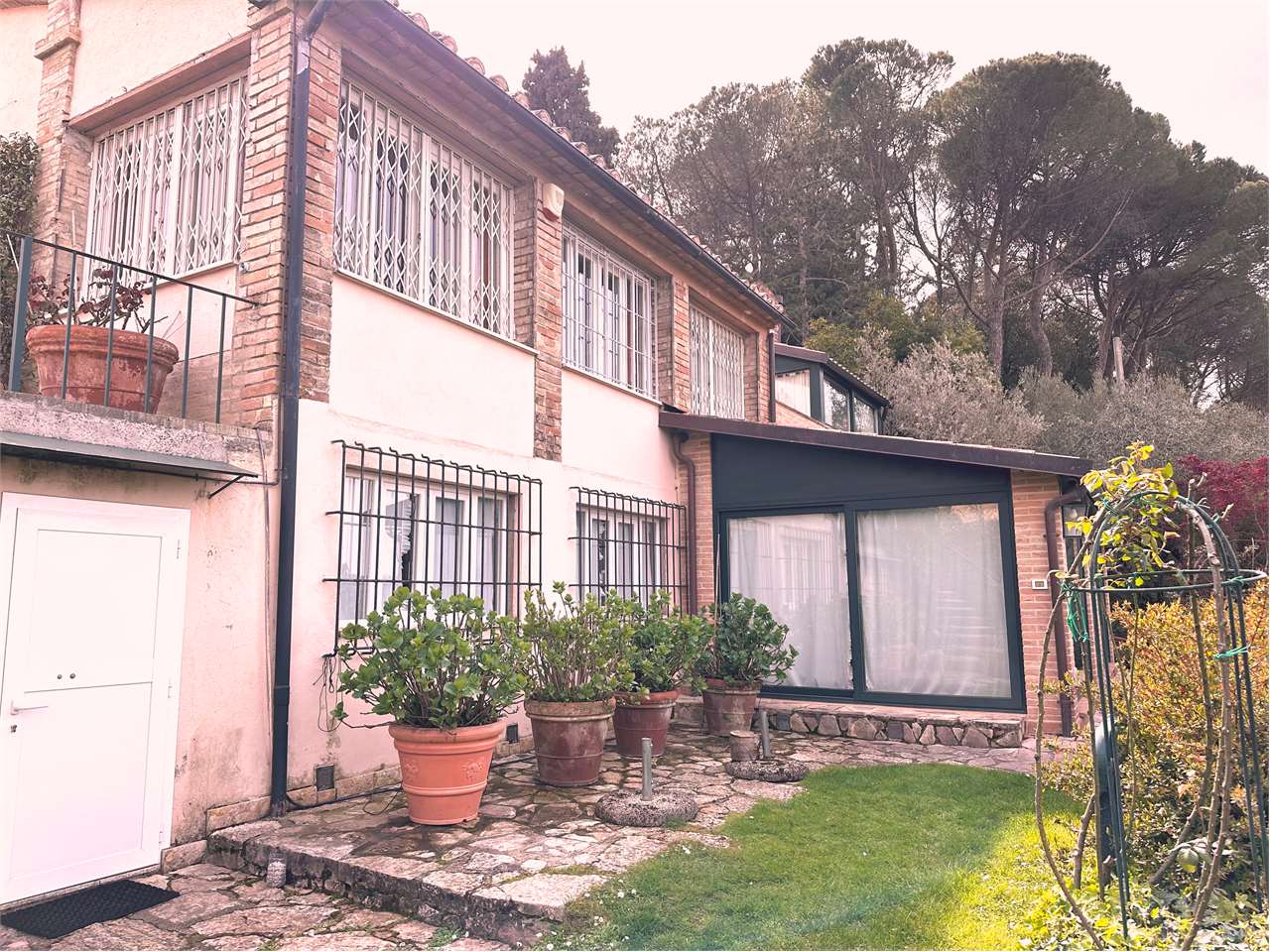 VENDESI RUSTICO A PERUGIA: Vendesi panoramico e luminoso rustico su due livelli. Piano seminterrato composto da un ampio soggiorno e cucina con ampia dispensa, veranda completamente vetrata di mq 28, centrale termica. Al piano terra troviamo ampio salone, due camere matrimoniali con i rispettivi bagni, una con terrazzo l\'altra con veranda chiusa, una camera-studio con terrazzo e un bagno. La proprietà ha un giardino ben curato di quasi 1000 mq in leggero e graduale declivio.\nL\'immobile verrà venduto locato.\nOttimo anche come investimento.\nCodice annuncio V/556\nRichiesta 425.000,00 euro
