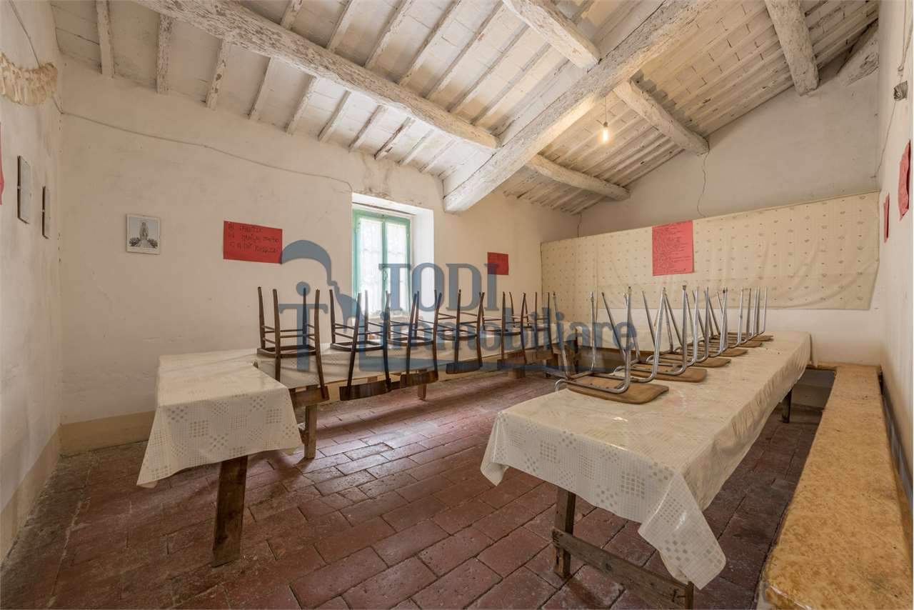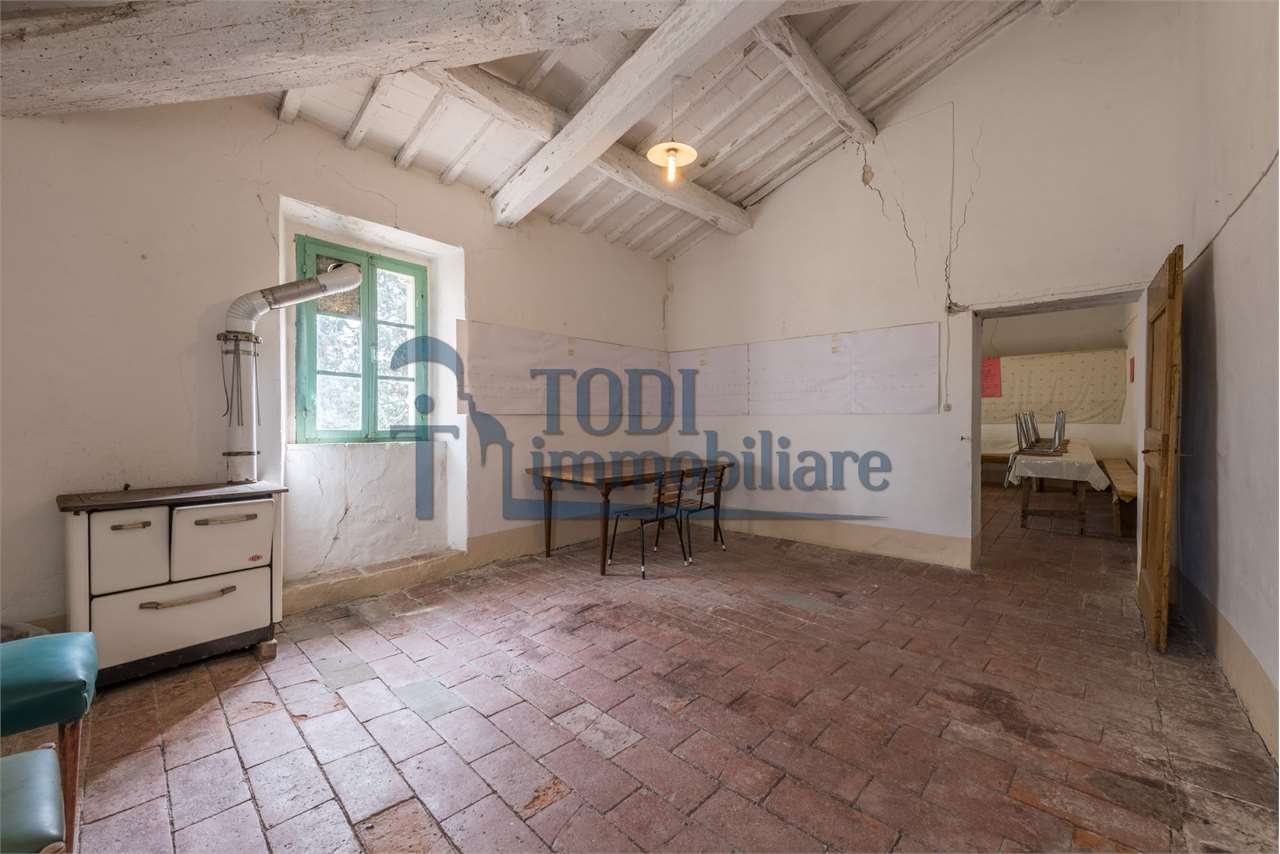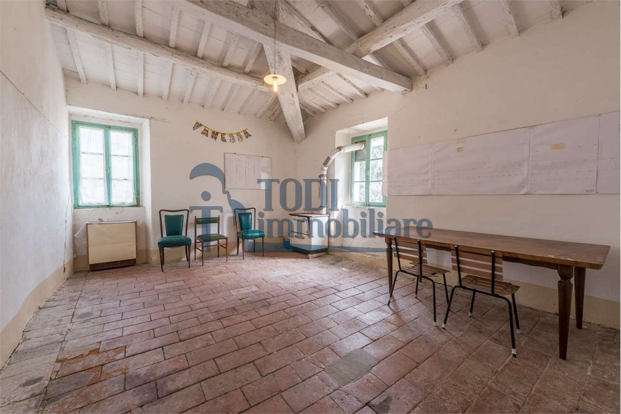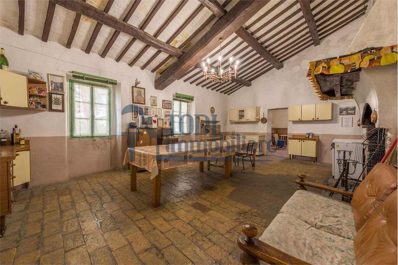 San Venanzo, le cui origini risalgono all\'epoca bizantina, intorno all\'VIII secolo, collocato tra Orvieto, Perugia e Todi, è una cittadina molto tranquilla lungo i torrenti Calvana e Fersinone ove proponiamo in vendita una bellissima proprietà, composta da un vecchio casale indipendente in pietra con annesso agricolo e terreno esclusivo di 4000 mq. \n\nLa sua posizione risulta essere molto comoda e non isolata, permette un\'ottima vivibilità quotidiana ove i servizi primari possono essere raggiunti semplicemente a piedi.\n\nIl casale, di circa 400 mq. lordi, si sviluppa su due livelli ed in particolare al piano terra troviamo tutti gli ambienti accessori come magazzini, cantine, forno e portico; mentre al piano primo abbiamo la parte dedicata all\'abitazione composta da vani molto ampi e luminosi. Il tutto è da ristrutturare, con possibilità di recuperare il materiale presente ed originale, come travature in legno, cotto, caratteristiche nicchie, pietra, ecc. Possibilità di ampliamento di ulteriori 100 mq.\n\nL\'annesso agricolo, posizionato nelle vicinanze e realizzato sempre in pietra con copertura a coppi, raggiunge una superfice di circa 60 mq. ed è disposto su unico livello. Interessante la possibilità di recuperare tale fabbricato anche ai fini abitativi. Da ristrutturare.\n\nConclude la proprietà il terreno pertinenziale ed esclusivo di circa 4000 mq. completamente pianeggianti e pertanto utili all\'utilizzo al servizio dei fabbricati: parte è piantumata con alberi ornamentali di alto fusto, una parte con olivi, una parte con viti, una parte è adibito ad orto. Inoltre da considerare anche che una parte è edificabile in base la Piano regolatore del Comune di San Venanzo.\n\nSan Venanzo si può raggiungere sia da Marsciano, da Todi che da Orvieto. La ricchezza del borgo è data anche dal suo ambiente naturale incontaminato, tra i più suggestivi della regione. Di grande interesse naturalistico il Parco dei Sette Frati, situato in prossimità della cima del monte Peglia: l\'area verde ospita una riserva faunistica protetta dove emozioni ed esperienze risultano amplificate dal silenzio. Essere accompagnati dal canto di un uccello in volo, da due caprioli sulla radura, da una orchidea selvatica in fiore sono momenti che tutti possono vivere e apprezzare.