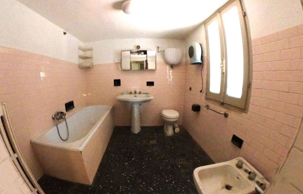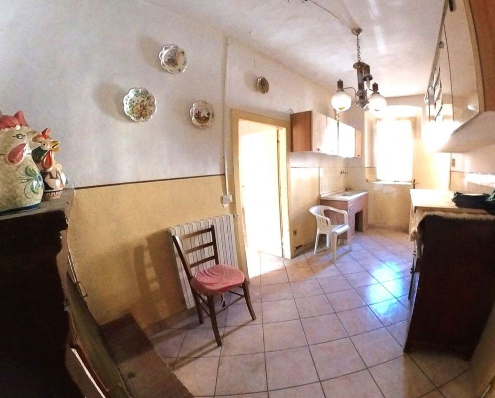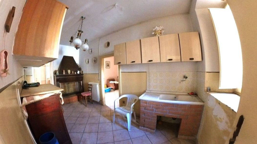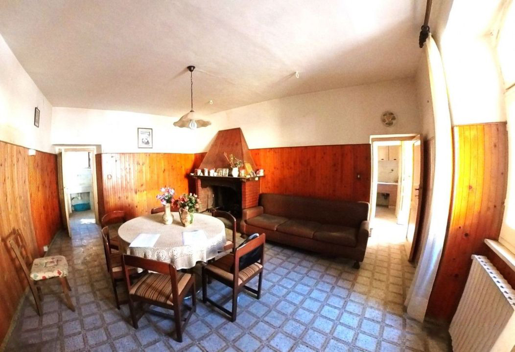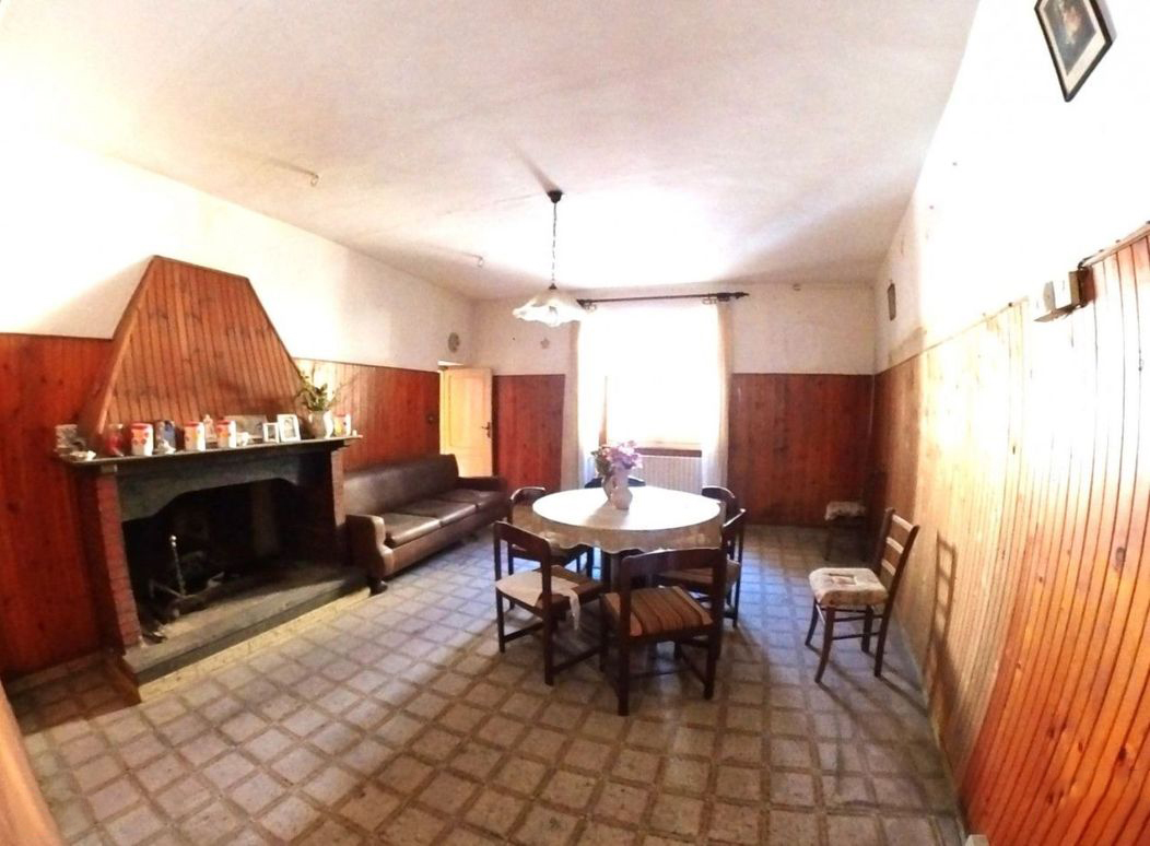 Ingresso autonomo al piano terra: cucina con tinello e camino, salone, bagno e sottoscala.