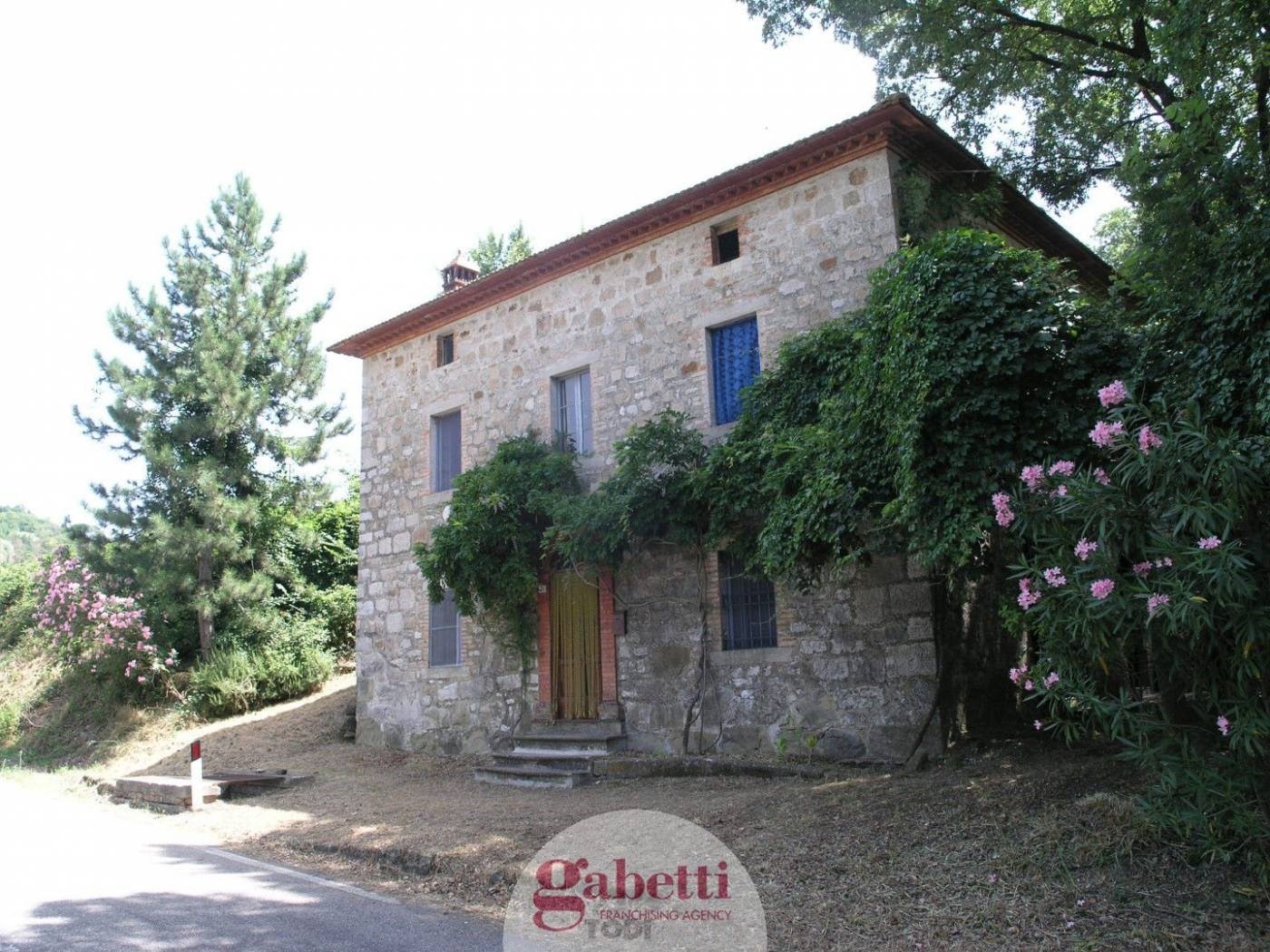 SCOPRILO SUBITOA pochi chilometri da Todi, nella zona ricercata di Canonica, si trova questa bella casa colonica in pietra situato lungo la strada "vecchia Orvietana", circondato da maestose querce secolari su un terreno di ca. 7000 mq.