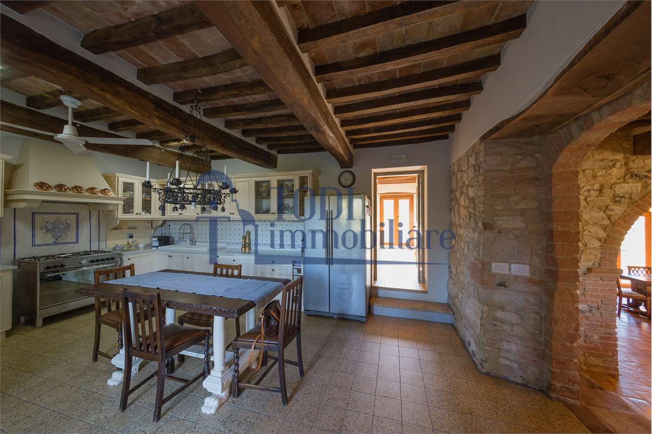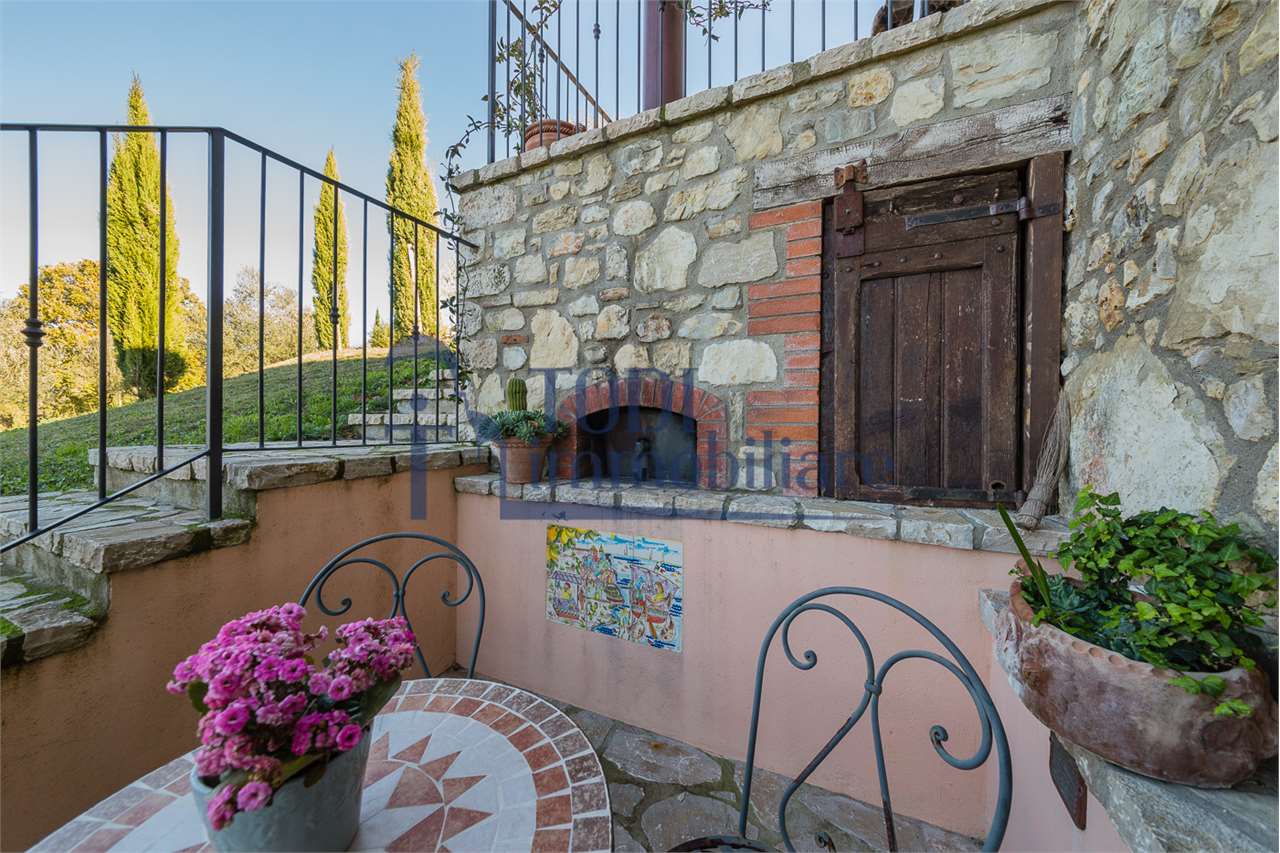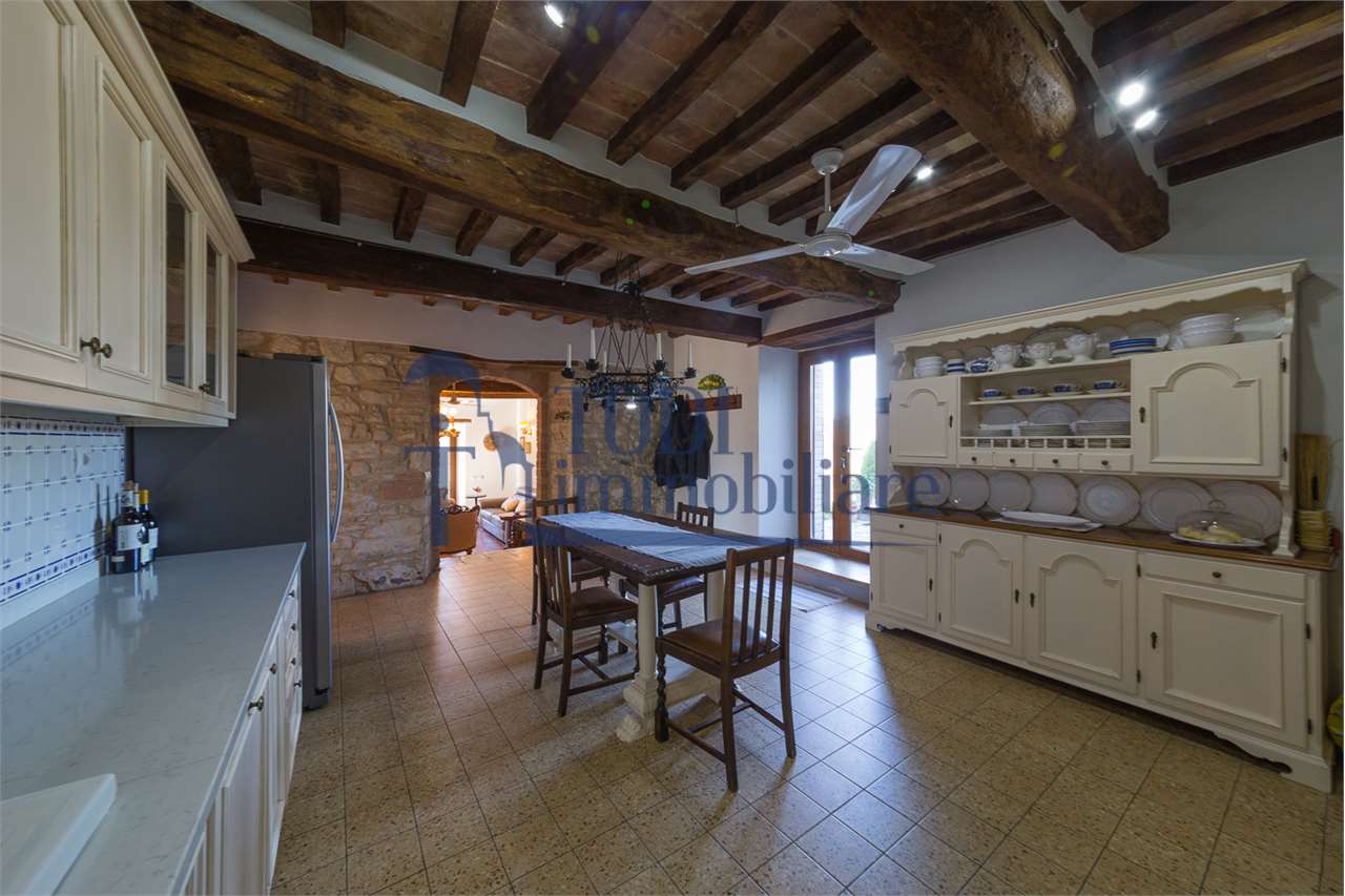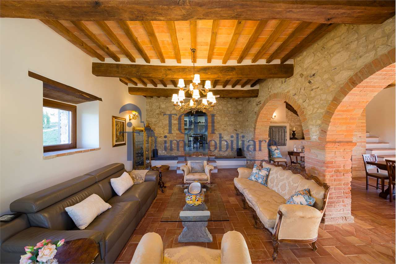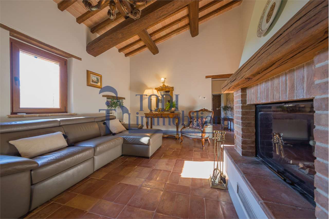 Meravigliosa residenza di campagna situata nel comune di Todi. La proprietà é completamente ristrutturata ed é subito abitabile. \nLa parte abitativa é costituita da un caratteristico e bellissimo casale del 1800 disposto su due piani. \nAl piano terra abbiamo una grande cucina abitabile, un doppio salone con i caratteristici archi delle vecchie stalle, lavanderia, bagno di servizio e locale tecnico.\nAl piano primo abbiamo un disimpegno, un soggiorno-studio con camino, 2 bagni e 4 camere matrimoniali.\nE\' presente un annesso adibito a garage e laboratorio attrezzi con ingresso carrabile e pedonale.\nInoltre é anche presente ulteriore piccolo annesso da recuperare e ristrutturare.\nConclude la proprietà il terreno esclusivo di 14.000 Mq adibito in parte a giardino, in parte ad orto, in parte con possibilità di essere coltivato e con circa 50 piante di olivo.\nL\'ampio spazio esterno permette la costruzione di una piscina con solarium e tutte le relative pertinenze.\nChiamaci per un appuntamento e ulteriori informazioni.