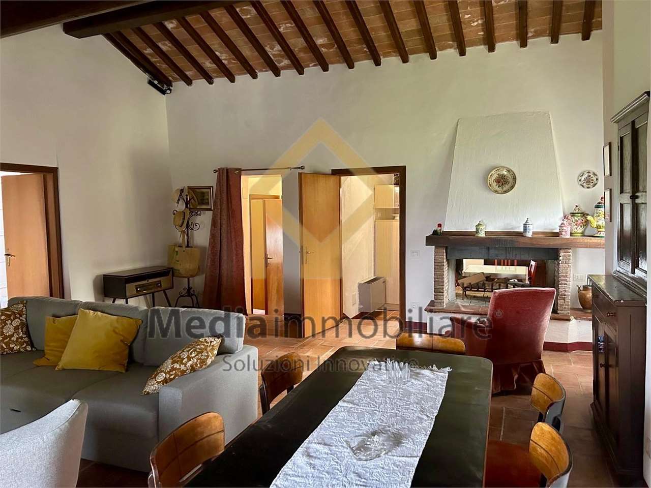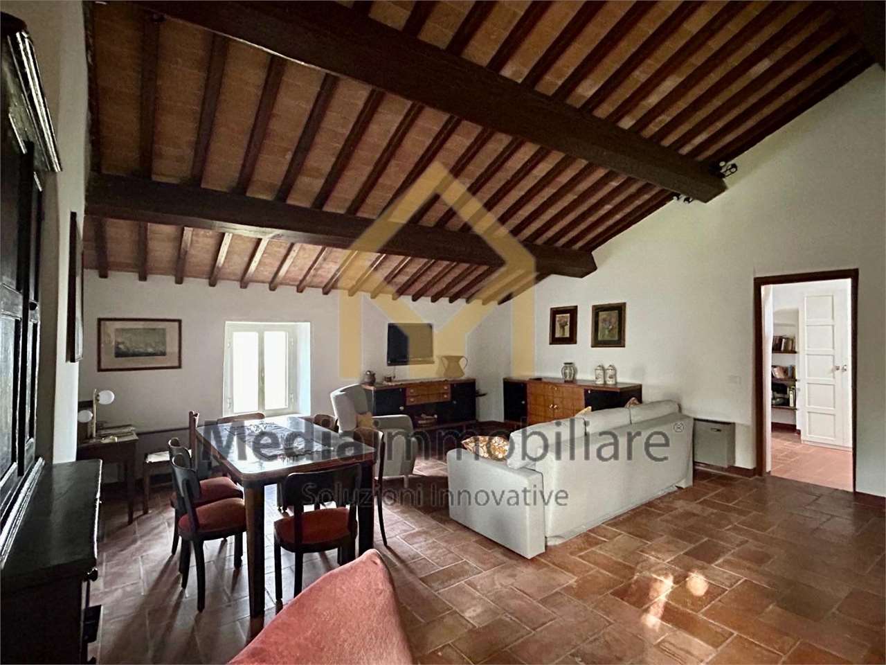 Immersa nella splendida ed incontaminata campagna tuderte, a soli 8 km dal centro di Todi vendiamo caratteristica porzione di casale recentemente ristrutturato con ingresso indipendente ed ampio giardino di 900 mq ca. \nL\' immobile, caratterizzato da travi a vista e luminosità degli ambienti, è così composto:\npiano rialzato: ampio e luminoso soggiorno con camino bi-facciale, cucina abitabile, due confortevoli camere matrimoniali ed un bagno ben rifinito;\npiano terra: cantine e garage, che offrono ulteriori comodi spazi di deposito.\nQuesta soluzione è l\'ideale per chi cerca un rifugio nella tranquillità a contatto diretto con la natura, senza rinunciare alla comodità della vicinanza a tutti i principali servizi nel centro storico di Todi. Libero da subito!\nPer maggiori informazioni e per visitare l\'immobile si prega di contattare il seguente numero: 07530040.