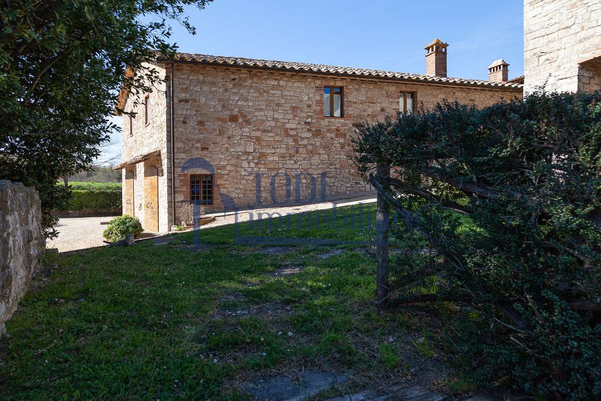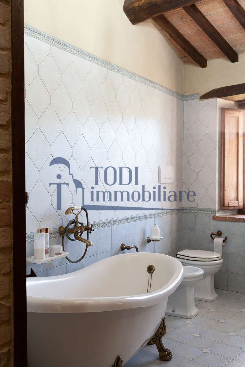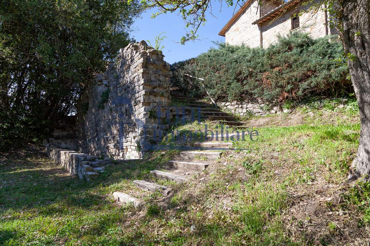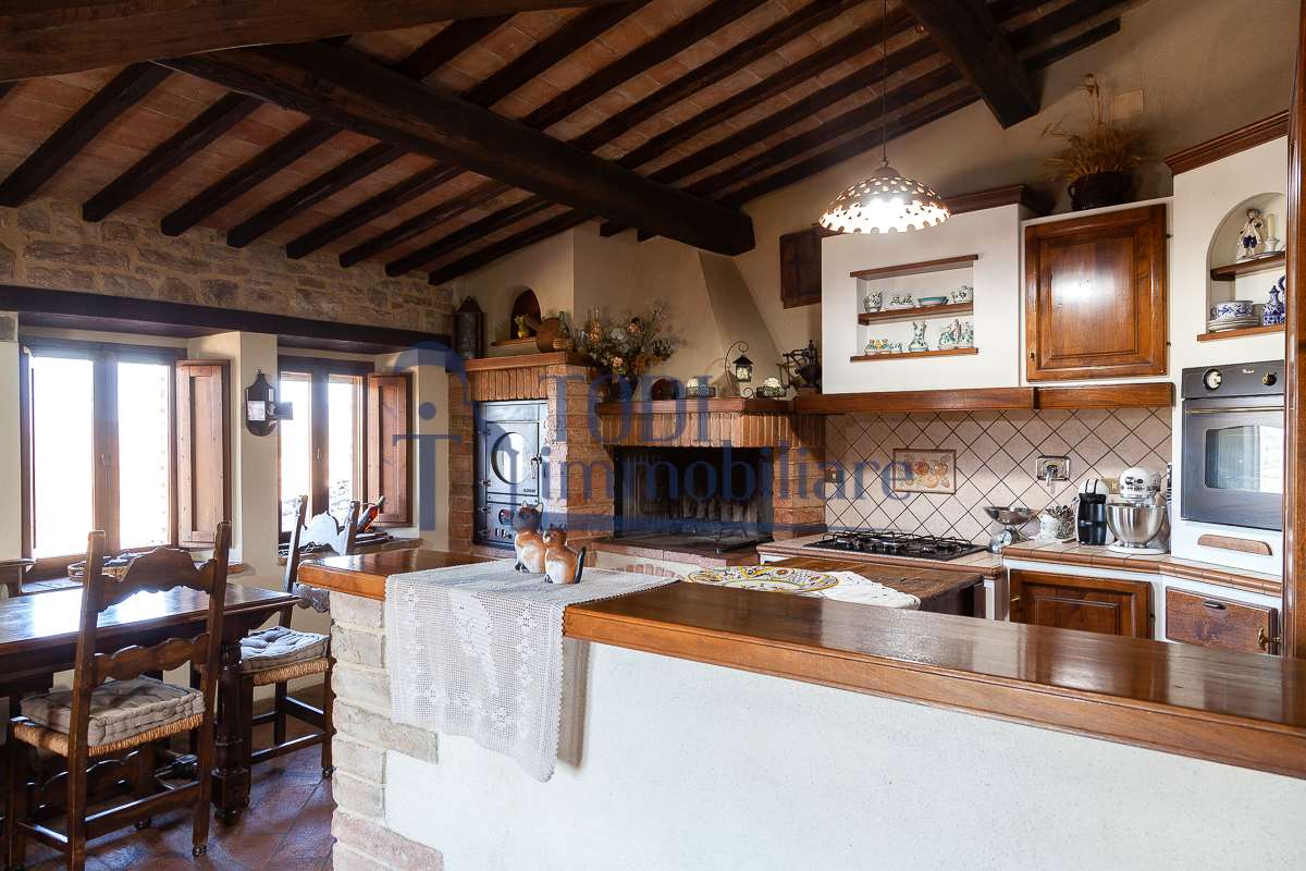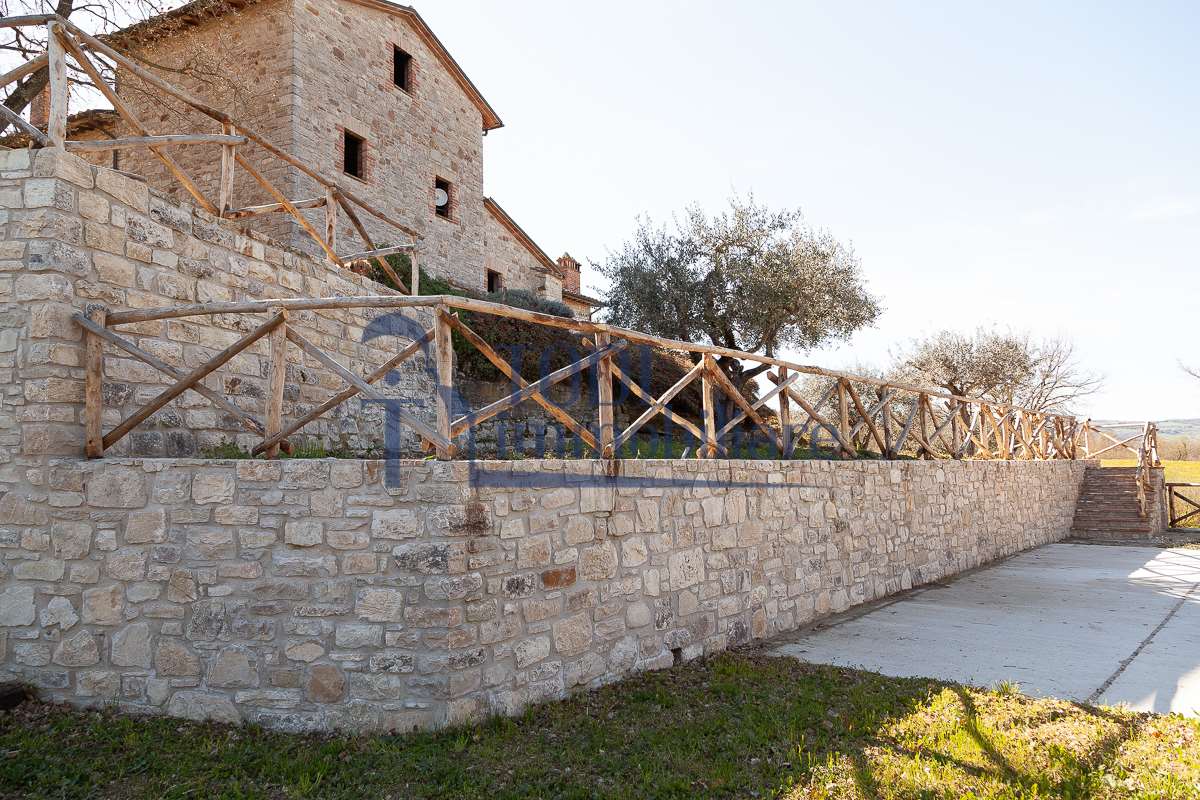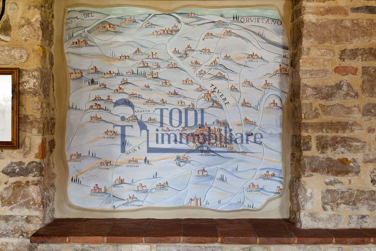 Nella meravigliosa campagna di Todi, sorge un antico casale di circa 560 mq dal fascino senza tempo. La proprietà che anticamente era un castello chiamato \"Lo Scacciatoro\", risale al 1200, la struttura, oltre ad avere un grande valore storico e culturale è stata finemente e sapientemente ristrutturata negli anni 2000, mantenendo intatte tutte le caratteristiche del vecchio casale. L\'esterno in pietra a faccia vista si fonde perfettamente con il verde della natura circostante, mentre all\'interno oltre a trovare sempre pareti realizzate in pietra troviamo solai realizzati con travi in legno, travetti e pianelle, mentre i pavimenti sono stati realizzati in cotto fatto a mano, il tutto crea un\'atmosfera calda e accogliente. Attualmente, la proprietà si compone di 340 mq di superficie abitativa disposta su due livelli; al piano terra troviamo un bellissimo ingresso, una camera con bagno, una lavanderia, una sala hobby e tre garage; una bellissima scala realizzata con gradini in travertino ci conduce al piano primo, dove troviamo un bellissimo doppio salone con camino, un’area relax, una cucina abitabile, due bagni uno a servizio della zona giorno e uno della zona notte, due camere matrimoniali ed un ripostiglio. L’ulteriore superficie abitativa di 220 mq è stata ristrutturata esternamente, mentre internamente è allo stato grezzo quindi con la possibilità di personalizzarli a proprio piacimento, dando sfogo al proprio gusto. Completa la proprietà un annesso si circa 40 mq, disposto su un unico livello dove troviamo un fondo e una tettoia. Il terreno che circonda la casa è vasto e offre la possibilità di godere della bellezza della natura, con boschi, tartufaia e campi coltivati che si estendono per ben 8 ettari, offrendo ampi spazi verdi e una vista mozzafiato sulla campagna umbra e sulla bellissima citta di Todi. La strada di accesso, privata e immersa nel bosco, garantisce la massima privacy e tranquillità. Possibilità di realizzare una piscina. La Proprietà dista circa 7 km dalla splendida città di Todi. Questo casale è l\'ideale per chi cerca un\'oasi di pace e tranquillità. Todi si trova in posizione centrale rispetto a: Perugia, Assisi, Lago Trasimeno, Spoleto, Orvieto, Terni, Narni, Amelia, Cascata delle Marmore, ecc; raggiungibili in meno di mezz\'ora d\'auto, tramite la Superstrada E45. Da Todi c\'è un servizio Pullman giornaliero da e per Roma e aeroporto di Fiumicino. L\'aeroporto internazionale Umbro di Perugia \"San Francesco\" dista solo 45 km Roma dista 130 Km - Firenze 190 Km.\nRestiamo a disposizione per ulteriori informazioni e/o per fissare un appuntamento.