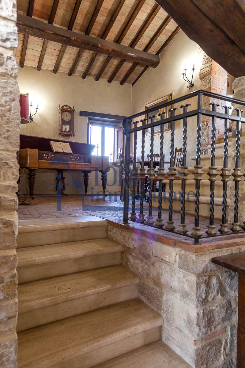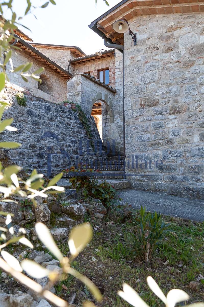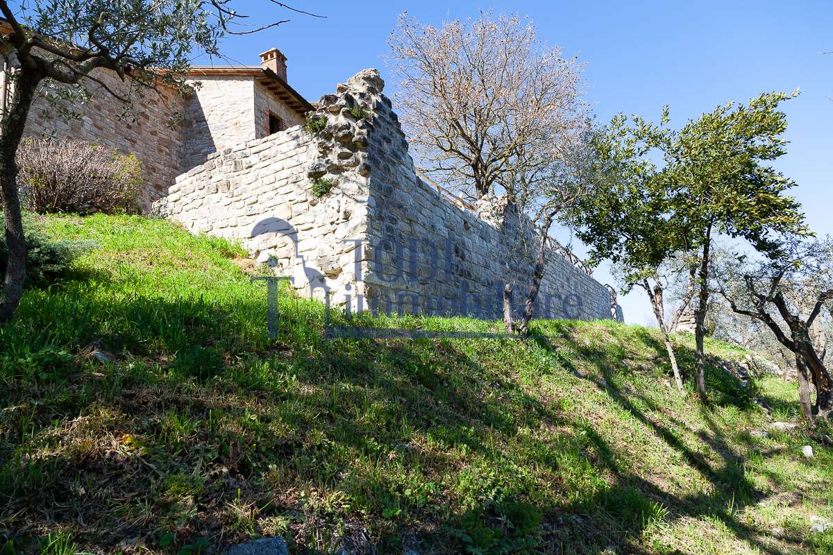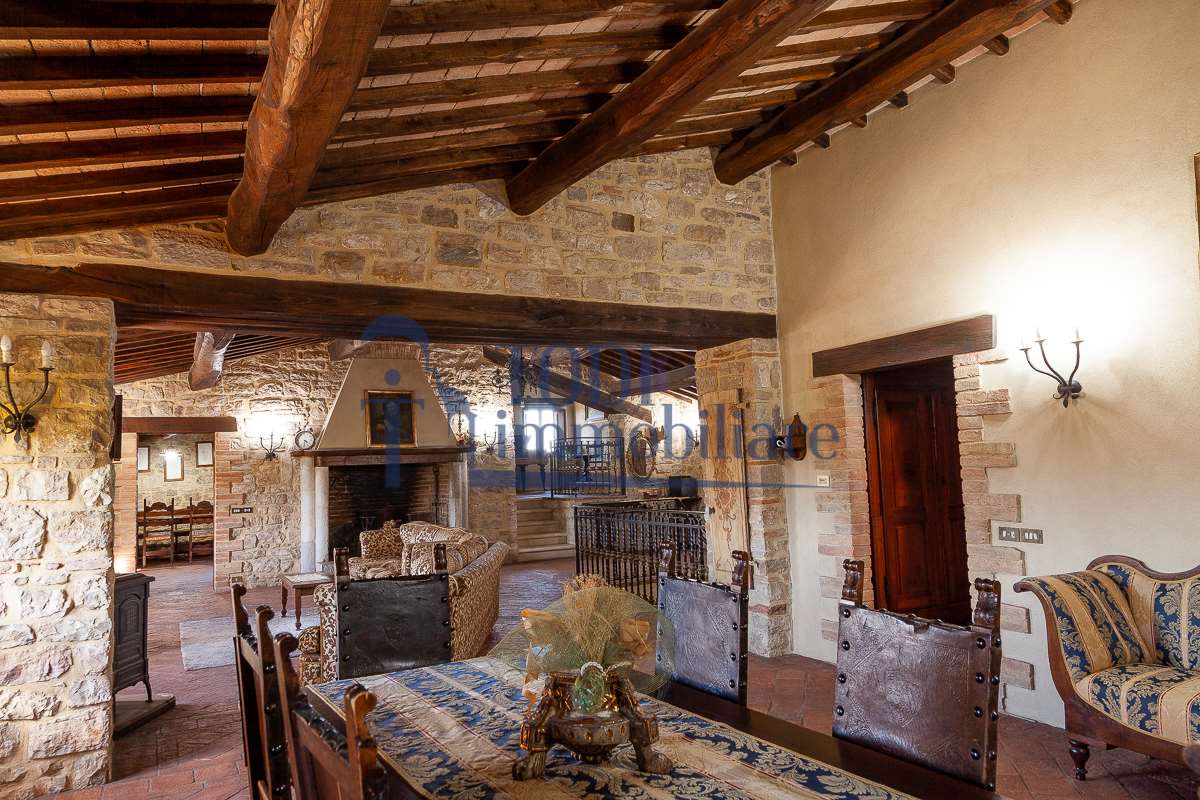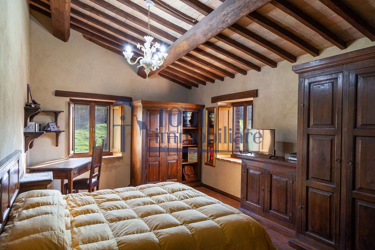 Nella meravigliosa campagna di Todi, sorge un antico casale di circa 560 mq dal fascino senza tempo. La proprietà che anticamente era un castello chiamato \"Lo Scacciatoro\", risale al 1200, la struttura, oltre ad avere un grande valore storico e culturale è stata finemente e sapientemente ristrutturata negli anni 2000, mantenendo intatte tutte le caratteristiche del vecchio casale. L\'esterno in pietra a faccia vista si fonde perfettamente con il verde della natura circostante, mentre all\'interno oltre a trovare sempre pareti realizzate in pietra troviamo solai realizzati con travi in legno, travetti e pianelle, mentre i pavimenti sono stati realizzati in cotto fatto a mano, il tutto crea un\'atmosfera calda e accogliente. Attualmente, la proprietà si compone di 340 mq di superficie abitativa disposta su due livelli; al piano terra troviamo un bellissimo ingresso, una camera con bagno, una lavanderia, una sala hobby e tre garage; una bellissima scala realizzata con gradini in travertino ci conduce al piano primo, dove troviamo un bellissimo doppio salone con camino, un’area relax, una cucina abitabile, due bagni uno a servizio della zona giorno e uno della zona notte, due camere matrimoniali ed un ripostiglio. L’ulteriore superficie abitativa di 220 mq è stata ristrutturata esternamente, mentre internamente è allo stato grezzo quindi con la possibilità di personalizzarli a proprio piacimento, dando sfogo al proprio gusto. Completa la proprietà un annesso si circa 40 mq, disposto su un unico livello dove troviamo un fondo e una tettoia. Il terreno che circonda la casa è vasto e offre la possibilità di godere della bellezza della natura, con boschi, tartufaia e campi coltivati che si estendono per ben 8 ettari, offrendo ampi spazi verdi e una vista mozzafiato sulla campagna umbra e sulla bellissima citta di Todi. La strada di accesso, privata e immersa nel bosco, garantisce la massima privacy e tranquillità. Possibilità di realizzare una piscina. La Proprietà dista circa 7 km dalla splendida città di Todi. Questo casale è l\'ideale per chi cerca un\'oasi di pace e tranquillità. Todi si trova in posizione centrale rispetto a: Perugia, Assisi, Lago Trasimeno, Spoleto, Orvieto, Terni, Narni, Amelia, Cascata delle Marmore, ecc; raggiungibili in meno di mezz\'ora d\'auto, tramite la Superstrada E45. Da Todi c\'è un servizio Pullman giornaliero da e per Roma e aeroporto di Fiumicino. L\'aeroporto internazionale Umbro di Perugia \"San Francesco\" dista solo 45 km Roma dista 130 Km - Firenze 190 Km.\nRestiamo a disposizione per ulteriori informazioni e/o per fissare un appuntamento.
