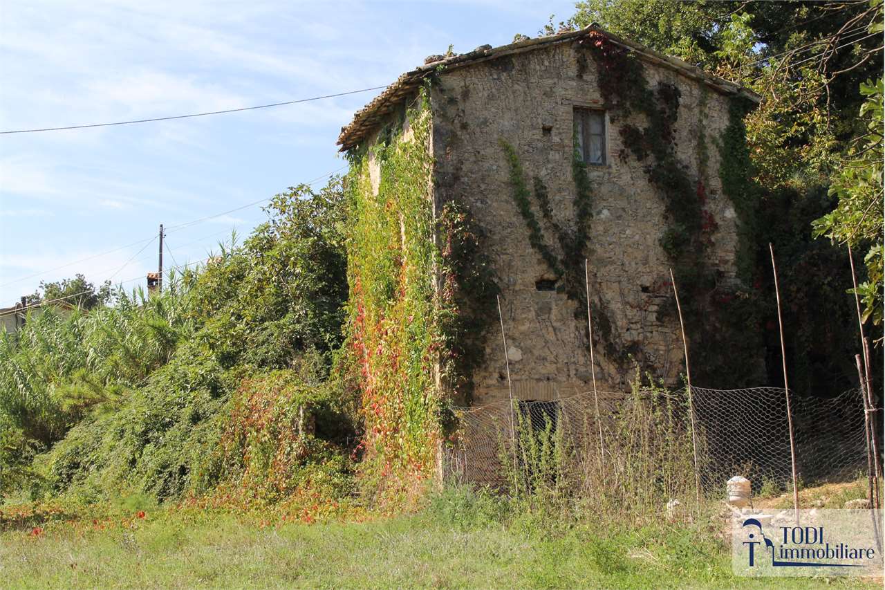 Scopri questo affascinante casale in vendita, situato a pochi passi da un incantevole borgo medievale, tra Todi e Acquasparta. Questa tipica torretta in stile rurale, realizzata con materiali come pietra a faccia vista e mattoni in cotto fatti a mano, offre un\'atmosfera calda e accogliente. Con una superficie di circa 60 mq distribuiti su tre livelli, l\'immobile presenta un soggiorno/pranzo con camino al piano terra, una camera da letto al primo piano e un vano cantina ideale come magazzino.\n\nIl terreno circostante di circa 4.300 mq è principalmente pianeggiante, garantendo privacy e la possibilità di creare un giardino o un orto. La proprietà, pur necessitando di una ristrutturazione completa, offre la possibilità di ampliamento secondo la normativa urbanistica vigente. Con utenze già presenti e un\'ottima esposizione, questa torretta è perfetta come seconda residenza per vacanze, weekend o semplicemente per rilassarsi nella tranquillità della campagna. Non perdere l\'opportunità di trasformare questo gioiello in un rifugio unico!