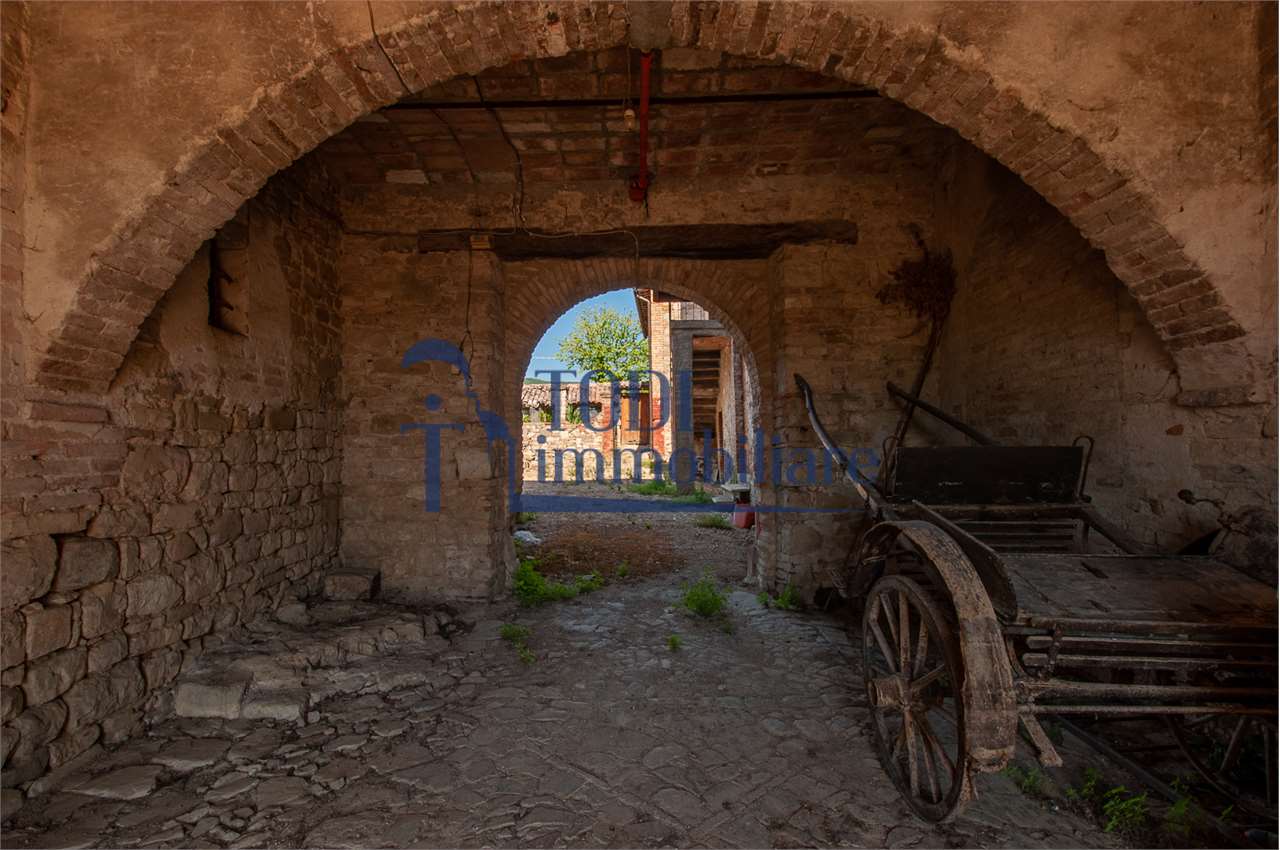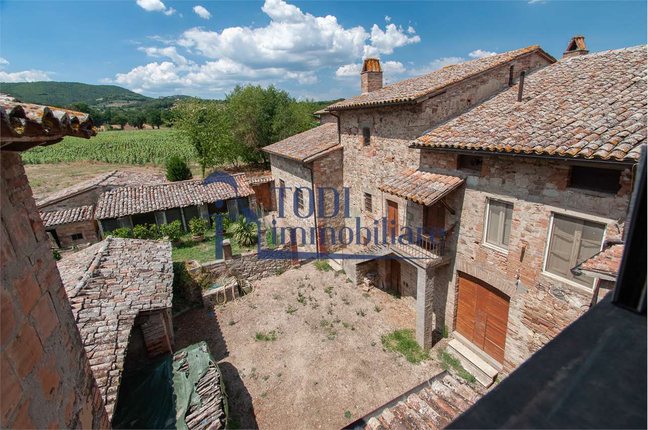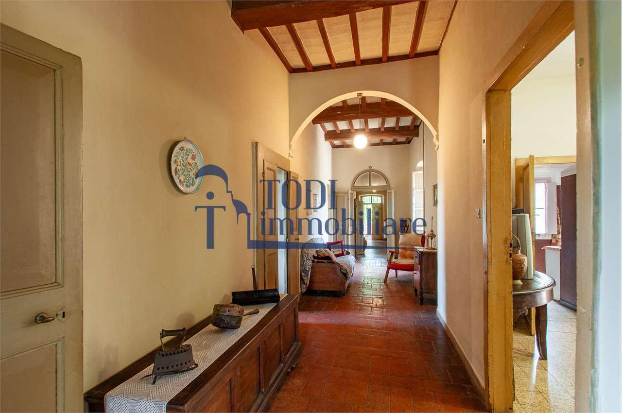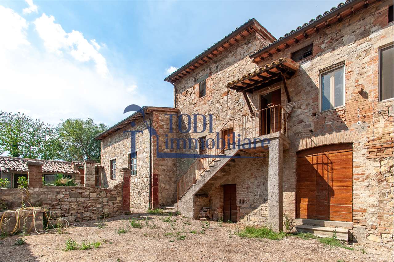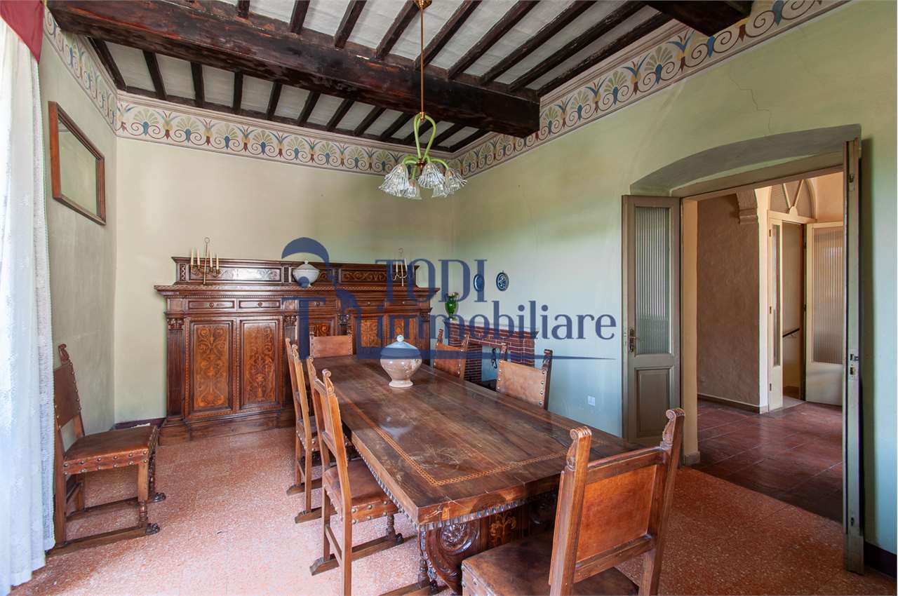 Ref. C144 - Antica Dimora padronale risalente alla fine XVII sec. di complessivi 1.800 mq. e parco-giardino di 13.000 mq con possibilità di aggiungere ulteriore superficie, ubicata a solo 4 Km dal centro storico di Todi e a 1,5 Km dalla E45.\n\nLe condizioni generali dei vari edifici sono buone, ma necessitano di essere ristrutturati. Il tetto dell’edificio principale è stato completamente rifatto nel 2011.\n\nL\'edificio principale é molto accogliente e conserva totalmente il fascino dell\'epoca.\nVi sono soggiorno, cucina, studio, 7 camere e 4 bagni e altri vani.\nOvviamente vi é la possibilità di estenderla al resto della struttura adiacente, in grado di soddisfare le più disparate esigenze.\n\nI magazzini e le cantine al piano terra cingono il cortile, dove é presente il forno ancora nelle sue condizioni originali, la limonaia e vari annessi agricoli, il grande parco di circa 13.000 mq è protetto da un antico muro di cinta.\n\nQuesta bellissima proprietà si presta ad essere una stupenda residenza di rappresentanza, o una particolare struttura ricettiva che rievoca la storia del luogo dove sorge.\n\nLa posizione é strategica per essere raggiunta da tutta l\'Umbria, essendone Todi collocata proprio al centro.