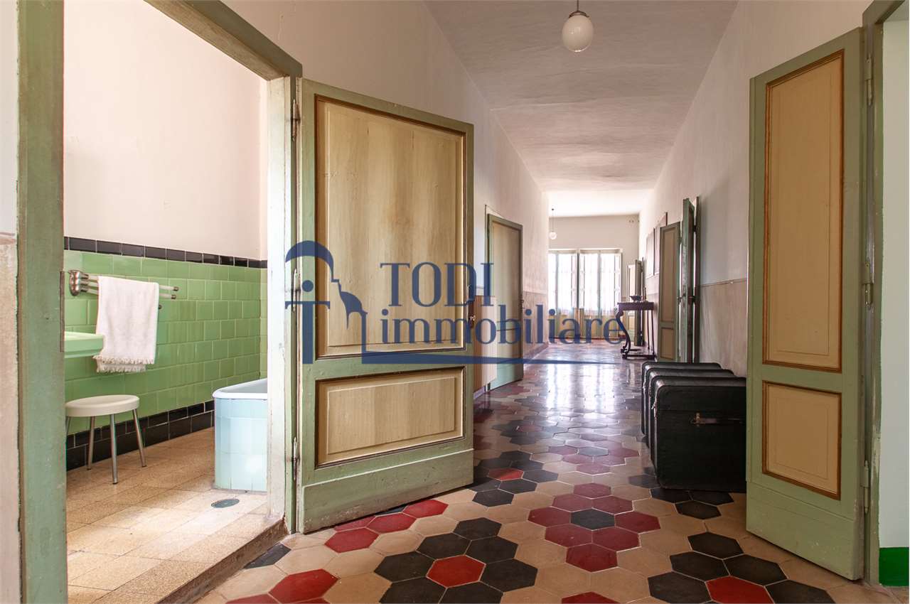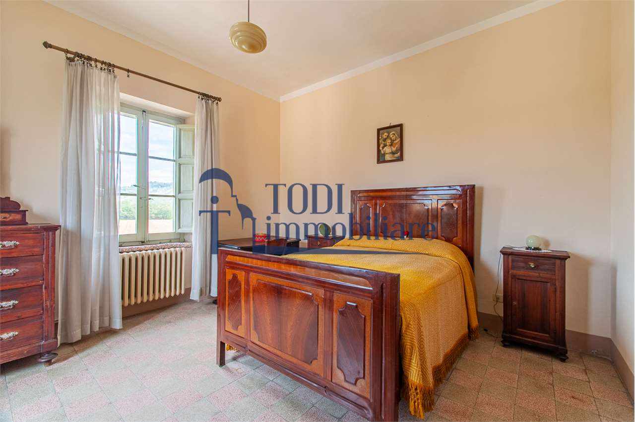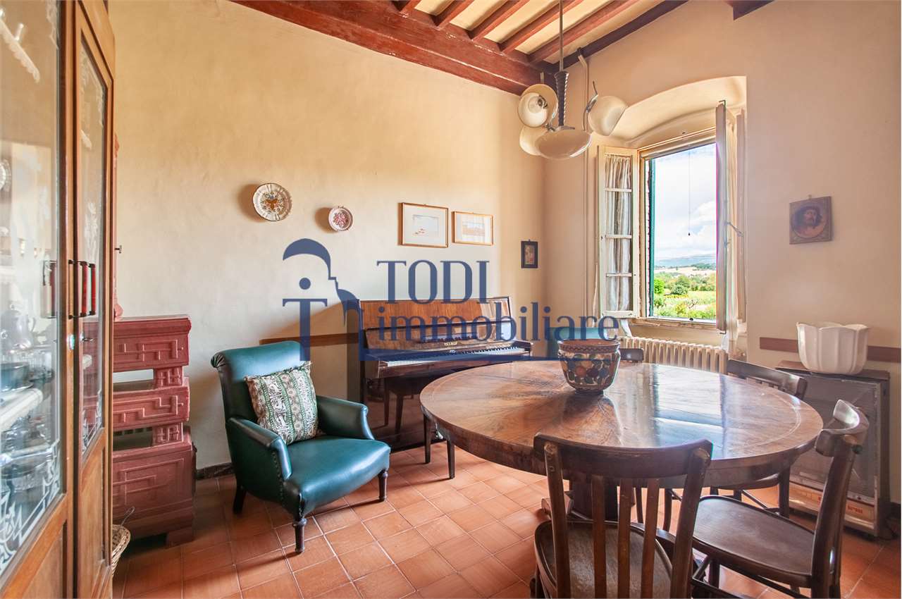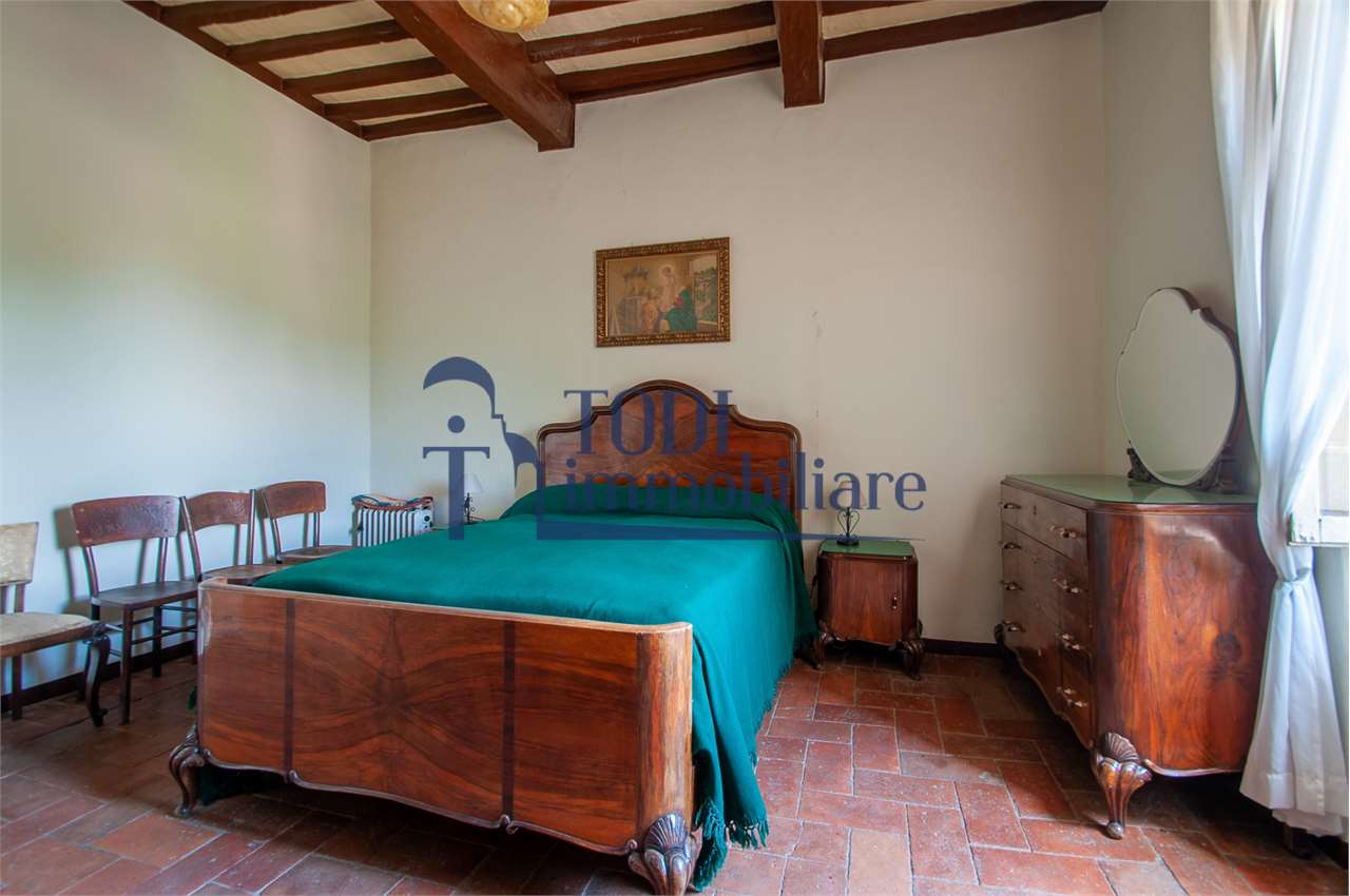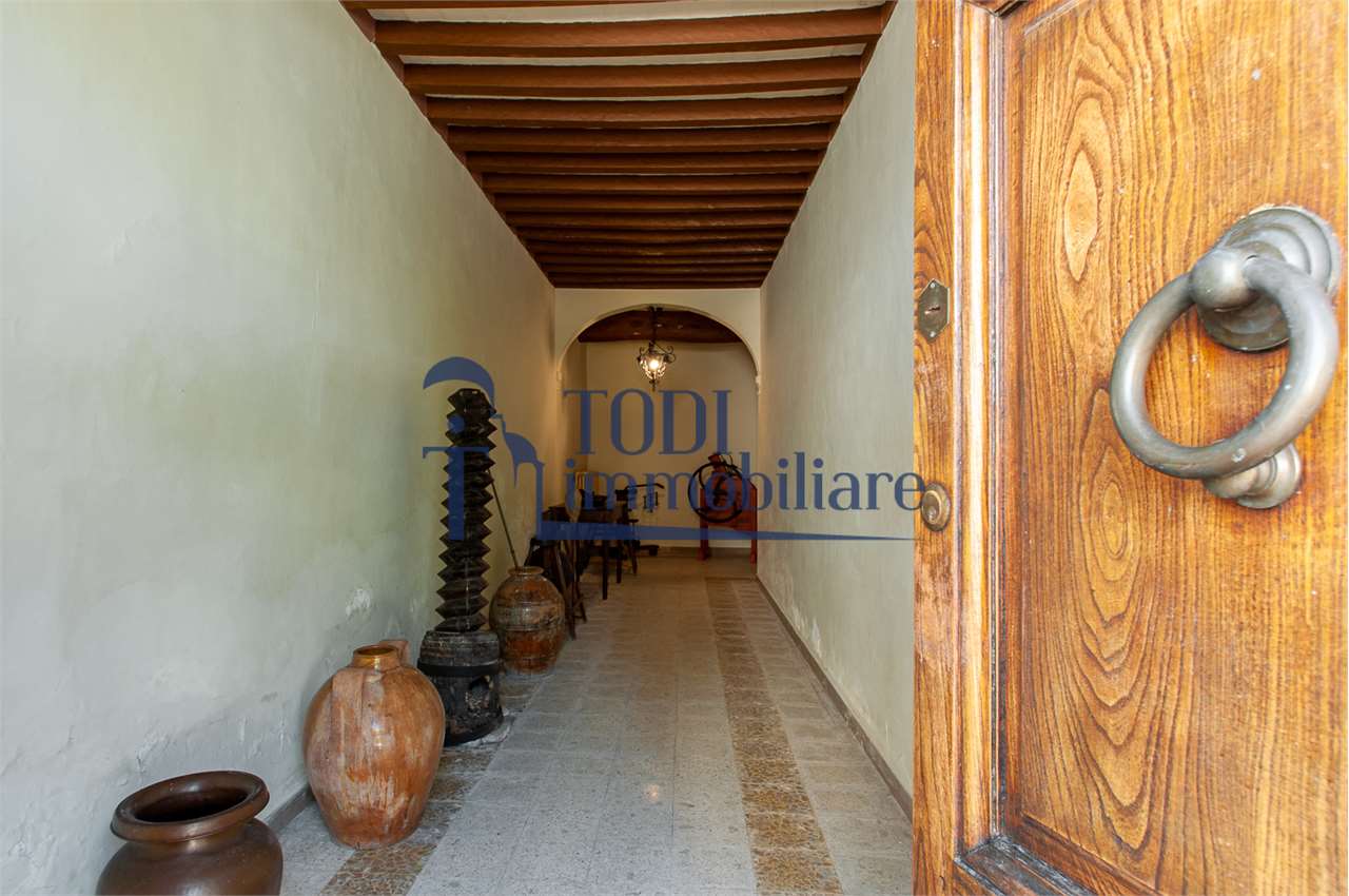 Ref. C144 - Antica Dimora padronale risalente alla fine XVII sec. di complessivi 1.800 mq. e parco-giardino di 13.000 mq con possibilità di aggiungere ulteriore superficie, ubicata a solo 4 Km dal centro storico di Todi e a 1,5 Km dalla E45.\n\nLe condizioni generali dei vari edifici sono buone, ma necessitano di essere ristrutturati. Il tetto dell’edificio principale è stato completamente rifatto nel 2011.\n\nL\'edificio principale é molto accogliente e conserva totalmente il fascino dell\'epoca.\nVi sono soggiorno, cucina, studio, 7 camere e 4 bagni e altri vani.\nOvviamente vi é la possibilità di estenderla al resto della struttura adiacente, in grado di soddisfare le più disparate esigenze.\n\nI magazzini e le cantine al piano terra cingono il cortile, dove é presente il forno ancora nelle sue condizioni originali, la limonaia e vari annessi agricoli, il grande parco di circa 13.000 mq è protetto da un antico muro di cinta.\n\nQuesta bellissima proprietà si presta ad essere una stupenda residenza di rappresentanza, o una particolare struttura ricettiva che rievoca la storia del luogo dove sorge.\n\nLa posizione é strategica per essere raggiunta da tutta l\'Umbria, essendone Todi collocata proprio al centro.
