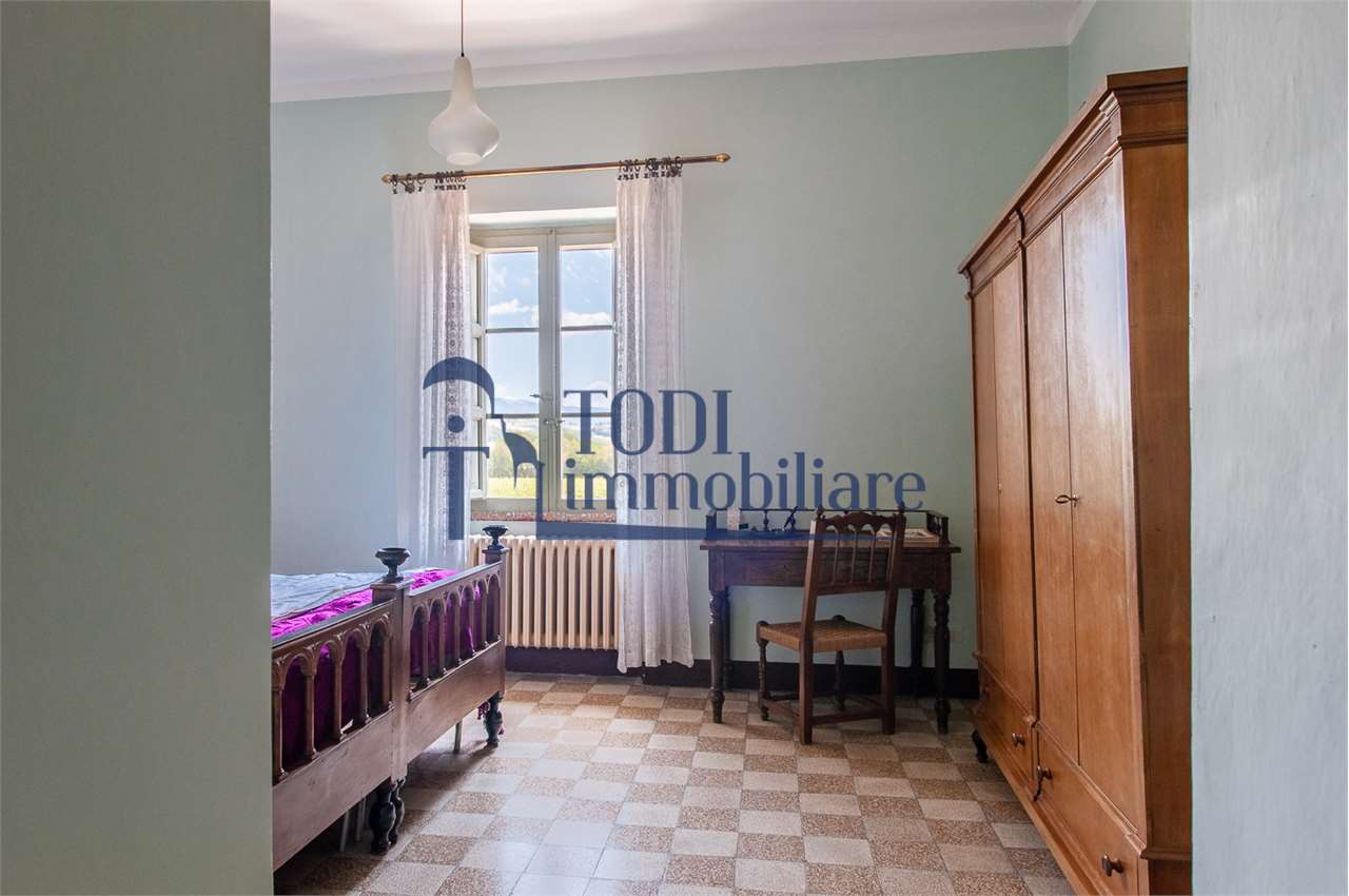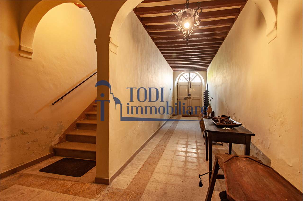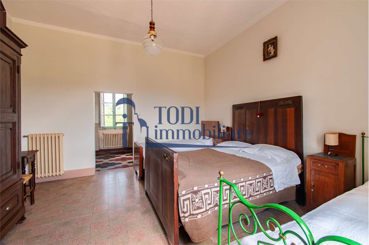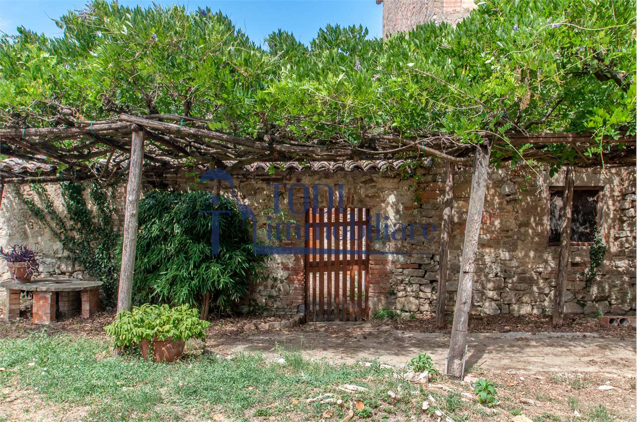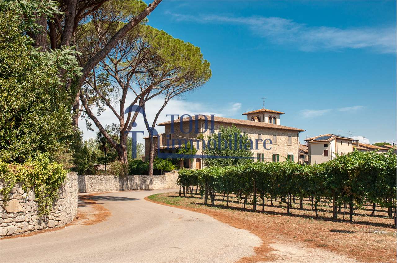 Ref. C144 - Antica Dimora padronale risalente alla fine XVII sec. di complessivi 1.800 mq. e parco-giardino di 13.000 mq con possibilità di aggiungere ulteriore superficie, ubicata a solo 4 Km dal centro storico di Todi e a 1,5 Km dalla E45.\n\nLe condizioni generali dei vari edifici sono buone, ma necessitano di essere ristrutturati. Il tetto dell’edificio principale è stato completamente rifatto nel 2011.\n\nL\'edificio principale é molto accogliente e conserva totalmente il fascino dell\'epoca.\nVi sono soggiorno, cucina, studio, 7 camere e 4 bagni e altri vani.\nOvviamente vi é la possibilità di estenderla al resto della struttura adiacente, in grado di soddisfare le più disparate esigenze.\n\nI magazzini e le cantine al piano terra cingono il cortile, dove é presente il forno ancora nelle sue condizioni originali, la limonaia e vari annessi agricoli, il grande parco di circa 13.000 mq è protetto da un antico muro di cinta.\n\nQuesta bellissima proprietà si presta ad essere una stupenda residenza di rappresentanza, o una particolare struttura ricettiva che rievoca la storia del luogo dove sorge.\n\nLa posizione é strategica per essere raggiunta da tutta l\'Umbria, essendone Todi collocata proprio al centro.