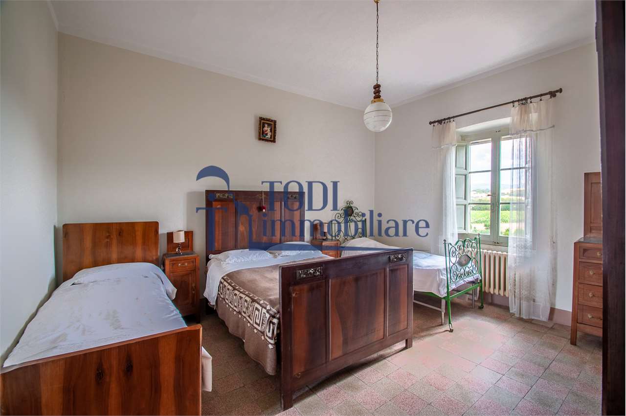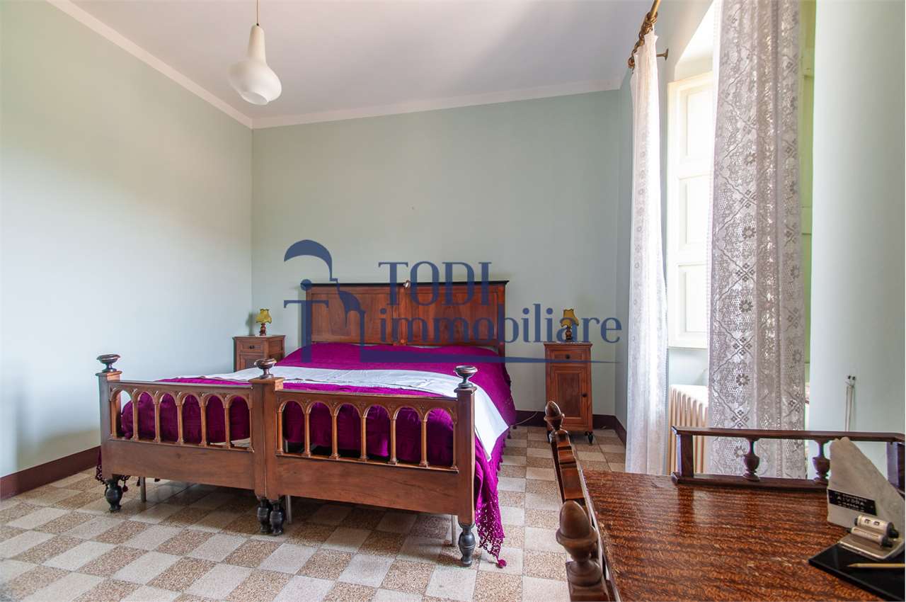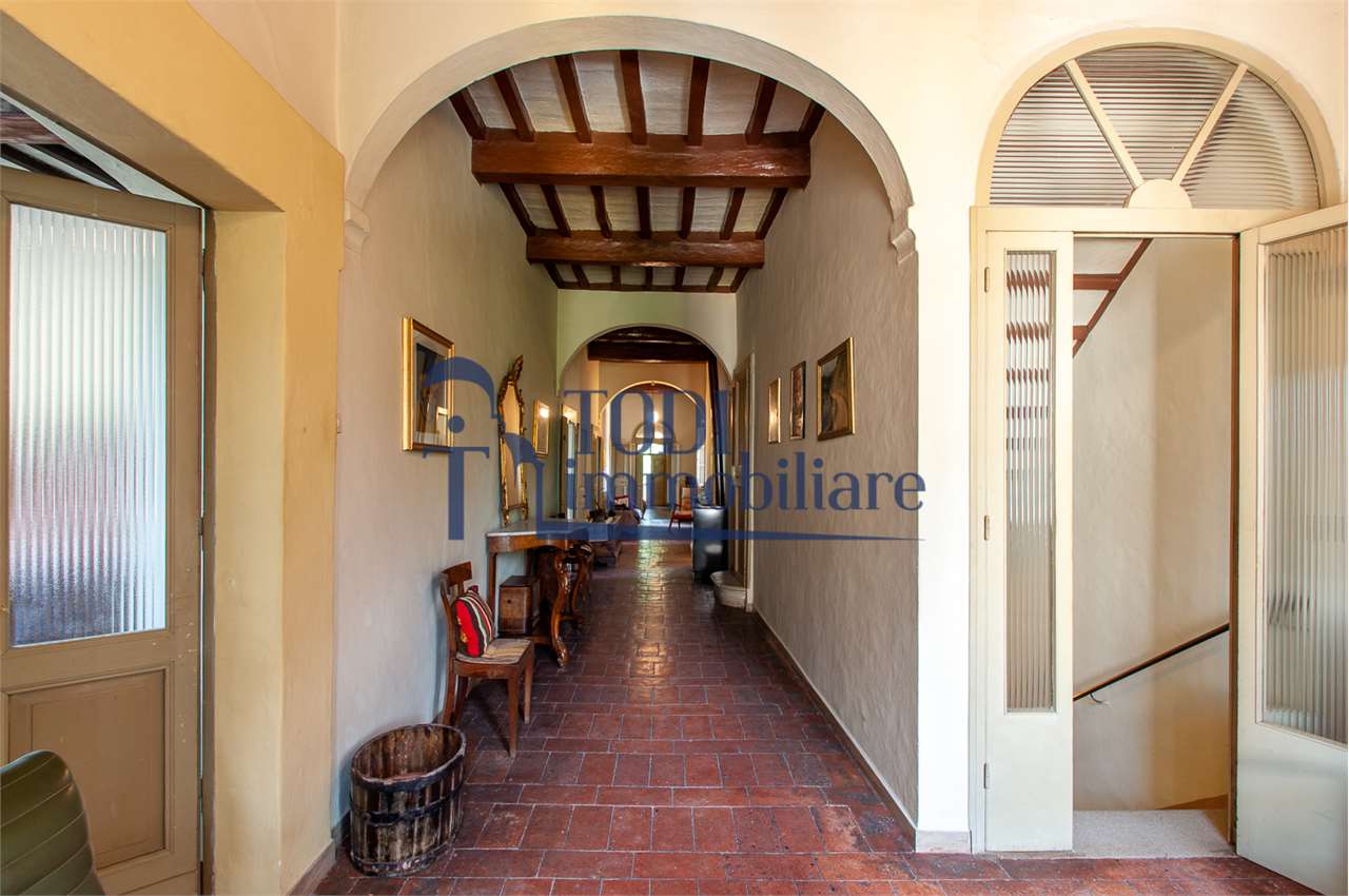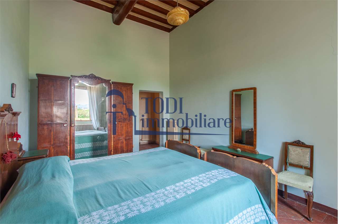 Ref. C144 - Antica Dimora padronale risalente alla fine XVII sec. di complessivi 1.800 mq. e parco-giardino di 13.000 mq con possibilità di aggiungere ulteriore superficie, ubicata a solo 4 Km dal centro storico di Todi e a 1,5 Km dalla E45.\n\nLe condizioni generali dei vari edifici sono buone, ma necessitano di essere ristrutturati. Il tetto dell’edificio principale è stato completamente rifatto nel 2011.\n\nL\'edificio principale é molto accogliente e conserva totalmente il fascino dell\'epoca.\nVi sono soggiorno, cucina, studio, 7 camere e 4 bagni e altri vani.\nOvviamente vi é la possibilità di estenderla al resto della struttura adiacente, in grado di soddisfare le più disparate esigenze.\n\nI magazzini e le cantine al piano terra cingono il cortile, dove é presente il forno ancora nelle sue condizioni originali, la limonaia e vari annessi agricoli, il grande parco di circa 13.000 mq è protetto da un antico muro di cinta.\n\nQuesta bellissima proprietà si presta ad essere una stupenda residenza di rappresentanza, o una particolare struttura ricettiva che rievoca la storia del luogo dove sorge.\n\nLa posizione é strategica per essere raggiunta da tutta l\'Umbria, essendone Todi collocata proprio al centro.