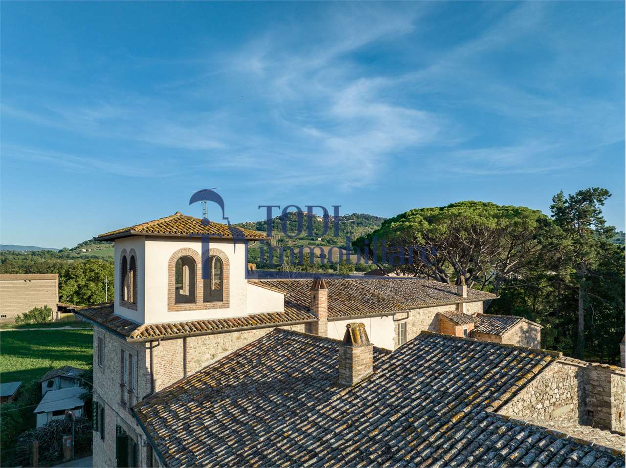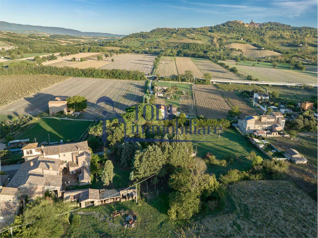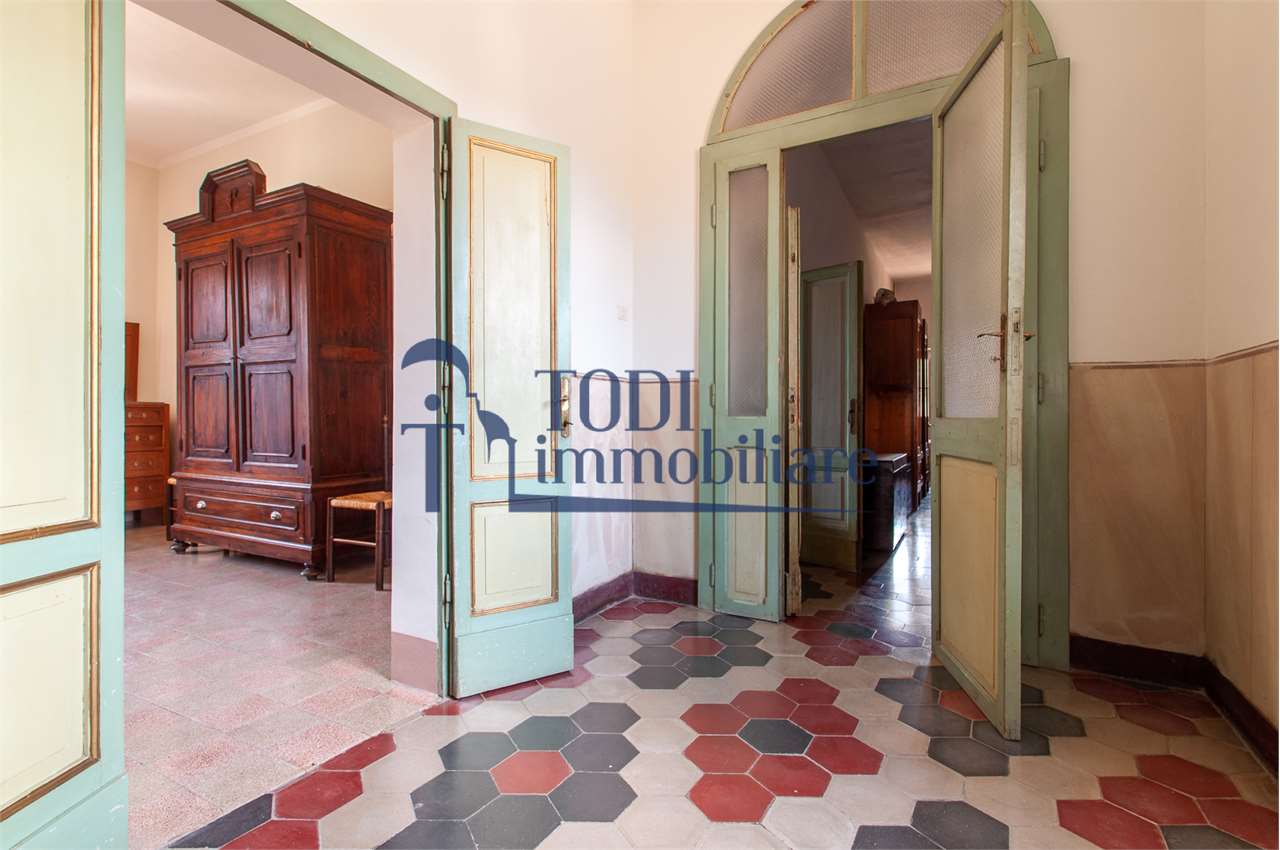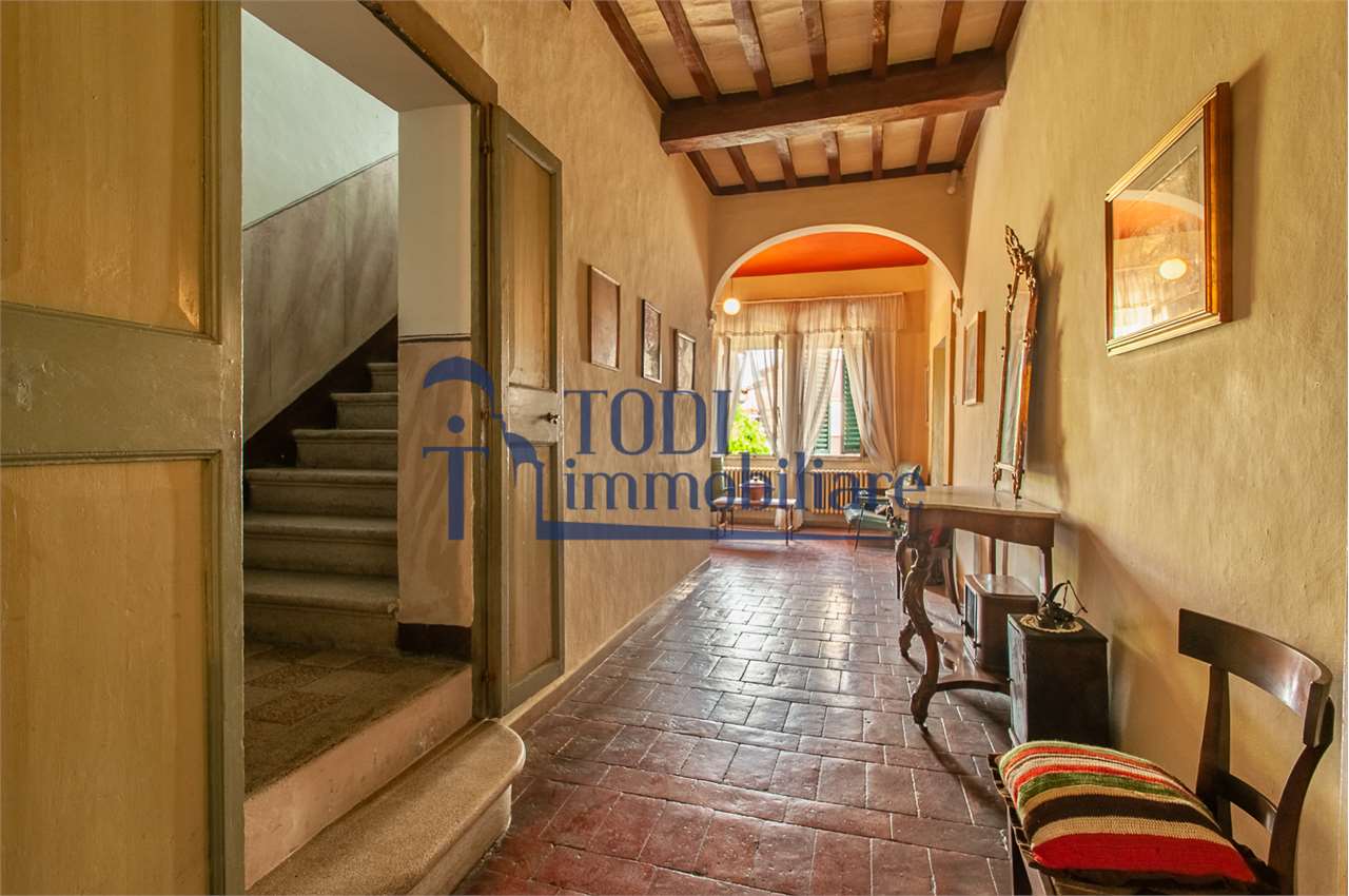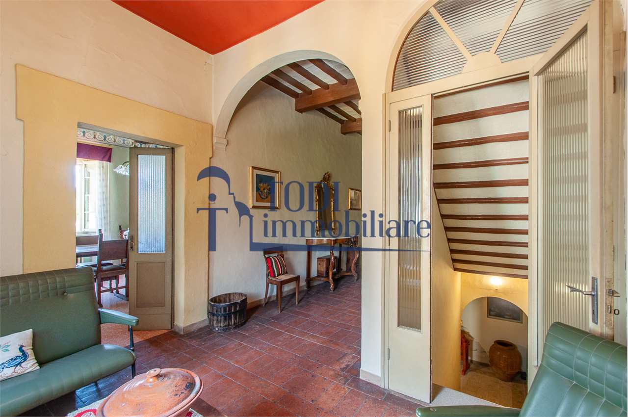 Ref. C144 - Antica Dimora padronale risalente alla fine XVII sec. di complessivi 1.800 mq. e parco-giardino di 13.000 mq con possibilità di aggiungere ulteriore superficie, ubicata a solo 4 Km dal centro storico di Todi e a 1,5 Km dalla E45.\n\nLe condizioni generali dei vari edifici sono buone, ma necessitano di essere ristrutturati. Il tetto dell’edificio principale è stato completamente rifatto nel 2011.\n\nL\'edificio principale é molto accogliente e conserva totalmente il fascino dell\'epoca.\nVi sono soggiorno, cucina, studio, 7 camere e 4 bagni e altri vani.\nOvviamente vi é la possibilità di estenderla al resto della struttura adiacente, in grado di soddisfare le più disparate esigenze.\n\nI magazzini e le cantine al piano terra cingono il cortile, dove é presente il forno ancora nelle sue condizioni originali, la limonaia e vari annessi agricoli, il grande parco di circa 13.000 mq è protetto da un antico muro di cinta.\n\nQuesta bellissima proprietà si presta ad essere una stupenda residenza di rappresentanza, o una particolare struttura ricettiva che rievoca la storia del luogo dove sorge.\n\nLa posizione é strategica per essere raggiunta da tutta l\'Umbria, essendone Todi collocata proprio al centro.