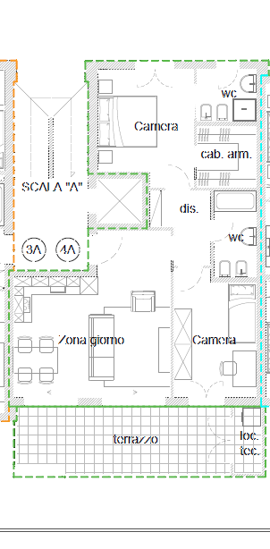 RESIDENZA DEL SOLE. In piccola palazzina di sole 6 unità proponiamo in vendita in esclusiva appartamenti con due o tre camere con giardino o grande terrazzo. Tutti gli appartamenti hanno garage e posto auto esclusivo. Dotata di ascensore. Capitolato di altissima qualità: \nCaratteristiche Principali:\nClasse Energetica A: Questo edificio è stato progettato e costruito con tecniche costruttive innovative per garantire un\'elevata efficienza energetica, contribuendo a ridurre i consumi ei costi energetici. \nAssenza di pilastri: La presenza di una piastra di solaio alleggerita elimina i pilastri discendenti, offrendo grande solidità e permettendo una maggiore libertà di progettazione degli spazi interni. \nInfissi altissima qualità: In PVC di alta qualità con cinque camere d\'aria. Tapparelle in alluminio coibentate. E molto altro ancora. Fissa un appuntamento per visionare il capitolato e avere maggiori informazioni su questa realizzazione esclusiva caratterizzata da qualità costruttiva, posizione panoramica, zona residenziale e tranquilla ma vicina a tutti i servizi. Nello specifico questa scheda si riferisce all\'appartamento al primo piano composto da: Soggiorno con angolo cottura, grande terrazzo coperto, una grande camera con cabina armadio e bagno. Altra camera e bagno. Grande garage di 30 mq e posto auto riservato. Un piccolo estratto del capitolato per evidenziare la qualità costruttiva: Tutte le tamponature esterne verranno realizzate con metodo a secco utilizzando un pacchetto tipo Knauf o similare con spessore finito di cm 30 circa ancorato ad idonea struttura il cui montaggio verrà effettuato esternamente ai pilastri onde evitare ponti termici\ne garantire ottimo isolamento termo-acustico. Il tutto dimensionato e specificato nei grafici esecutivi. La finitura esterna sarà eseguita con tonachino di colore scelto dalla D.L.\nLe superfici esterne come previsto nei grafici dei prospetti verranno tinteggiate utilizzando vernice “silossanica”
