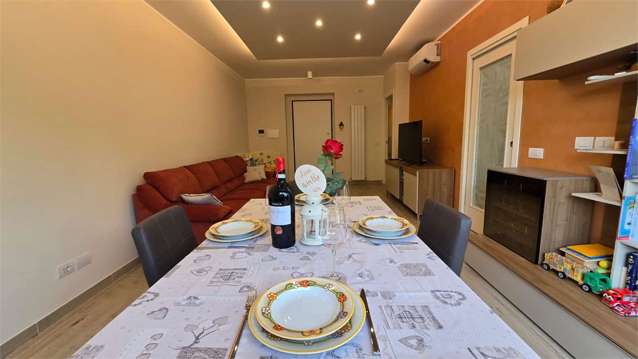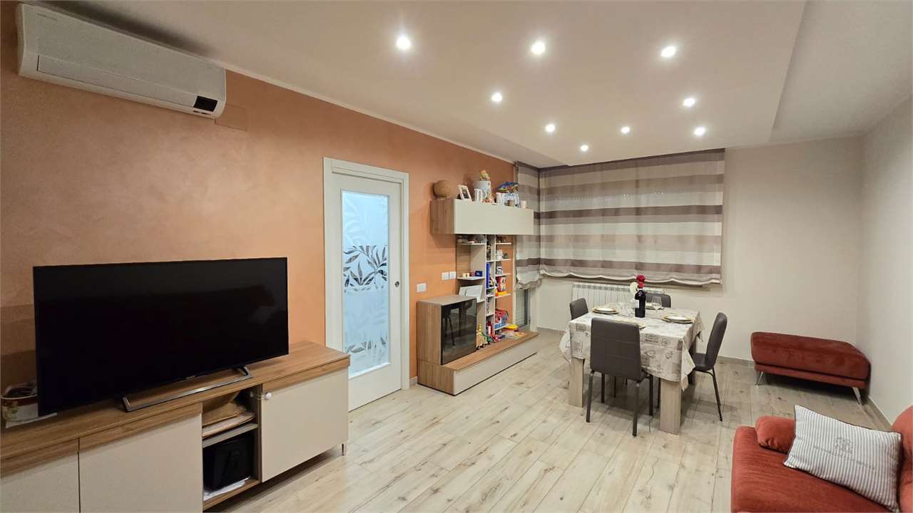 Riferimento annuncio: Giuseppe Casella - 3884778338 \nFrimm Sinergie Immobiliare ha il piacere di proporti in vendita un appartamento recentemente ristrutturato in un contesto residenziale, comodo e vicino a tutti i servizi utili.\n\nDettagli dell\'immobile:\n- Piano: L\'appartamento si trova al terzo piano con ascensore. Ha doppio ingresso: uno al piano 0 e uno al piano - 1.\n- Superficie: L’appartamento misura circa 86 mq, con terrazzi di circa 13 mq.\n \nCaratteristiche interne:\n- Cucina separata, dotata di elettrodomestici a basso impatto energetico.\n- Ampio salone con porta scorrevole in legno e vetro, che lo separa dalla cucina finestrata.\n- Bagno con doppio lavabo e grande box doccia.\n- Due camere matrimoniali, entrambe con accesso ai terrazzi.\n \nImpiantistica e comfort:\n- Appartamento completamente ristrutturato nel 2021 compresa la parte elettrica e idraulica \n- Aria condizionata caldo/freddo in ogni ambiente, di ultima generazione (classe energetica A++).\n- Radiatori nuovi e caldaia di ultima generazione.\n- Sistema di allarme volumetrico e perimetrico.\n- Portone blindato.\n- Serrande elettriche zona giorno. \n- Videocitofono.\n- Garage di 23 mq, con 1 posto auto e basculante elettrica con apertura a telecomando.\n- Spese condominiali mensili 54,00 €\n\nConsiderazioni:\nQuesto appartamento è un\'ottima soluzione abitativa per chi cerca comfort, autonomia e la comodità di essere vicino a tutti i servizi principali. La ristrutturazione recente e le caratteristiche moderne lo rendono perfetto per chi desidera un ambiente accogliente e funzionale.\n\nPer maggiori informazioni o per organizzare una visita: \nContatta Giuseppe Casella al 3884778338. Siamo a tua disposizione per ulteriori dettagli e per fissare un appuntamento!