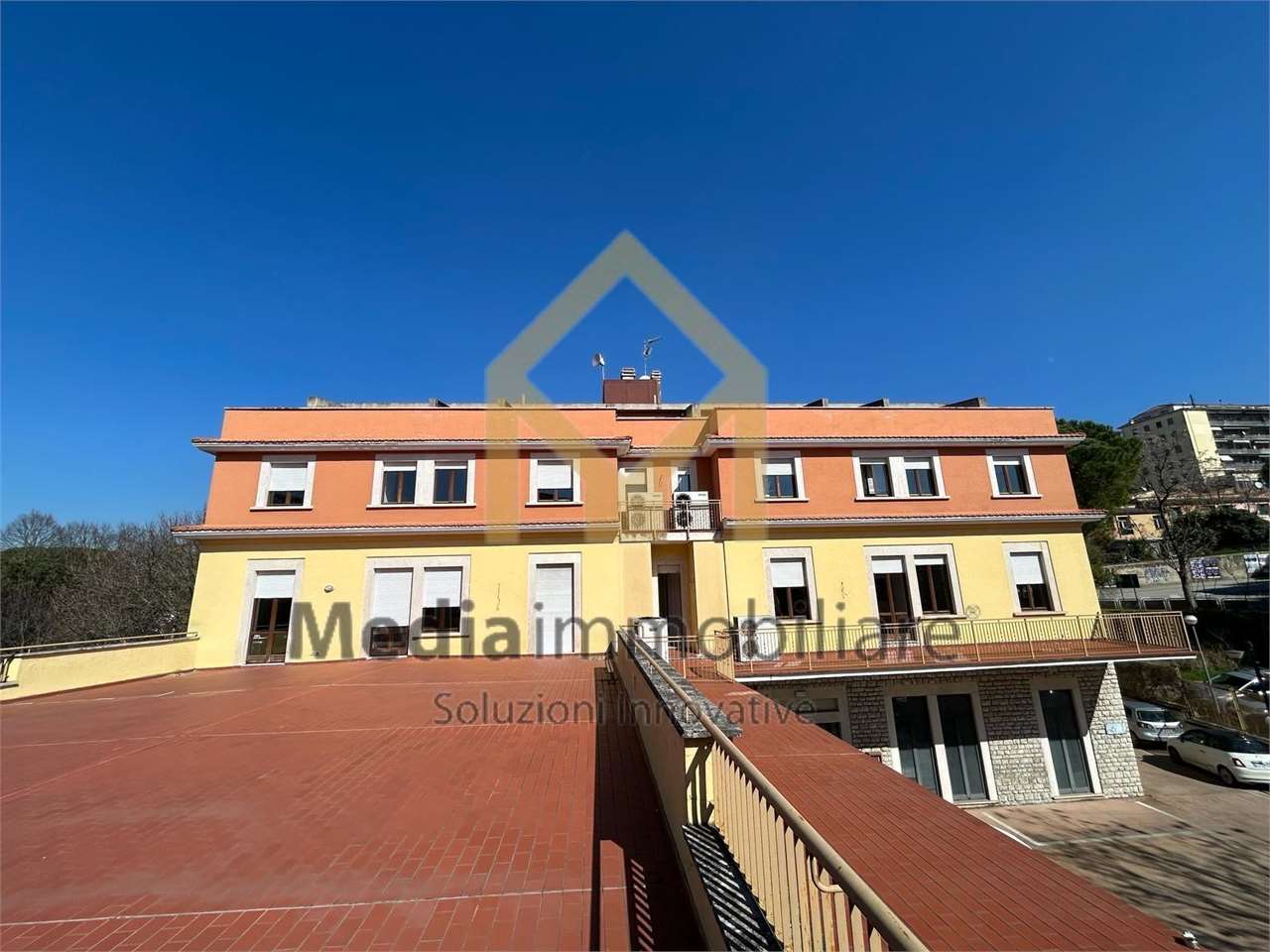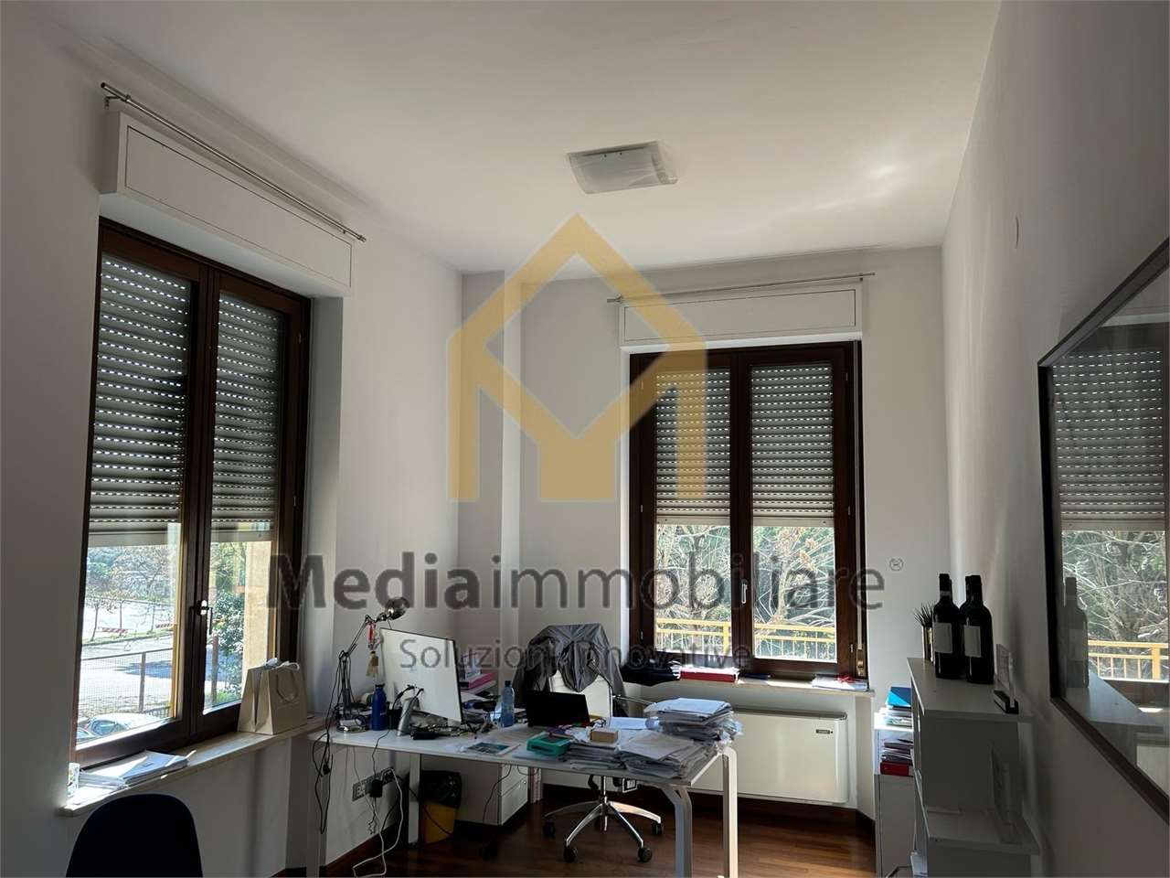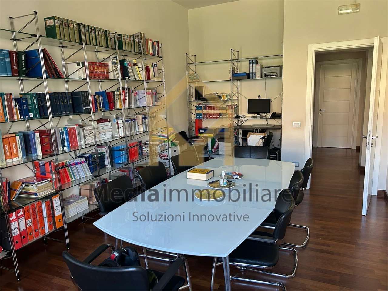 In zona centrale con ottima visibilità e di forte passaggio, al primo piano di un elegante complesso direzionale vendiamo locale commerciale ad uso ufficio completamente ristrutturato di 250 mq ca. oltre terrazzi di 200 mq ca, ideali per aree di relax o eventi aziendali all’aperto. L\'immobile è composto da ingresso, sette ampi uffici, una sala riunioni, archivio e due bagni. Ottimo per uffici direttivi! Numerosi parcheggi riservati. Libero da subito. Da vedere! Per maggiori informazioni 075/30040