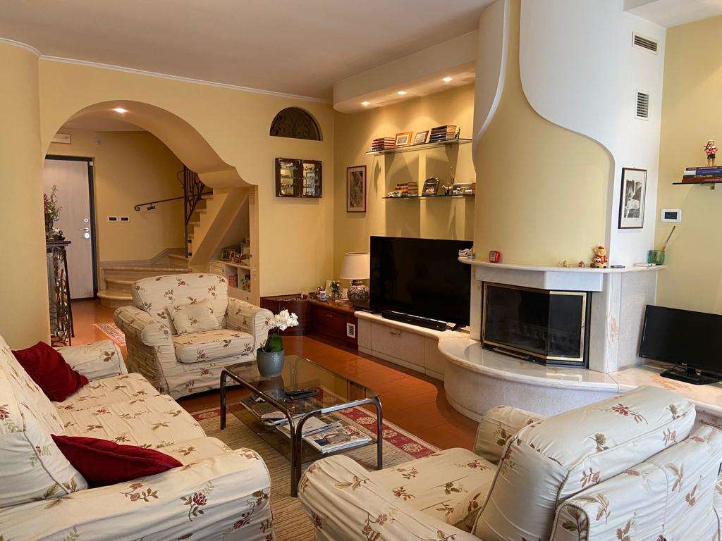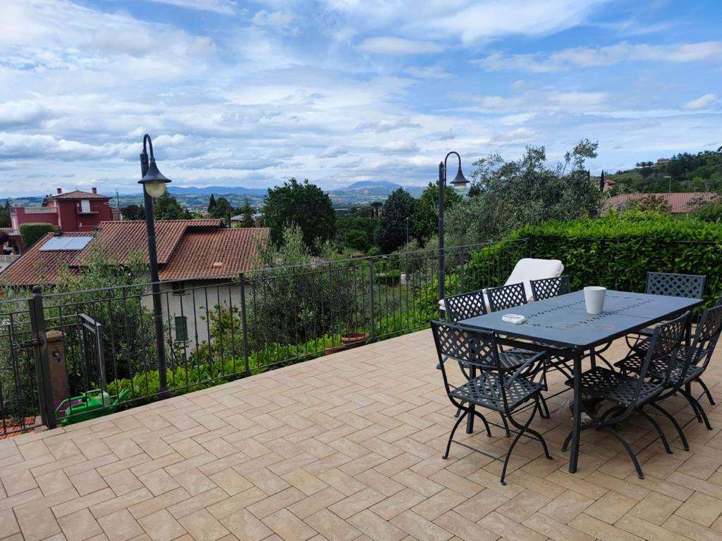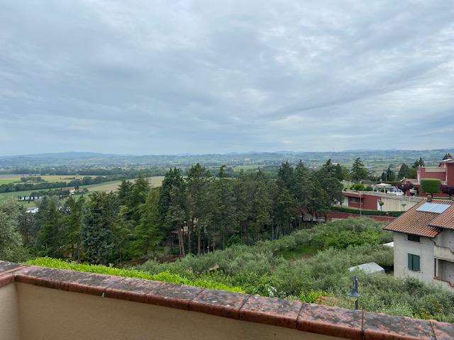 DERUTA - Pontenuovo: a soli 15 minuti da Perugia, in classe A+, in prossimità dello svincolo della E-45, in complesso residenziale di n. 8 villette, situato in zona collinare e molto panoramica, con intervento di riqualificazione energetica vendiamo villetta ottimamente esposta su 2 livelli: \n- pianoterra: ingresso, soggiorno con camino, sala da pranzo, cucina con camino e dispensa, bagno e terrazzo panoramico. \n- piano primo: 3 camere, bagno e terrazzo. \nCompletano la proprietà rata di giardino e posto auto esterno. \nL\'abitazione è dotata di cappotto termico, infissi vetro camera, impianto fotovoltaico, pompa di calore, caldaia a condensazione, tende elettrificate, camino termo-ventilato, portoncino blindato. Possibilità di allarme.\n Da vedere! Per ulteriori informazioni 075/30040.