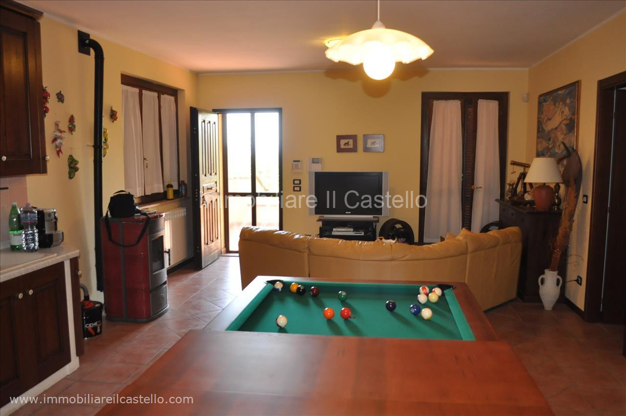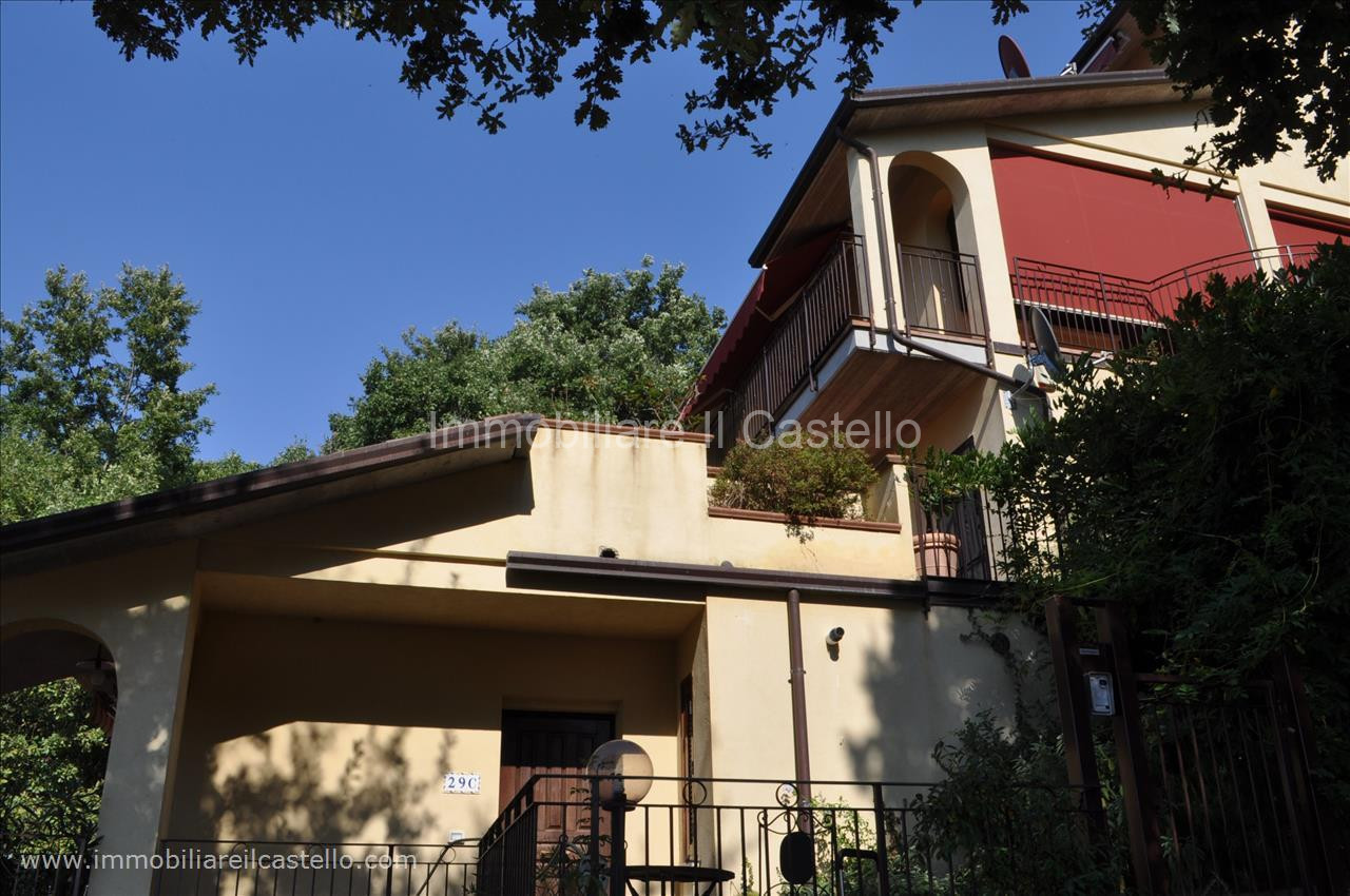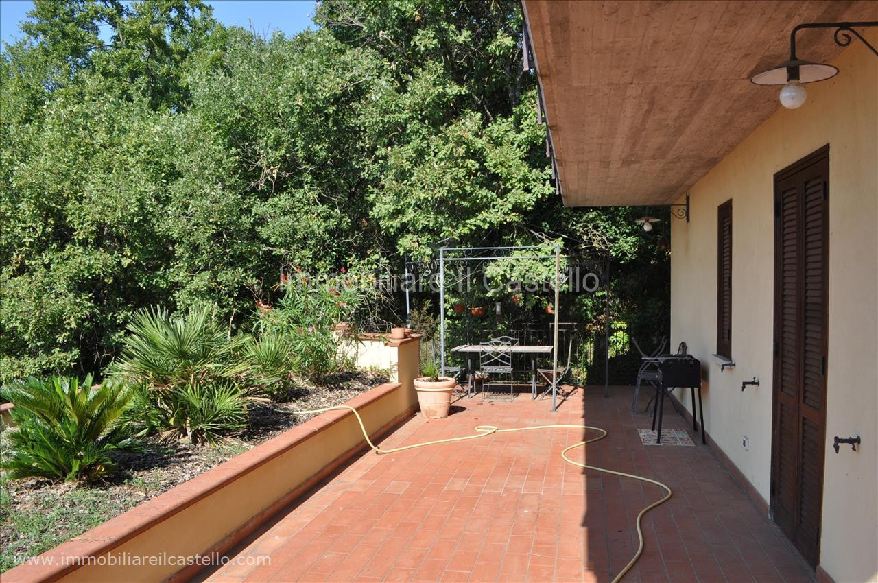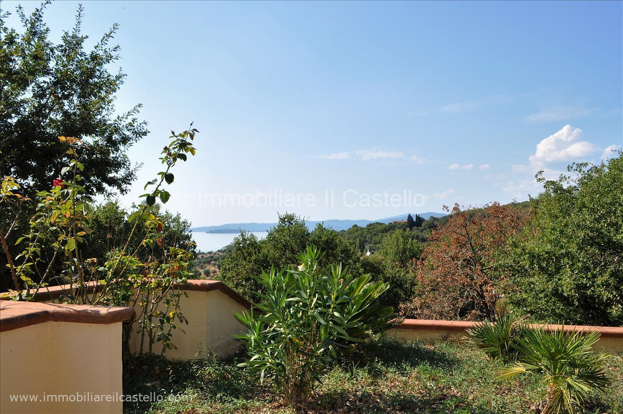 SCOPRILO SUBITOVLT38 - Villetta di circa 120 mq con piccolo giardino privato. DESCRIZIONE: l'immobile è composto da ingresso, ampio soggiorno con angolo cottura, stufa a pellet e grande portico di circa 40 mq. con splendida vista sul lago Trasimeno, disimpegno zona notte, due camere matrimoniali di cui una con bagno e guardaroba, studio e bagno.