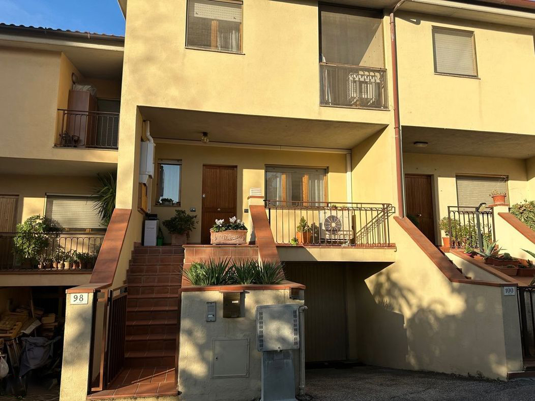SCOPRILO SUBITOGraziosa villetta a schiera degli anni 90 in zona Via Trevi, su due livelli + la taverna, composta da piano terra: soggiorno con angolo cottura, bagno, giardino di 50 mq e terrazzo abitabile, salendo al piano superiore troviamo 3 camere di cui 2 matrimoniali e una cameretta, bagno, terrazzo, completano la proprietà il piano seminterrato con una bella cucina e un ampio garage con la zona lavanderia, di recente sono state fatte delle migliorie all'interno della casa di cui l'impianto fotovoltaico con 3,5 kw e le batterie di accumulo da 15 kw, caldaia nuova ibrida, addolcitore d'acqua, colonnina elettrica per la ricarica della macchina, nuovo impianto di climatizzazione a pompa di calore. La casa e completamente autonoma con spese di gestione molto basse. Termoautonomo.