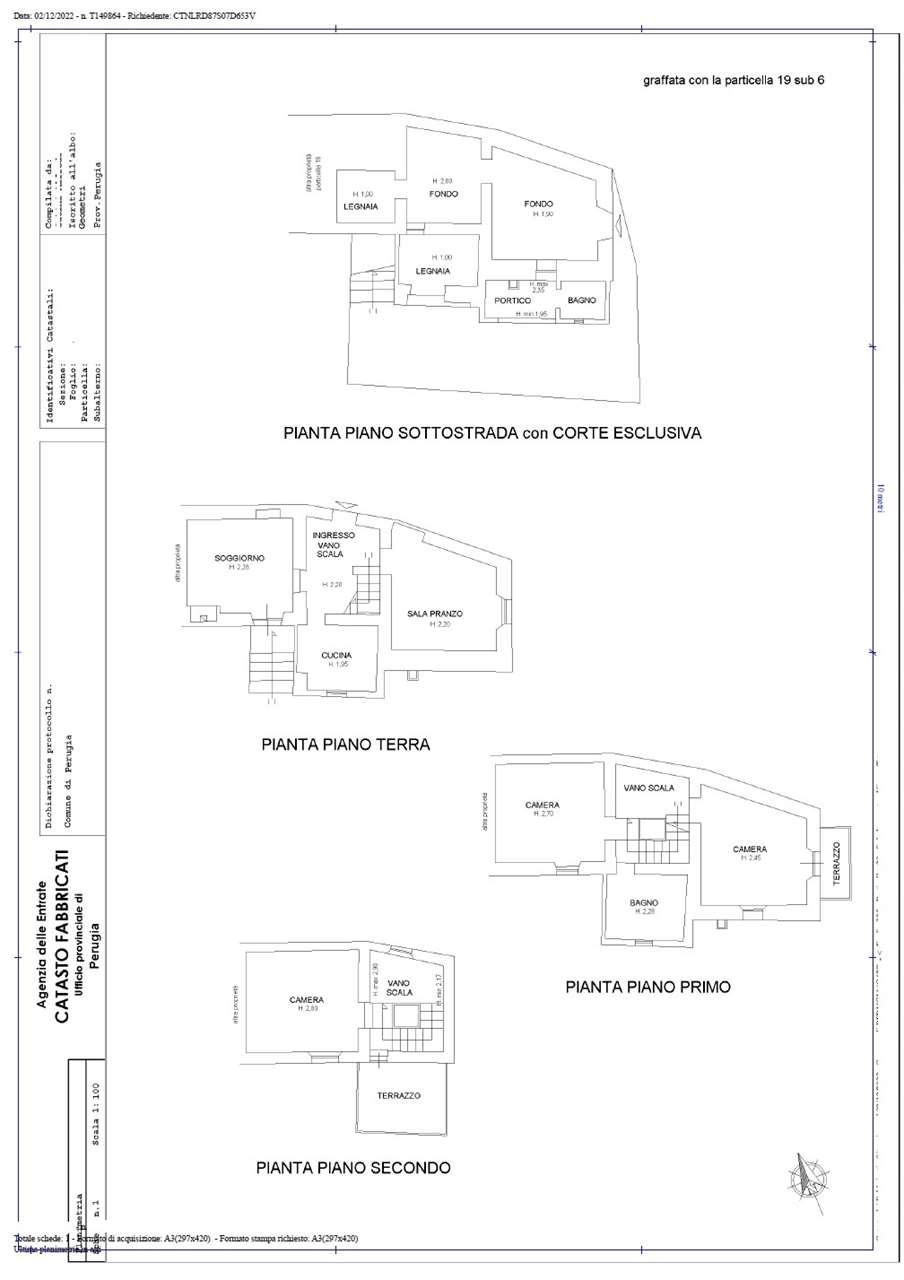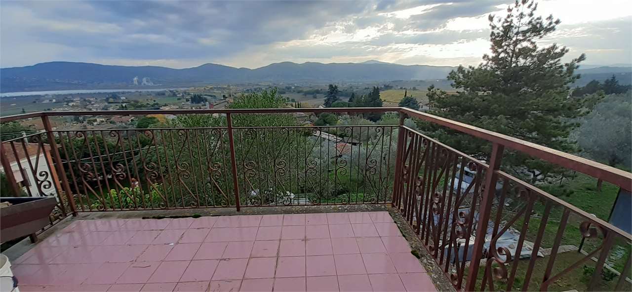 In Vendita – Casa panoramica con giardino e oliveto a Fontignano (Perugia)\nPerugia, località Fontignano**, nelle immediate vicinanze dello storico Castello, proponiamo in vendita un immobile cielo/terra, immersa nel verde e in splendida posizione collinare e panoramica, \nL’abitazione si sviluppa su tre livelli ed è composta da:\n*Cucina abitabile con caminetto, Soggiorno, tre camere da letto, Due bagni. Terrazzo abitabile all’ultimo piano con magnifica vista sulla vallata. Completano la proprietà un giardino privato e 105 mq di terreno ad oliveto, ideale da sfruttare come posto auto, orto o area relax. Soluzione ideale sia come prima casa che come seconda abitazione , grazie alla posizione strategica: \n* A pochi minuti dal carcere e dall\'ospedale di Perugia\n* 20 minuti da Perugia città\n* 40 minuti dall’Aeroporto Internazionale di Perugia “San Francesco d’Assisi\n* Nel paese di Fontignano sono presenti tutti i principali servizi. Un’ottima opportunità per chi cerca tranquillità, panorama e comodità ai servizi.\nAPE: Classe “G” – EP 320???? Contattaci per maggiori informazioni o per fissare una visita!