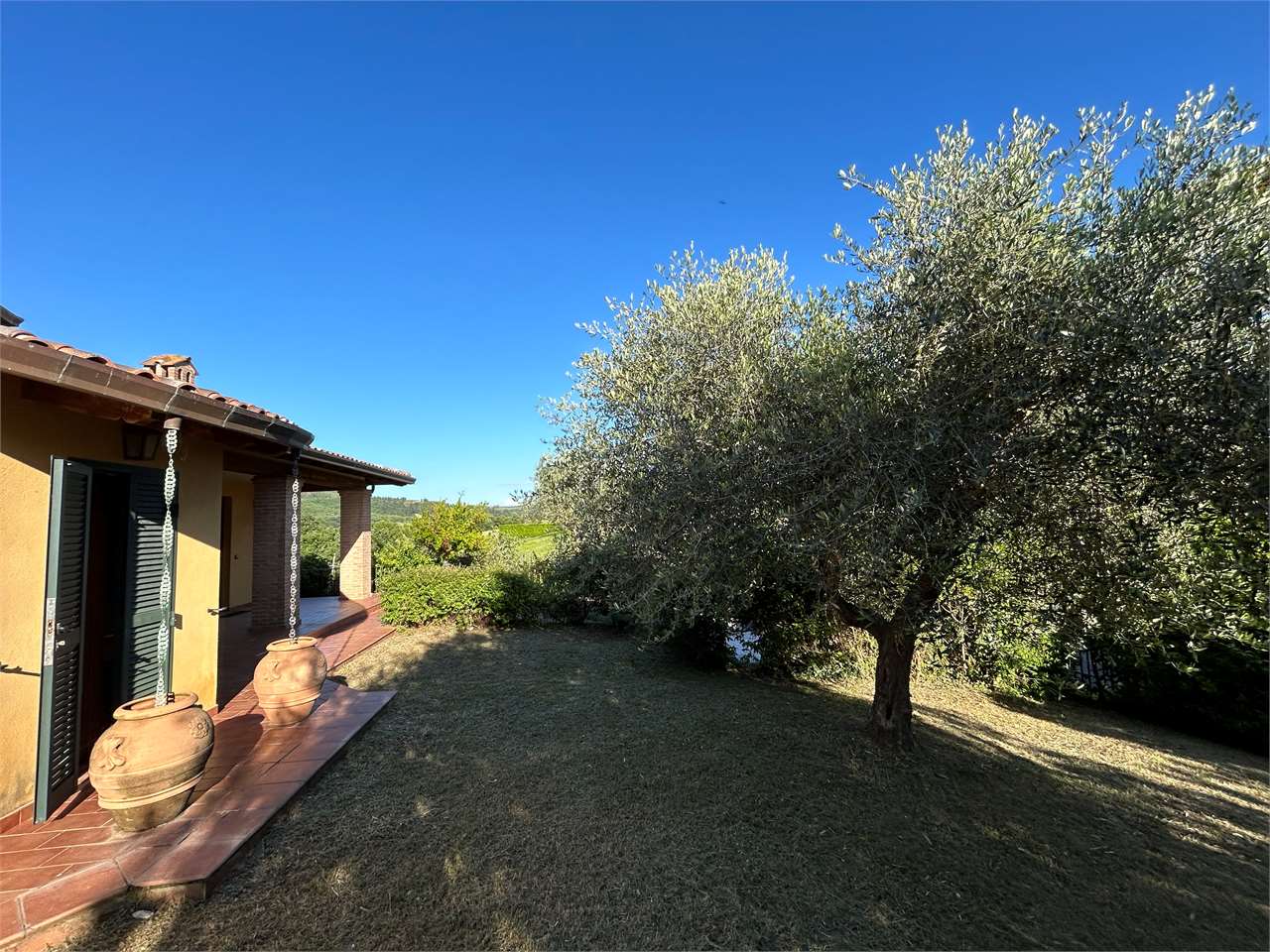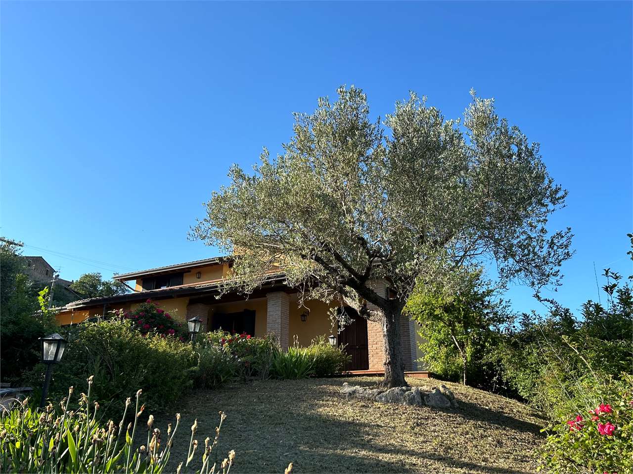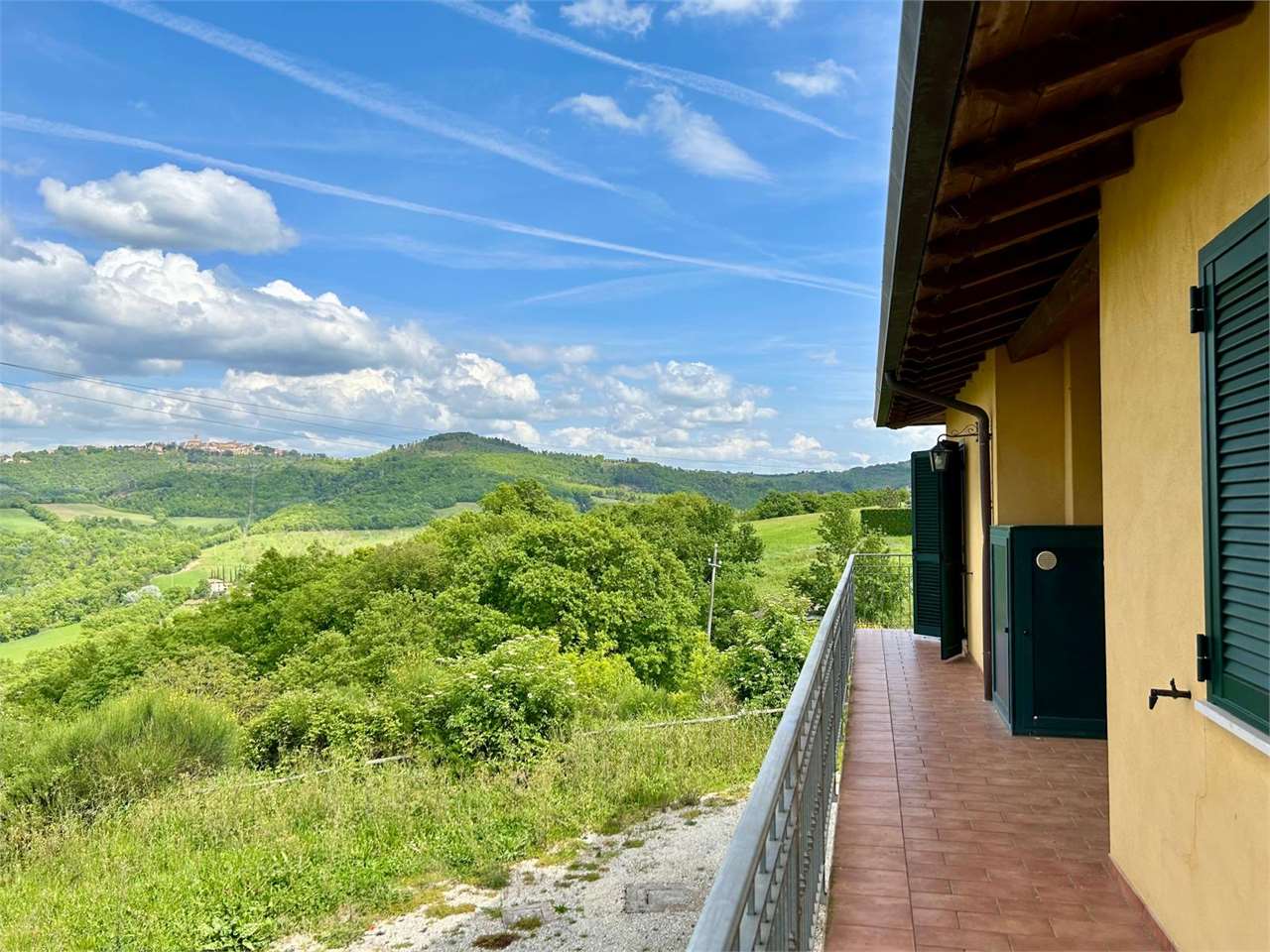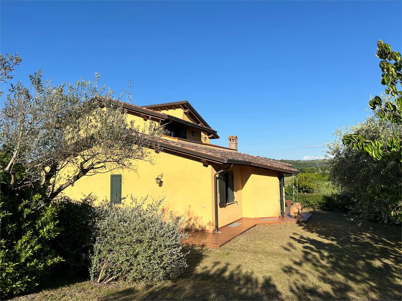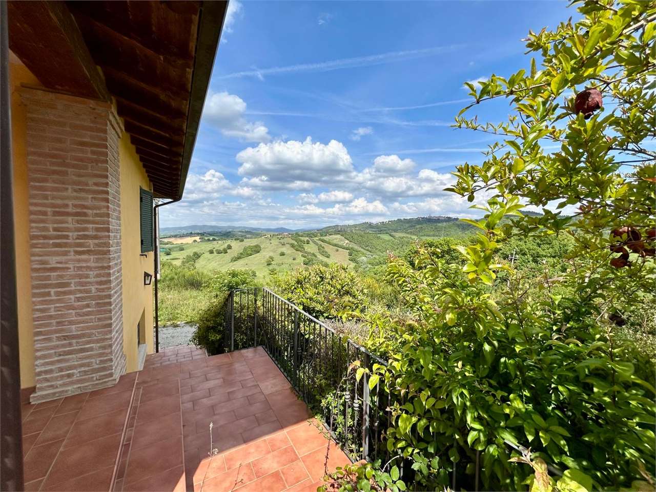 Piedicolle: in posizione collinare, immersa nel verde delle campagne Umbre vendiamo villa panoramica di 250 mq su due livelli oltre taverna ed ampio garage. \nPianoterra: ampio soggiorno con camino che accede su grazioso porticato esterno, cucina abitabile, 3 spaziose camere e 2 bagni.\nPiano primo, accessibile attraverso una comoda e funzionale scala interna: camera matrimoniale con bagno en suite con accesso ad ampio terrazzo e studio.\nPiano seminterrato, caratterizzato da un doppio accesso: ampia taverna, spazioso bagno e doppio garage.\nLa proprietà, circondata da un grazioso giardino e uliveto, dispone di pozzo ed impianto di irrigazione.\nAdiacente alla E 45, a soli 15 minuti da Perugia e limitrofo ai borghi più suggestivi dell\'Umbria quali Todi ed Assisi. Per ulteriori informazioni contattaci allo 075/30040.