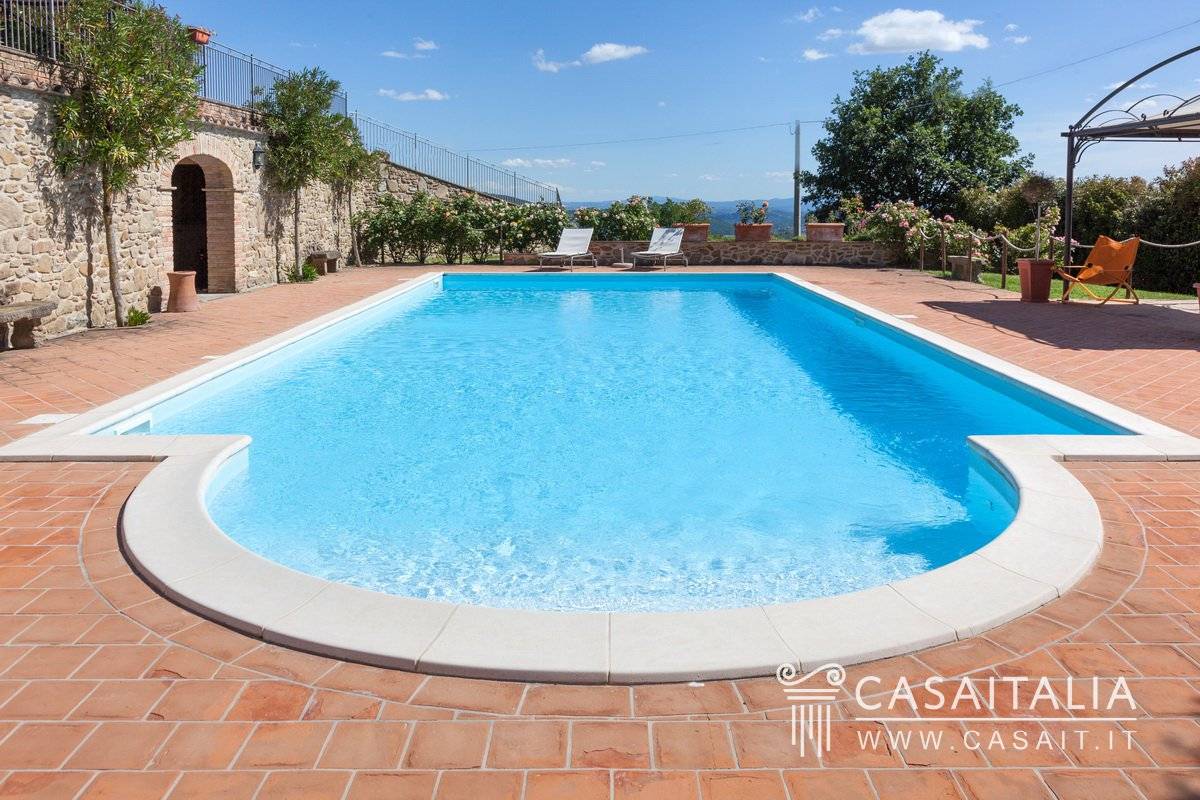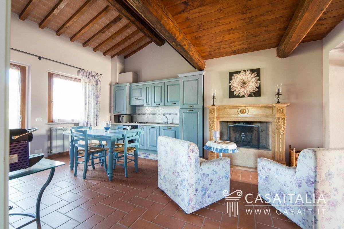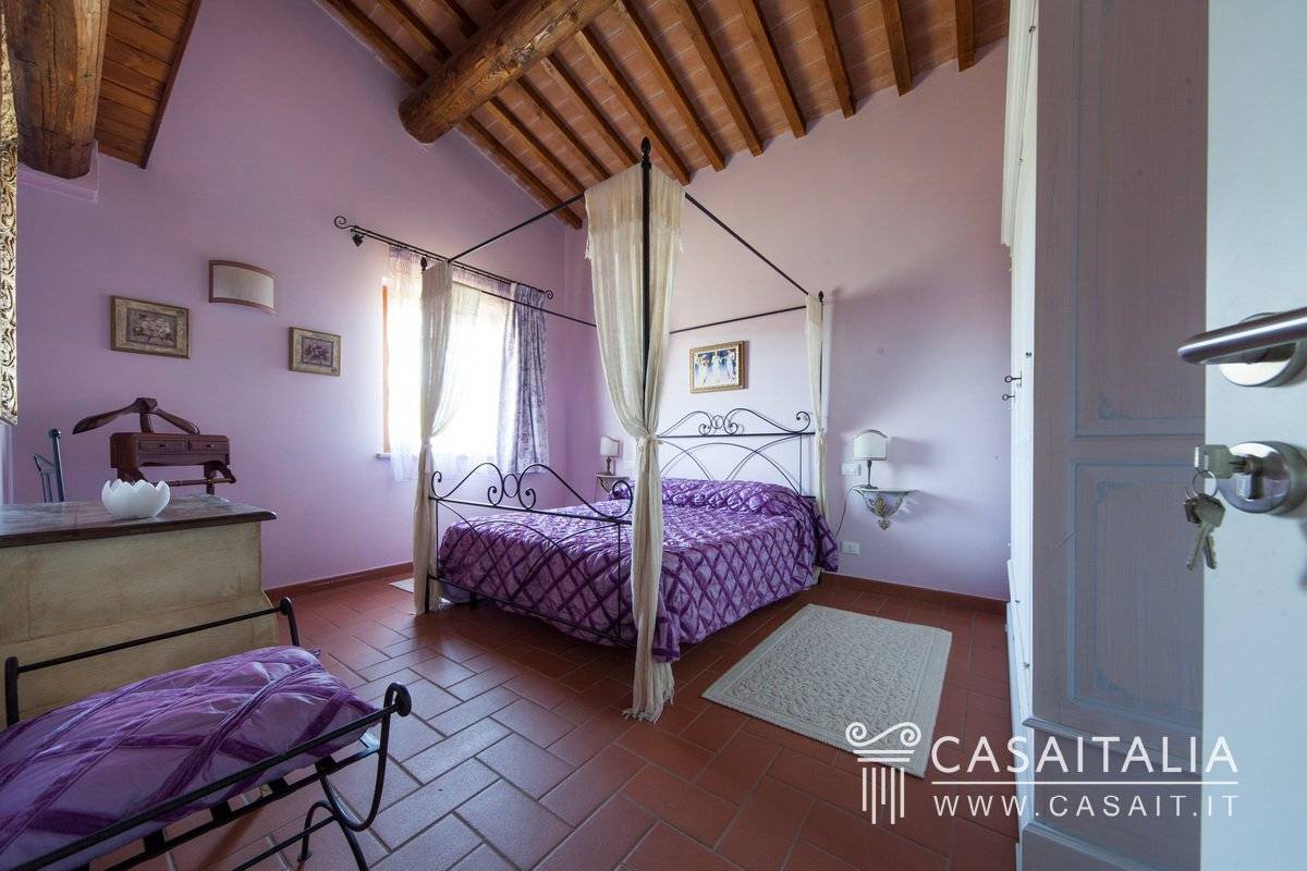 SCOPRILO SUBITOVilla ristrutturata, suddivisa in 7 appartamenti per vacanze, con piscina e 39 ettari di terreno privato. Superficie commerciale totale di 621 mq circa, 8 camere e 10 bagni complessivi, oltre alle zone giorno. Posizione comoda e panoramica.