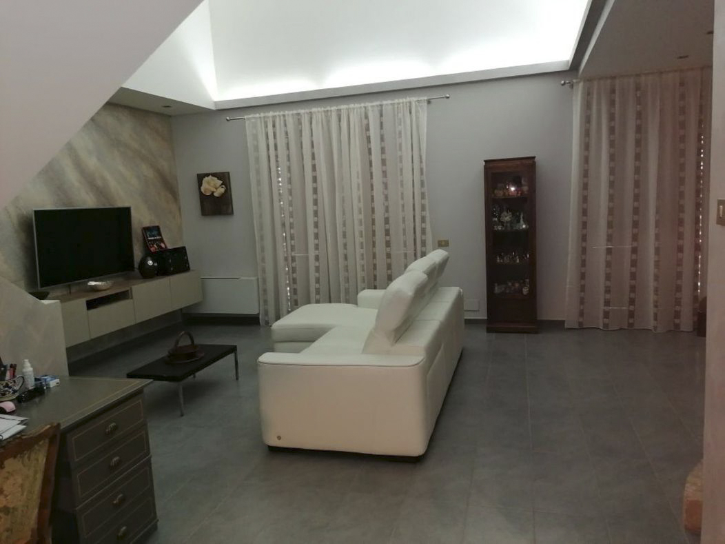 - 1p. appartamento su due livelli di mq. 217 ingresso ampio salotto con uscita sul terrazzo coperto, ampio soggiorno con camino, cucina abitabile, 3 camere, 2 bagni, 2p.,