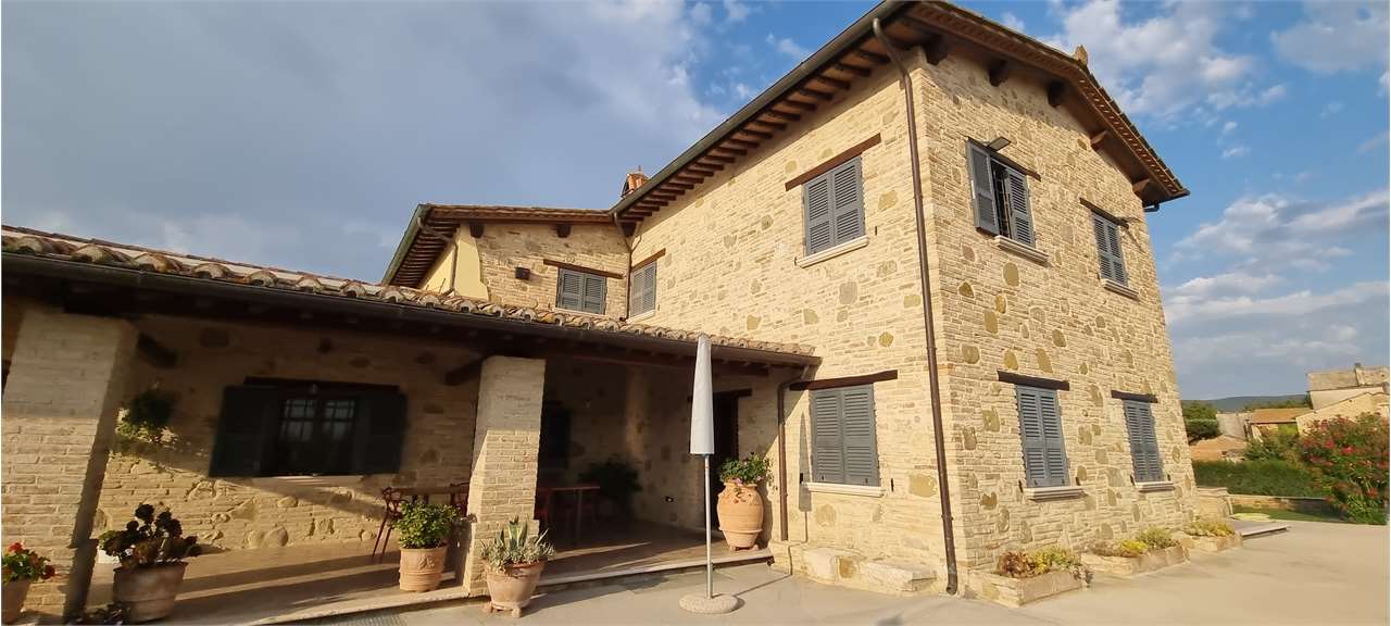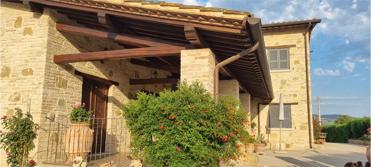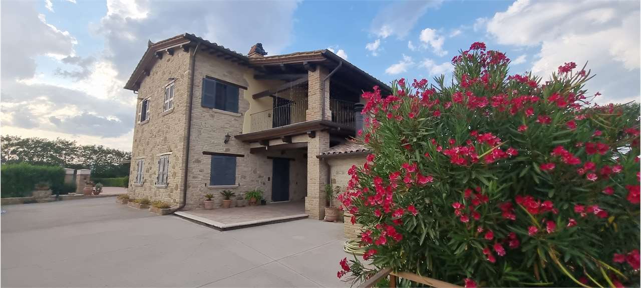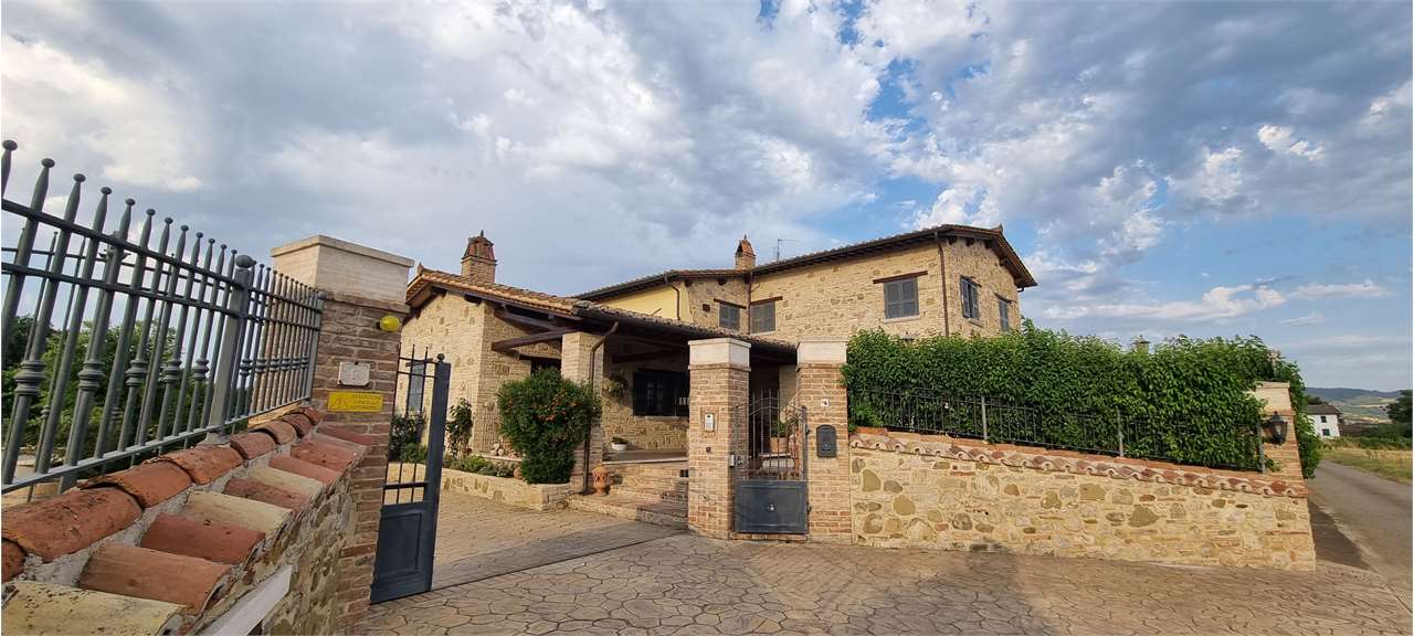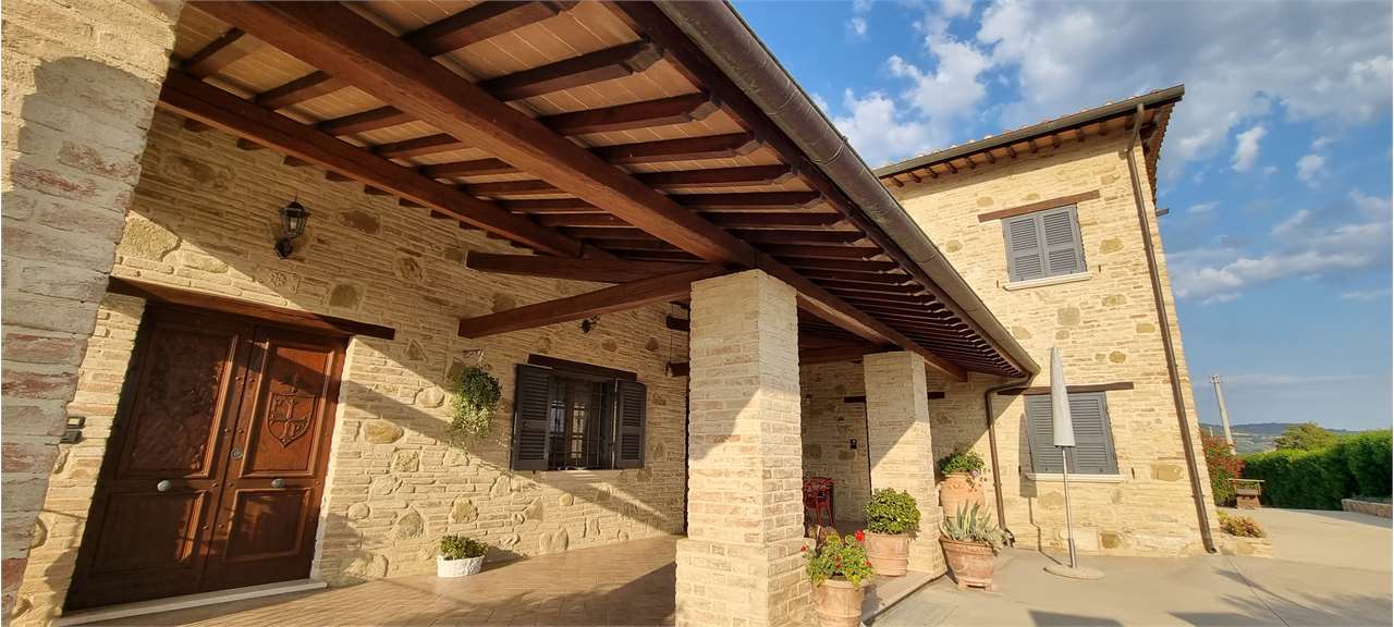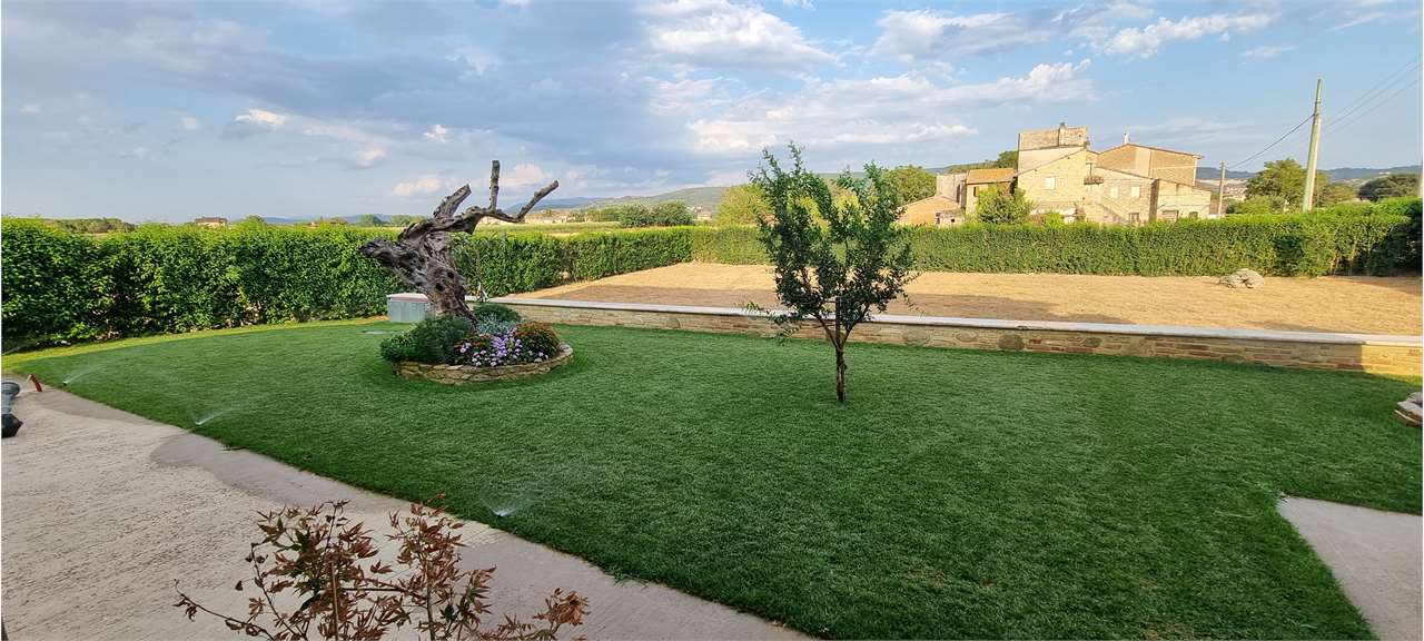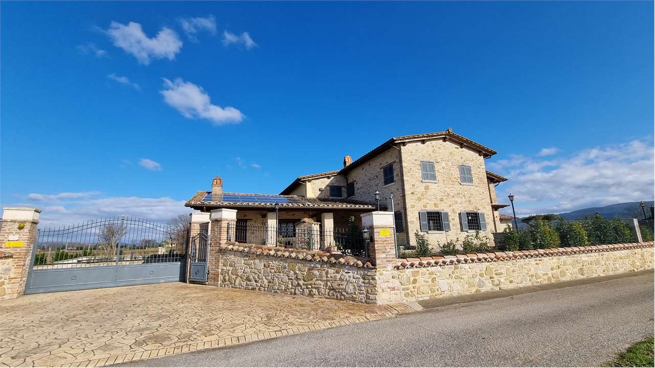 Villa Deruta con 3000mq di Terreno e Impianto Fotovoltaico\nSe stai cercando una residenza di prestigio che unisca l\'eleganza delle finiture moderne alla sostenibilità ambientale, la nostra Villa Deruta è la scelta perfetta per te. Situata in una posizione privilegiata, questa villa di recente costruzione offre non solo un lussuoso ambiente abitativo, ma anche un\'ampia area esterna e un impianto fotovoltaico per un\'esperienza di vita ecologica e confortevole. Per informazioni tel : +39 393 9067105 \nCaratteristiche Principali:\nSuperficie: La villa si estende su una superficie complessiva di circa 390 metri quadrati, suddivisa su tre livelli.\nPiano Terra: Ampio soggiorno con angolo cottura e camino che si affaccia su due portici, di cui uno con area barbecue. Dispone inoltre di 4 bagni e 4 camere da letto, una delle quali con camino e ingresso indipendente, ideale per la realizzazione di un terzo appartamento. \nPiano Primo: Soggiorno spazioso con accesso diretto al portico, cucina grande e due camere da letto con bagno privato, oltre a un bagno per gli ospiti. \nPiano Interrato: Autorimessa di circa 98mq con spazi aggiuntivi per un totale di circa 200mq.\nImpianto Fotovoltaico: Montato sul tetto, un impianto fotovoltaico da 16KW garantisce un\'efficienza energetica ottimale, riducendo i costi e l\'impatto ambientale.\nTerreno: La proprietà include una corte esclusiva di circa 3000mq, caratterizzata da un pittoresco pozzo. Le utenze sono attive e il riscaldamento è a pavimento, assicurando un comfort abitativo superiore.\nAPE in fase di rilascio: Il certificato di prestazione energetica è attualmente in fase di elaborazione.\nQuesta villa rappresenta l\'opportunità ideale per chi desidera vivere immerso nella tranquillità della campagna, senza rinunciare al comfort e alla modernità. Contattaci oggi stesso per prenotare una visita e scoprire tutte le incredibili caratteristiche di questa proprietà unica nel suo genere. Per informazioni tel : +39 393 9067105