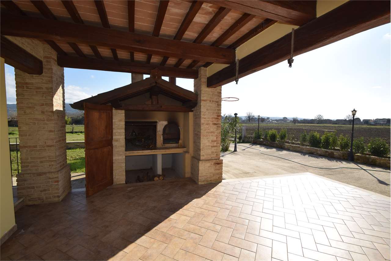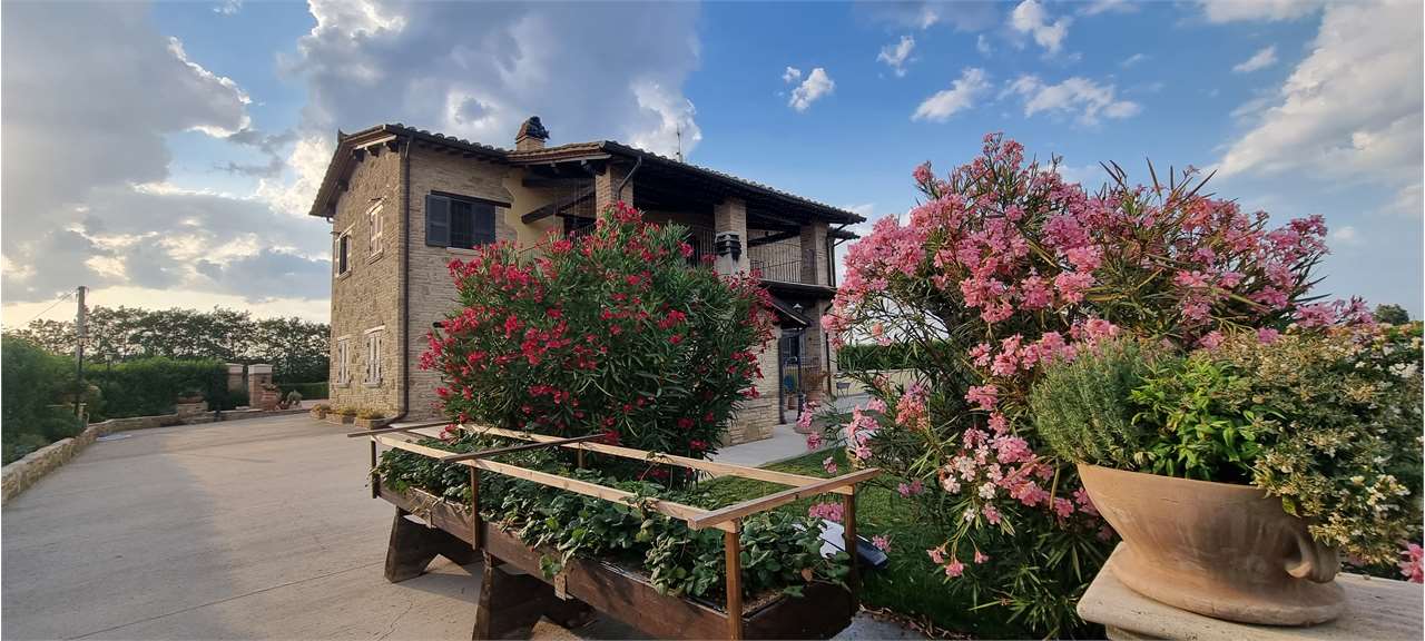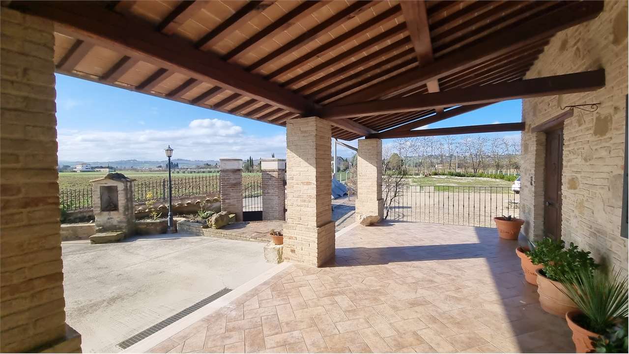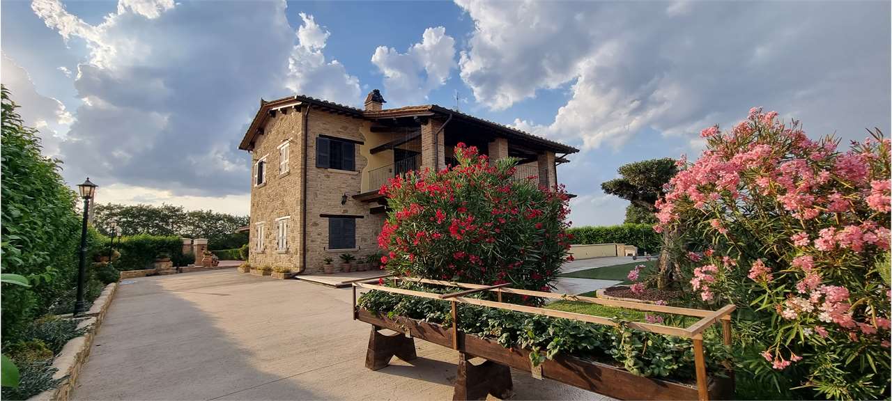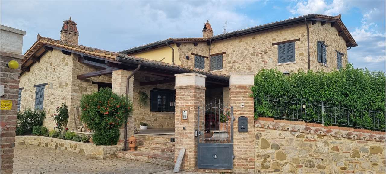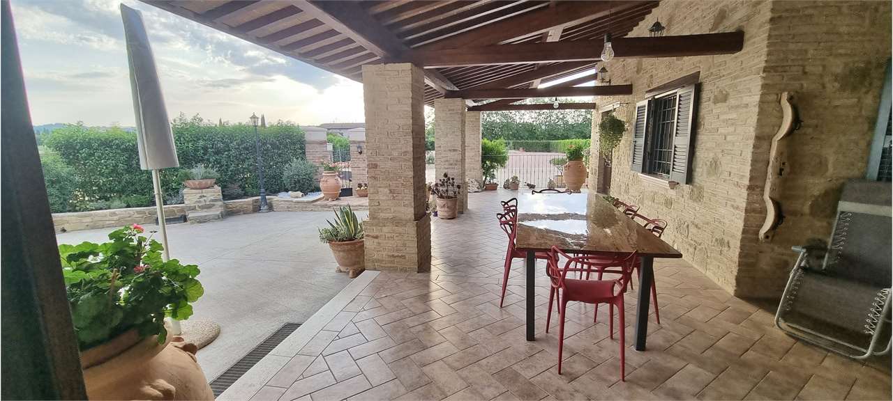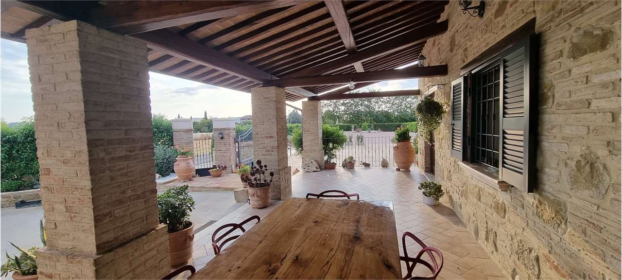 Villa Deruta con 3000mq di Terreno e Impianto Fotovoltaico\nSe stai cercando una residenza di prestigio che unisca l\'eleganza delle finiture moderne alla sostenibilità ambientale, la nostra Villa Deruta è la scelta perfetta per te. Situata in una posizione privilegiata, questa villa di recente costruzione offre non solo un lussuoso ambiente abitativo, ma anche un\'ampia area esterna e un impianto fotovoltaico per un\'esperienza di vita ecologica e confortevole. Per informazioni tel : +39 393 9067105 \nCaratteristiche Principali:\nSuperficie: La villa si estende su una superficie complessiva di circa 390 metri quadrati, suddivisa su tre livelli.\nPiano Terra: Ampio soggiorno con angolo cottura e camino che si affaccia su due portici, di cui uno con area barbecue. Dispone inoltre di 4 bagni e 4 camere da letto, una delle quali con camino e ingresso indipendente, ideale per la realizzazione di un terzo appartamento. \nPiano Primo: Soggiorno spazioso con accesso diretto al portico, cucina grande e due camere da letto con bagno privato, oltre a un bagno per gli ospiti. \nPiano Interrato: Autorimessa di circa 98mq con spazi aggiuntivi per un totale di circa 200mq.\nImpianto Fotovoltaico: Montato sul tetto, un impianto fotovoltaico da 16KW garantisce un\'efficienza energetica ottimale, riducendo i costi e l\'impatto ambientale.\nTerreno: La proprietà include una corte esclusiva di circa 3000mq, caratterizzata da un pittoresco pozzo. Le utenze sono attive e il riscaldamento è a pavimento, assicurando un comfort abitativo superiore.\nAPE in fase di rilascio: Il certificato di prestazione energetica è attualmente in fase di elaborazione.\nQuesta villa rappresenta l\'opportunità ideale per chi desidera vivere immerso nella tranquillità della campagna, senza rinunciare al comfort e alla modernità. Contattaci oggi stesso per prenotare una visita e scoprire tutte le incredibili caratteristiche di questa proprietà unica nel suo genere. Per informazioni tel : +39 393 9067105