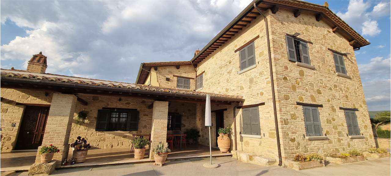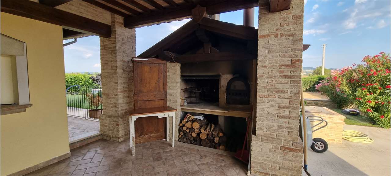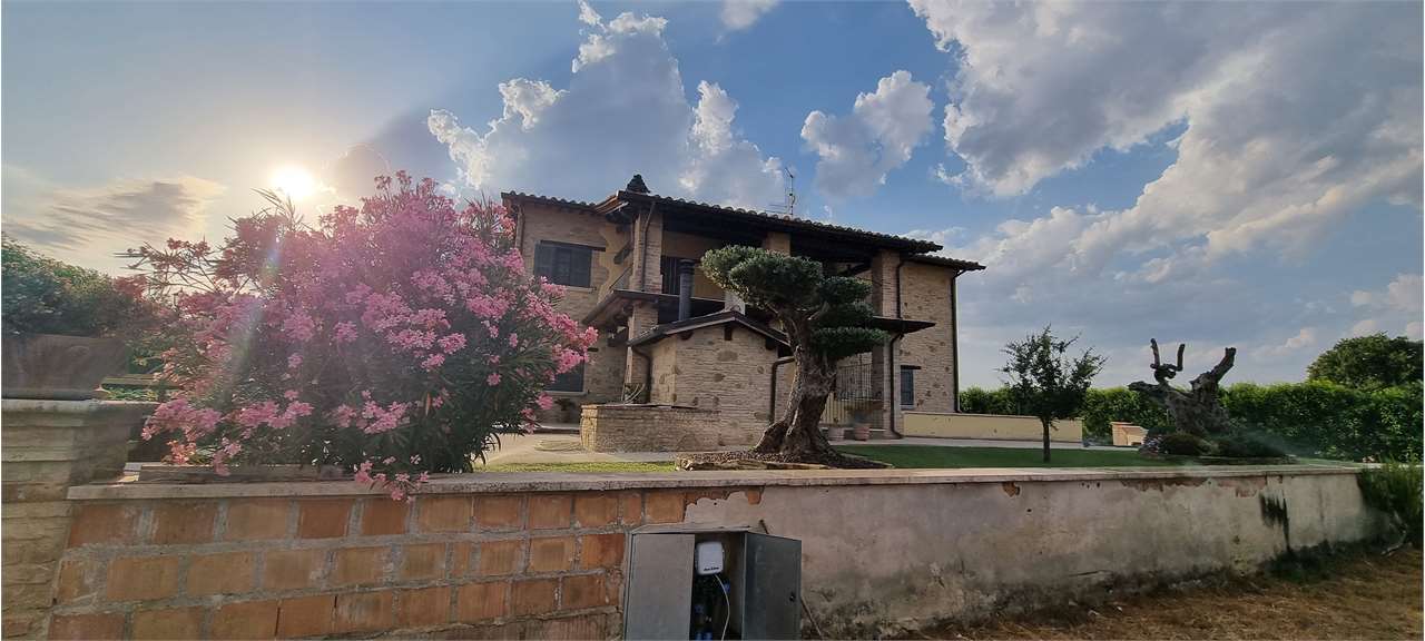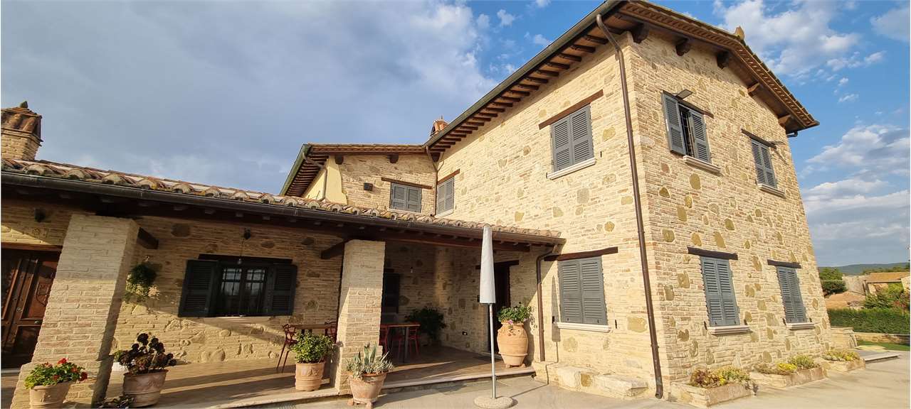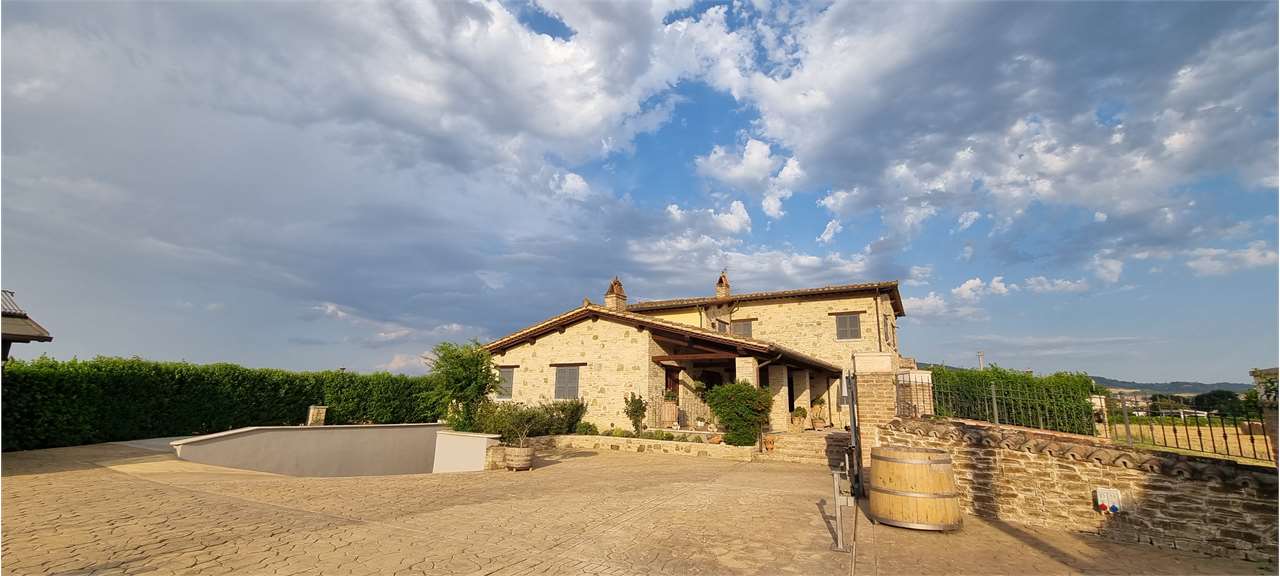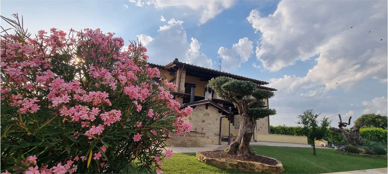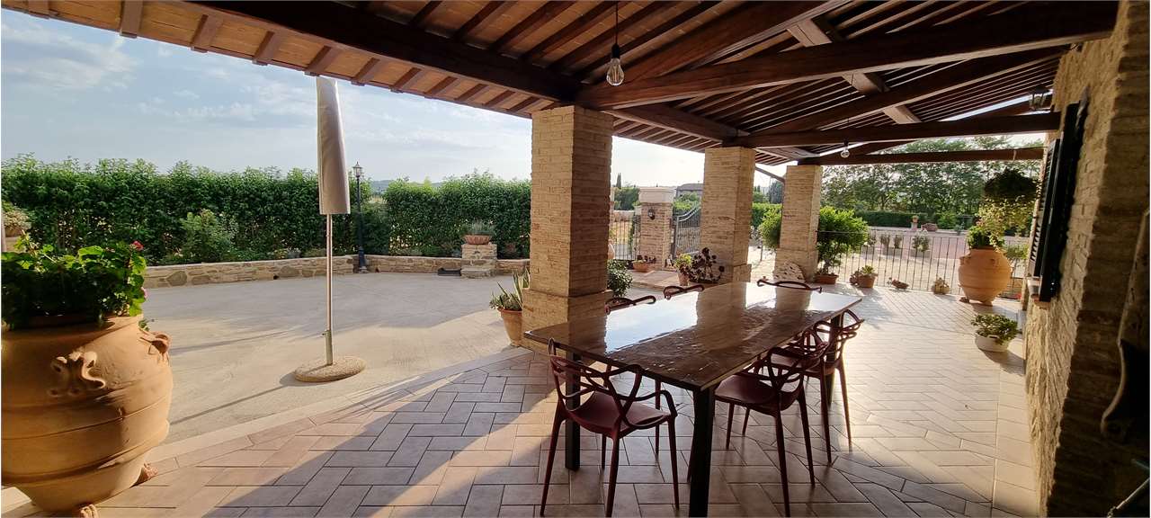 Villa Deruta con 3000mq di Terreno e Impianto Fotovoltaico\nSe stai cercando una residenza di prestigio che unisca l\'eleganza delle finiture moderne alla sostenibilità ambientale, la nostra Villa Deruta è la scelta perfetta per te. Situata in una posizione privilegiata, questa villa di recente costruzione offre non solo un lussuoso ambiente abitativo, ma anche un\'ampia area esterna e un impianto fotovoltaico per un\'esperienza di vita ecologica e confortevole. Per informazioni tel : +39 393 9067105 \nCaratteristiche Principali:\nSuperficie: La villa si estende su una superficie complessiva di circa 390 metri quadrati, suddivisa su tre livelli.\nPiano Terra: Ampio soggiorno con angolo cottura e camino che si affaccia su due portici, di cui uno con area barbecue. Dispone inoltre di 4 bagni e 4 camere da letto, una delle quali con camino e ingresso indipendente, ideale per la realizzazione di un terzo appartamento. \nPiano Primo: Soggiorno spazioso con accesso diretto al portico, cucina grande e due camere da letto con bagno privato, oltre a un bagno per gli ospiti. \nPiano Interrato: Autorimessa di circa 98mq con spazi aggiuntivi per un totale di circa 200mq.\nImpianto Fotovoltaico: Montato sul tetto, un impianto fotovoltaico da 16KW garantisce un\'efficienza energetica ottimale, riducendo i costi e l\'impatto ambientale.\nTerreno: La proprietà include una corte esclusiva di circa 3000mq, caratterizzata da un pittoresco pozzo. Le utenze sono attive e il riscaldamento è a pavimento, assicurando un comfort abitativo superiore.\nAPE in fase di rilascio: Il certificato di prestazione energetica è attualmente in fase di elaborazione.\nQuesta villa rappresenta l\'opportunità ideale per chi desidera vivere immerso nella tranquillità della campagna, senza rinunciare al comfort e alla modernità. Contattaci oggi stesso per prenotare una visita e scoprire tutte le incredibili caratteristiche di questa proprietà unica nel suo genere. Per informazioni tel : +39 393 9067105