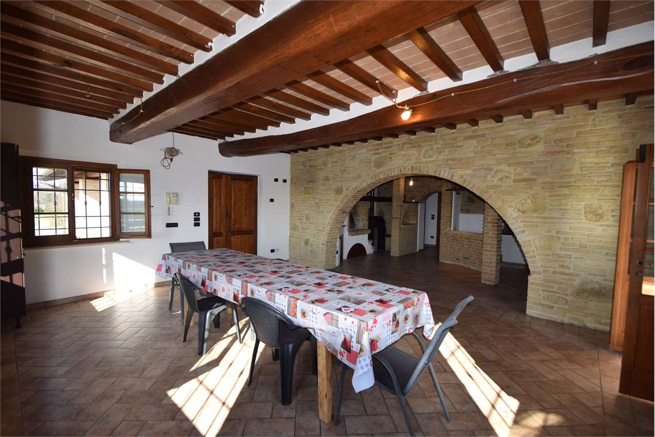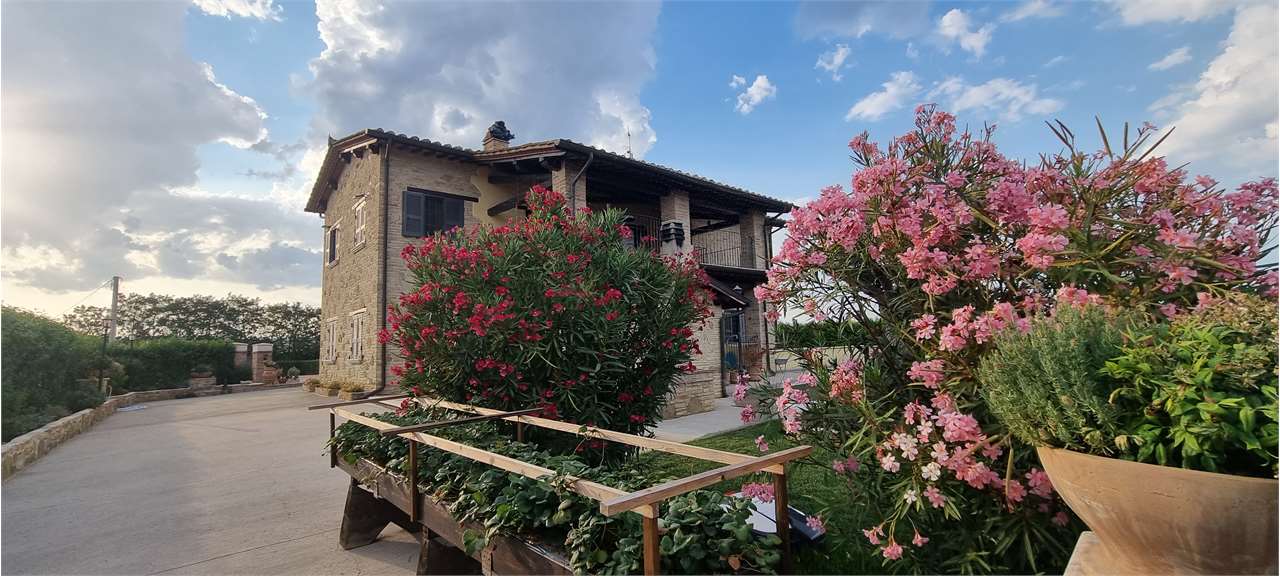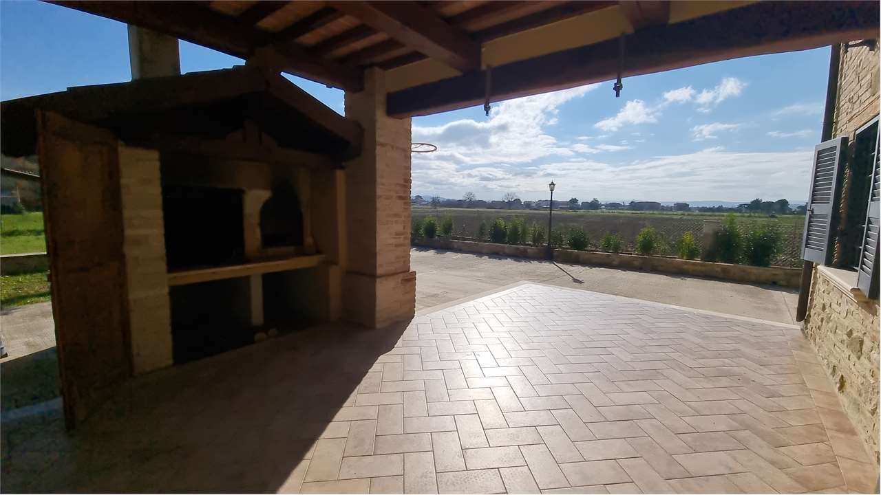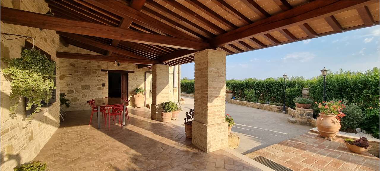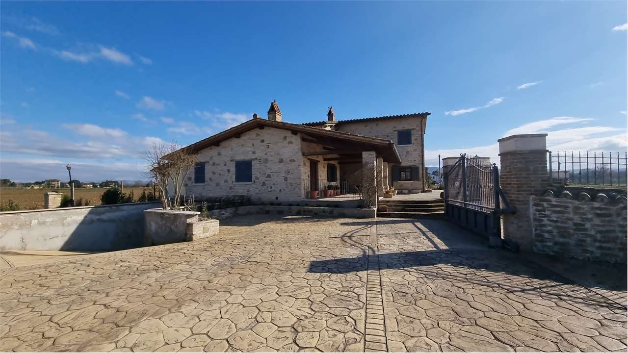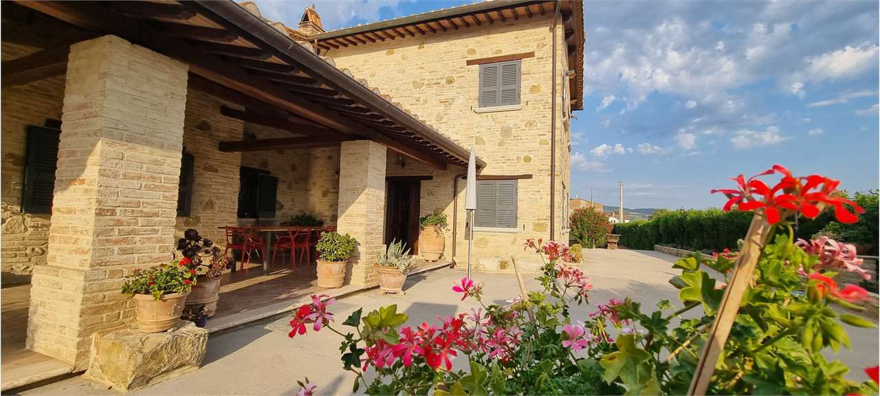Villa Deruta con 3000mq di Terreno e Impianto Fotovoltaico\nSe stai cercando una residenza di prestigio che unisca l\'eleganza delle finiture moderne alla sostenibilità ambientale, la nostra Villa Deruta è la scelta perfetta per te. Situata in una posizione privilegiata, questa villa di recente costruzione offre non solo un lussuoso ambiente abitativo, ma anche un\'ampia area esterna e un impianto fotovoltaico per un\'esperienza di vita ecologica e confortevole. Per informazioni tel : +39 393 9067105 \nCaratteristiche Principali:\nSuperficie: La villa si estende su una superficie complessiva di circa 390 metri quadrati, suddivisa su tre livelli.\nPiano Terra: Ampio soggiorno con angolo cottura e camino che si affaccia su due portici, di cui uno con area barbecue. Dispone inoltre di 4 bagni e 4 camere da letto, una delle quali con camino e ingresso indipendente, ideale per la realizzazione di un terzo appartamento. \nPiano Primo: Soggiorno spazioso con accesso diretto al portico, cucina grande e due camere da letto con bagno privato, oltre a un bagno per gli ospiti. \nPiano Interrato: Autorimessa di circa 98mq con spazi aggiuntivi per un totale di circa 200mq.\nImpianto Fotovoltaico: Montato sul tetto, un impianto fotovoltaico da 16KW garantisce un\'efficienza energetica ottimale, riducendo i costi e l\'impatto ambientale.\nTerreno: La proprietà include una corte esclusiva di circa 3000mq, caratterizzata da un pittoresco pozzo. Le utenze sono attive e il riscaldamento è a pavimento, assicurando un comfort abitativo superiore.\nAPE in fase di rilascio: Il certificato di prestazione energetica è attualmente in fase di elaborazione.\nQuesta villa rappresenta l\'opportunità ideale per chi desidera vivere immerso nella tranquillità della campagna, senza rinunciare al comfort e alla modernità. Contattaci oggi stesso per prenotare una visita e scoprire tutte le incredibili caratteristiche di questa proprietà unica nel suo genere. Per informazioni tel : +39 393 9067105