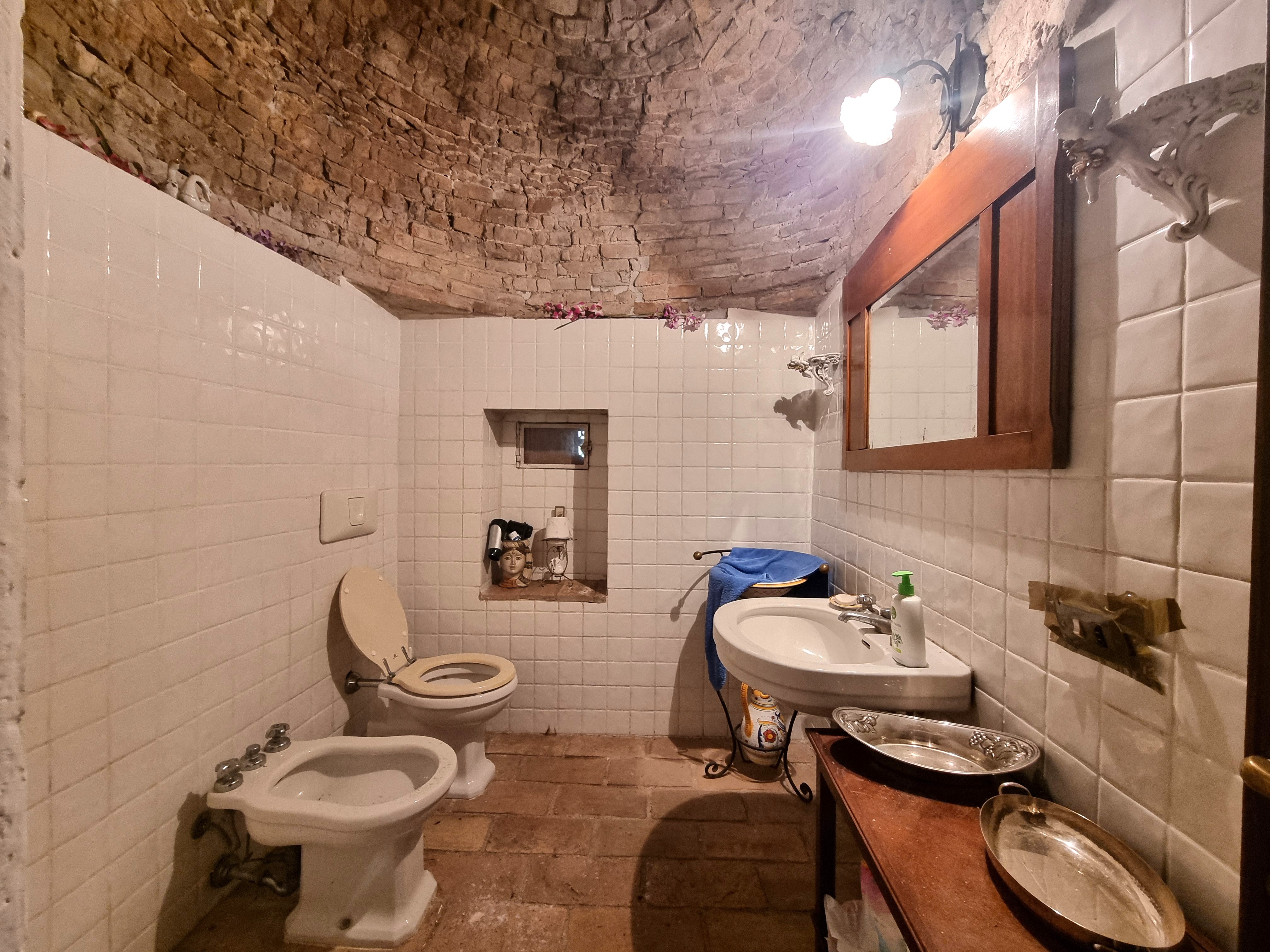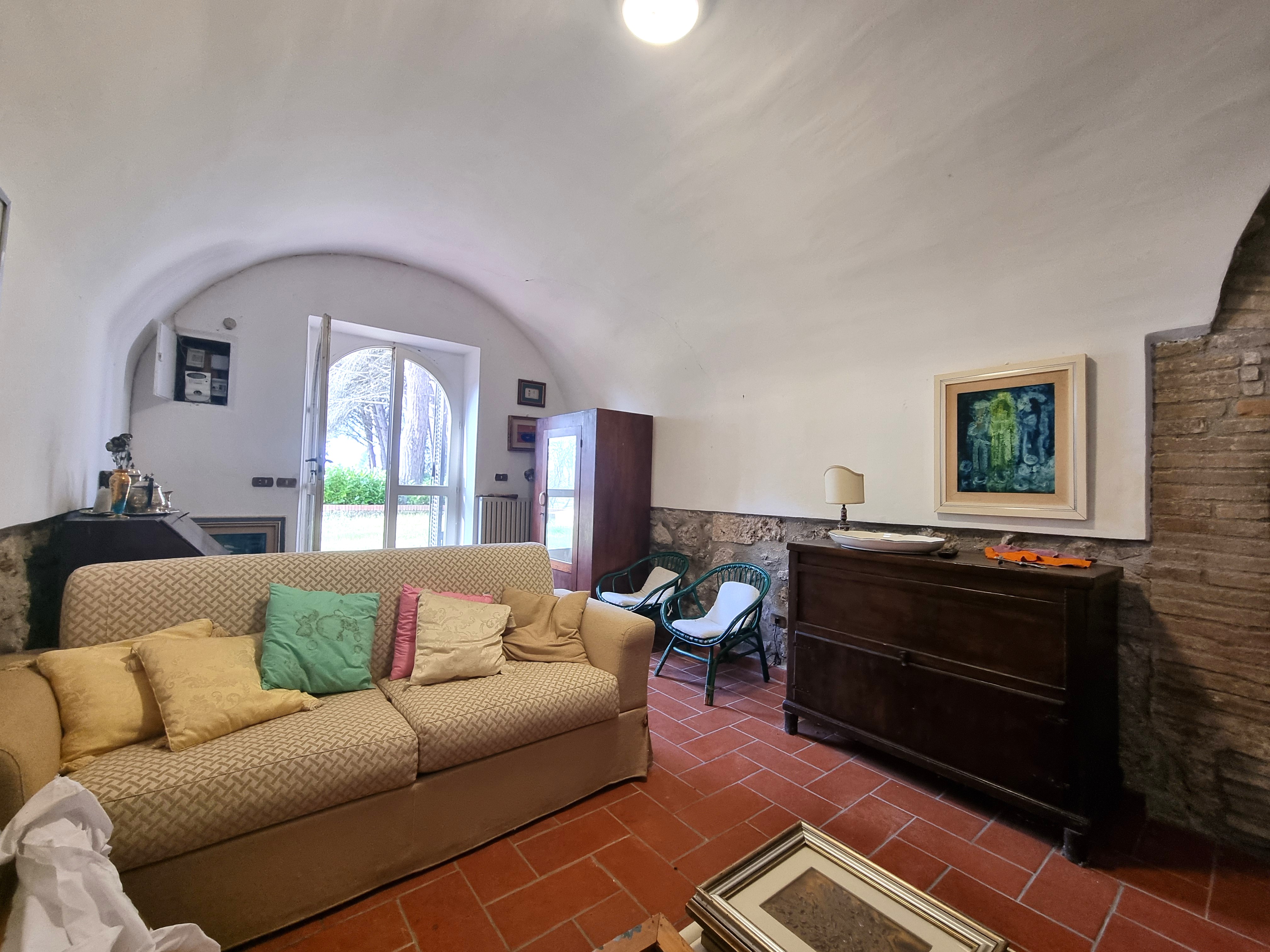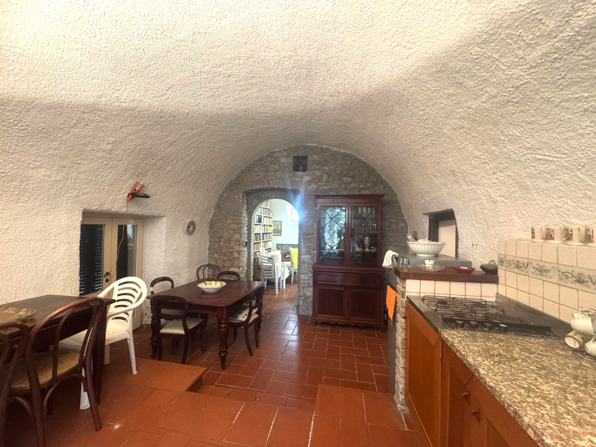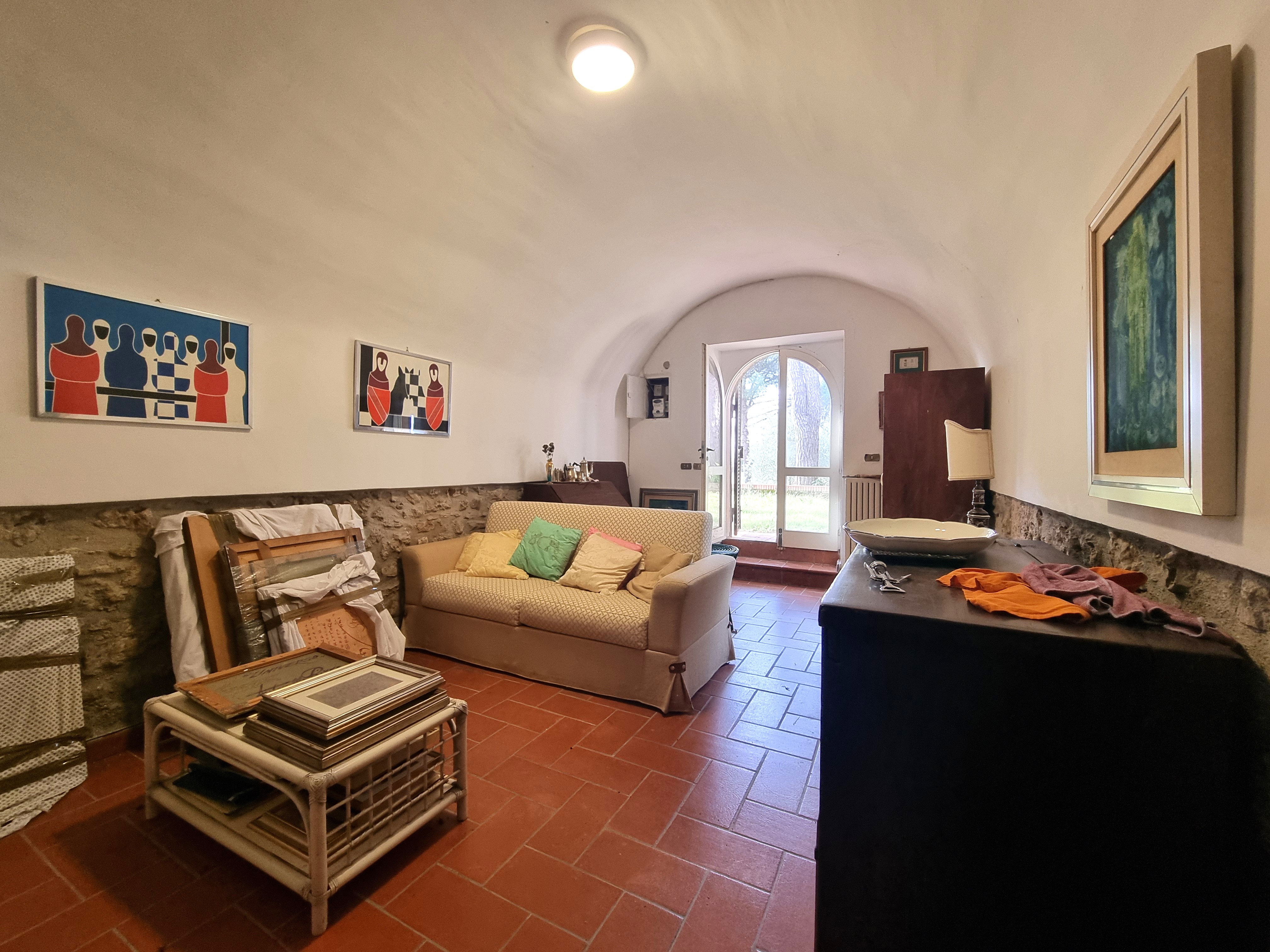 con una metratura di 120 mq, la villa dispone di un piano terra molto carattteristico, con pareti in pietra e soffitti a volte, dove troviamo una sala e una cucina con camino, entrambe con accesso diretto al giardino.Troviamo inoltre un bagno caratteristico. E' possibile comunque sfruttare lo spazio per realizzare una taverna o delle ulteriori camere.