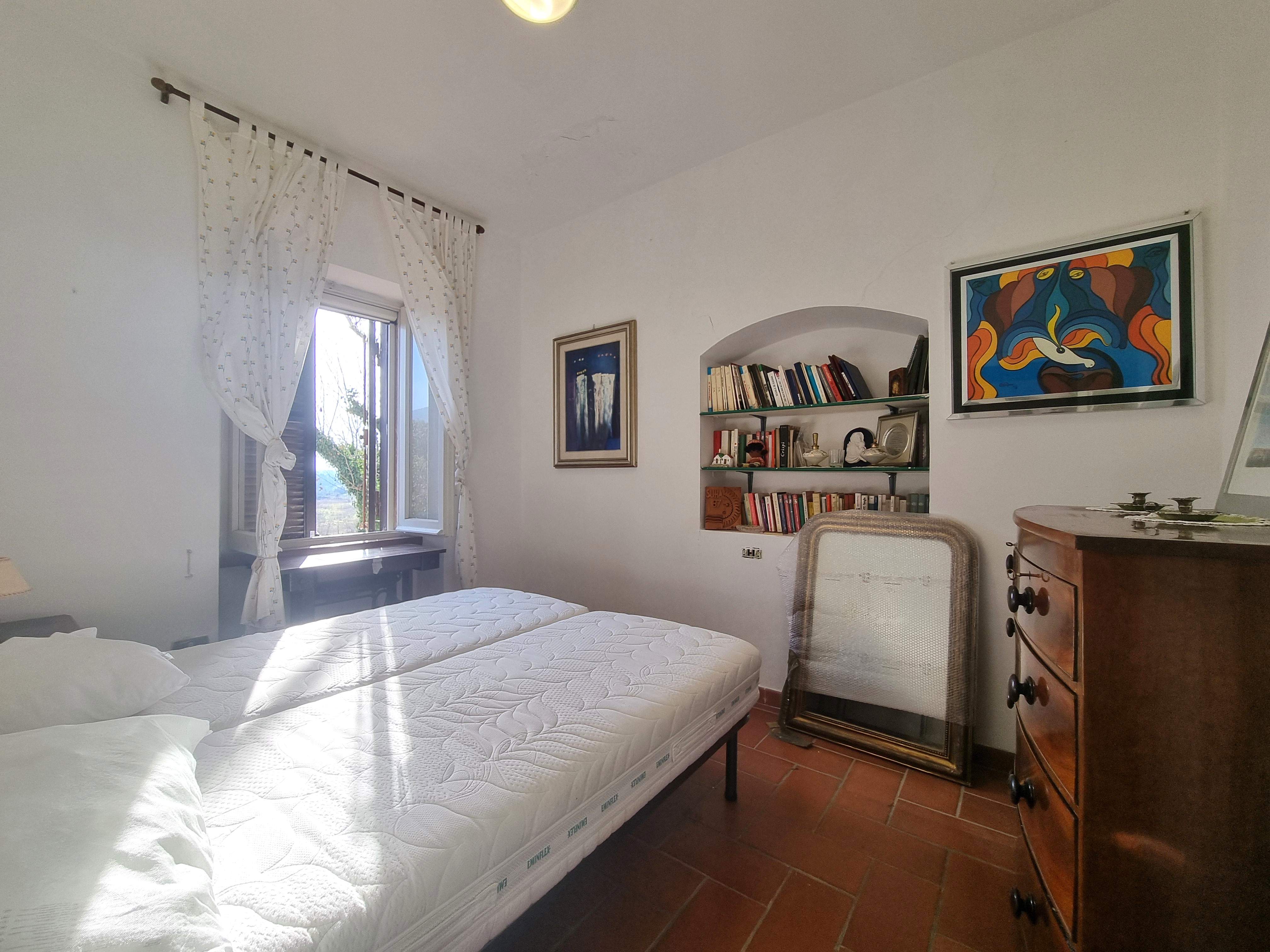 Tramite scala esterna si accede al secondo piano, composto da soggiorno con angolo cottura e camino, un bagno finestrato con vasca e due camere matrimoniali con vista panoramica.