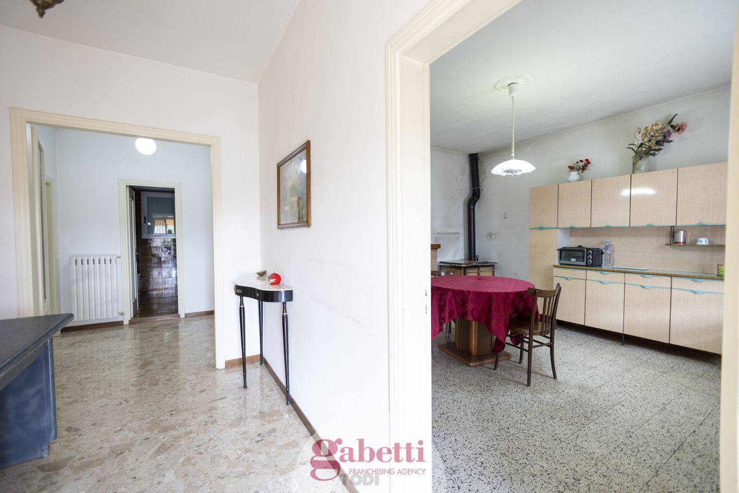 SCOPRILO SUBITOInteressante proprietà sita a metà strada tra Todi e Marsciano, in ottima posizione per tutti i servizi. Si tratta di una abitazione indipendente composta da due distinti appartamenti. Ogni nucleo ab itativo è dotato di ingresso indipendente; internamente, sono entrambi composti da un soggiorno, cucina abitabile, due camere da letto e bagno. L'appartamento al primo piano è dotato di una comoda soffitta, di 3 balconi e di un ampio terrazzo di oltre 60 mq al quale ci si accede direttamente dal soggiorno, Le due abitazioni presentano due stili ben distinti: in una, quella più classicheggiante, predomina una pavimentazione in monocottura, utilizzata sia nella zona giorno, sia nella zona notte; nell’altra, che presenta uno stile più tendente alle decadi ‘60-’70, troviamo graniglia e piastrelle equamente distribuiti, in entrambe le abitazioni gli infissi sono in ottimo stato cosi come anche le persiane esterne. Fanno parte della proprietà magazzini e locali di sgombro ed annessi che si trovano sul retro. L’offerta comprende inoltre una corte pavimentata terreno di pertinenza da poter sfruttare sia come giardino che come orto. Inoltre il terreno è in parte edificabile con la possibilità di costruire un altra abitazione di circa 220 mq. Ottimo investimento, considerata la posizione non distante dalla E45, che consente di raggiungere Perugia in 30 minuti e Roma in circa due ore; l’attuale assetto la rende particolarmente interessante per famiglie numerose o per 2 nuclei familiari che voglio vivere vicini ma con spazi ben definiti, un altra alternativa potrebbe essere un acquisto come prima abitazione e possibilità di affitto del secondo nucleo.