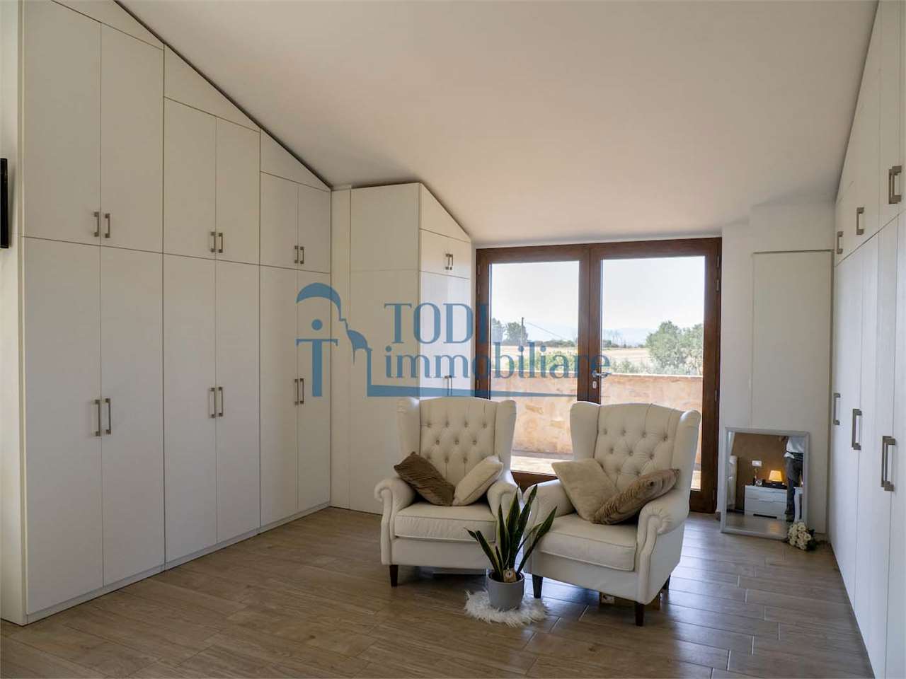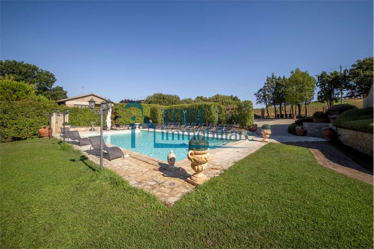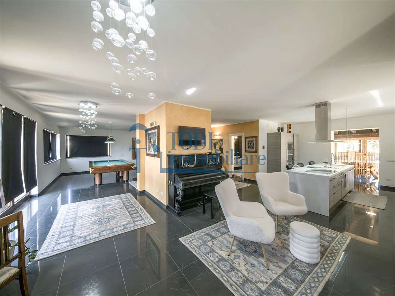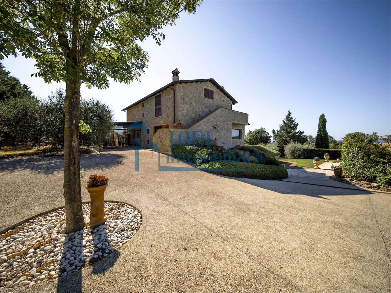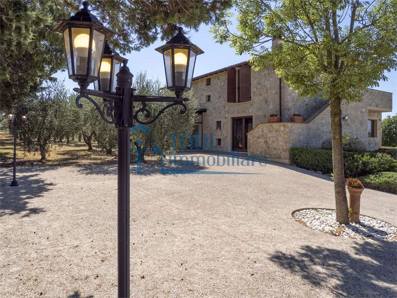 Nella pittoresca campagna di Casteltodino, a pochi chilometri da San Gemini e Terni, proponiamo in vendita una straordinaria proprietà che unisce comfort e fascino rurale. La posizione strategica, a ridosso della superstrada E-45, garantisce collegamenti agevoli con le maggiori città umbre e le mete turistiche della regione.\n\nLa proprietà include una villa indipendente di circa 370 m², caratterizzata da pareti esterne rivestite interamente in pietra locale, che richiamano l’autenticità dei tradizionali casali umbri. Il tutto è incorniciato da un terreno esclusivo e completamente recintato di 2.800 m², arricchito da una piscina, una tettoia per il ricovero delle auto e un uliveto con 70 piante attualmente in produzione.\n\nLa villa si sviluppa su tre livelli, ciascuno con funzioni ben definite: il piano terra ospita la zona giorno, il primo piano è dedicato alla zona notte, mentre il seminterrato accoglie una taverna, un’area SPA e un ampio garage. I piani sono comodamente collegati da un ascensore interno, una soluzione che aggiunge praticità e valorizza ulteriormente la proprietà.\n\nLa superficie abitativa è di circa 245 m², cui si aggiunge un terrazzo di 24 m², ideale per gustare colazioni o pranzi nella tranquillità delle colline circostanti. Al piano terra spiccano una luminosa sala con pareti completamente vetrate, una moderna cucina a induzione con vista panoramica, un doppio salone impreziosito da un elegante camino in marmo e zone relax dedicate alla lettura o alla TV, oltre a un bagno pratico e funzionale.\n\nAl primo piano troviamo tre ampie camere matrimoniali (di 35, 22 e 16 m²), tutte con bagno privato, oltre a un disimpegno che conduce all’ascensore. La camera padronale, particolarmente spaziosa, si distingue per la presenza di una cabina armadio e di un grazioso terrazzino con vista mozzafiato.\n\nIl piano seminterrato rappresenta una vera aggiunta di valore alla proprietà. Qui si trovano una grande taverna con angolo cucina, camino, forno a legna e patio esterno perfetto per aperitivi; un’area SPA dotata di vasca idromassaggio per quattro persone, sauna/bagno turco e bagno completo; infine, un doppio garage con zona lavanderia.\n\nIl terreno pertinenziale è organizzato in diverse aree: un giardino curato nei minimi dettagli con impianto di irrigazione automatica e robot per il taglio dell’erba; una zona piscina; uno spazio dedicato all’uliveto e infine un piazzale con tettoia per due auto. L’uliveto offre un’eccellente produzione stagionale, generando circa 5 quintali di olive nell’ultima stagione.\n\nLa piscina in muratura misura 8x16 metri ed è dotata di acqua salata, bordo pavimentato e lettini per garantire massimo relax. Gli spazi esterni sono stati progettati per offrire comfort ottimale e grande vivibilità.\n\nLa proprietà è arricchita da dettagli tecnici di alta qualità: infissi esterni con vetri antisfondamento e zanzariere al piano terra; persiane in legno al primo piano; riscaldamento a pavimento alimentato sia a GPL che a pellet; impianto fotovoltaico da 6 kW con accumulo da 10 kW e pannelli solari per l’acqua calda; pozzo con acqua sorgiva; cancelli automatici carrabili e pedonali in ferro battuto; porta basculante del garage motorizzata; colonna per lavatrice e asciugatrice. Completano la villa i pavimenti in marmo al piano terra e in gres porcellanato negli altri ambienti, oltre alla connessione internet.\n\nAcquistare questa straordinaria proprietà significa regalarsi un raffinato stile di vita nell’autentica campagna umbra: un luogo dove il giorno inizia con il canto degli uccelli e si conclude con tramonti spettacolari. Contattaci e trasforma il tuo sogno in realtà!