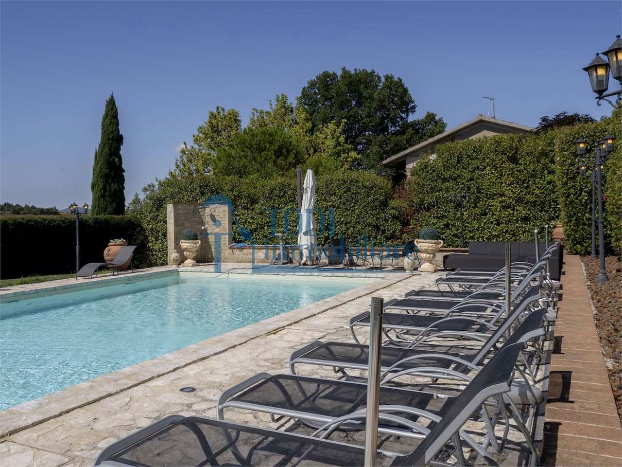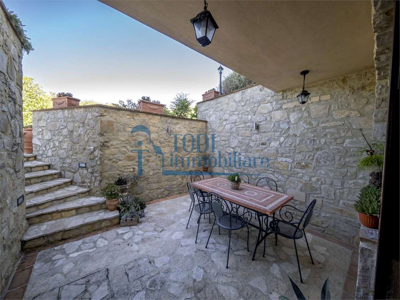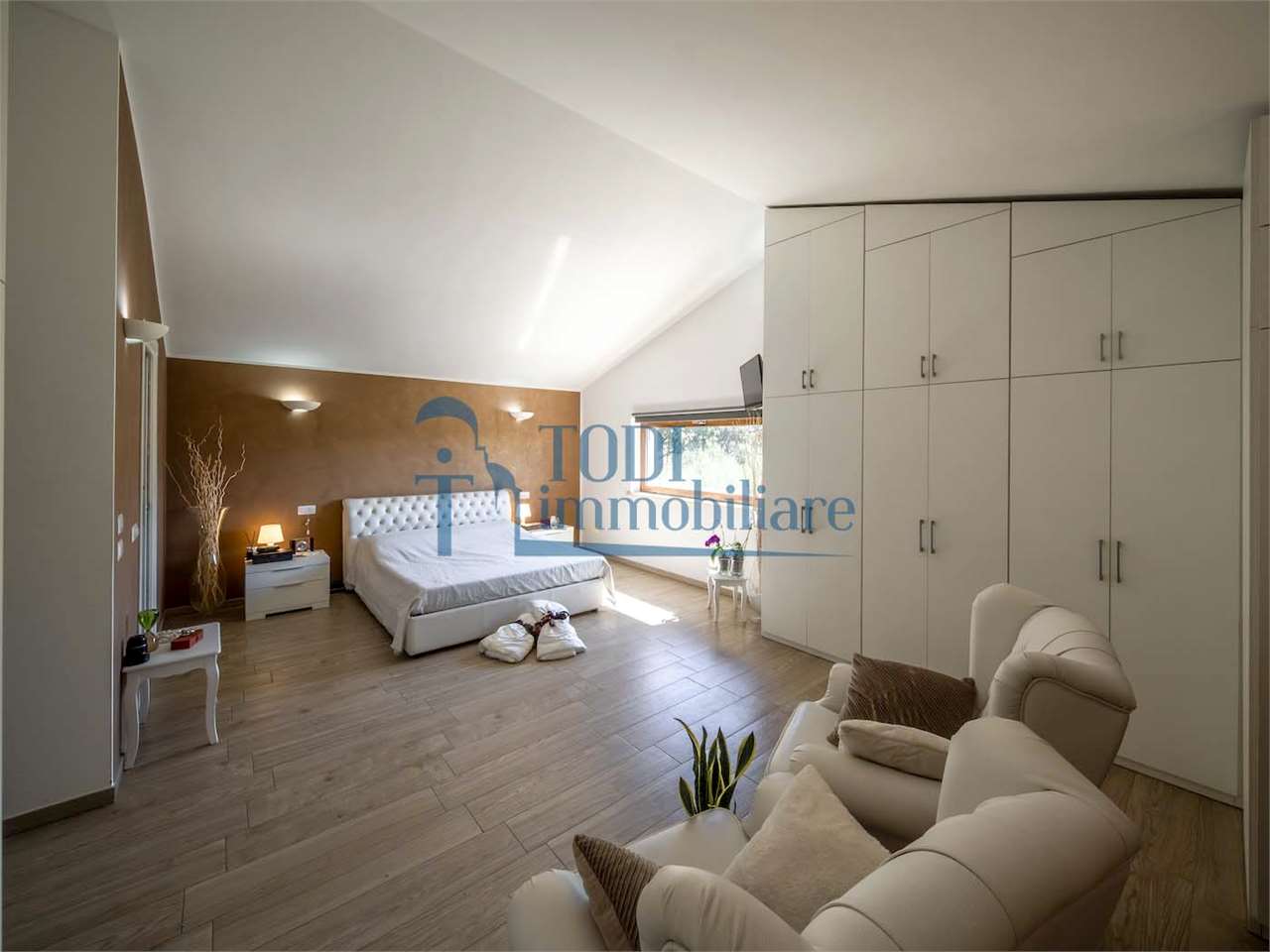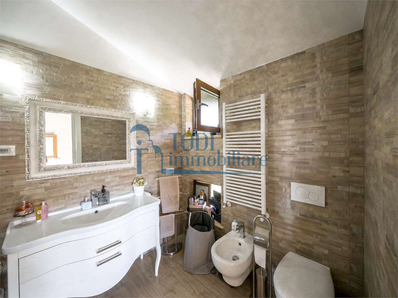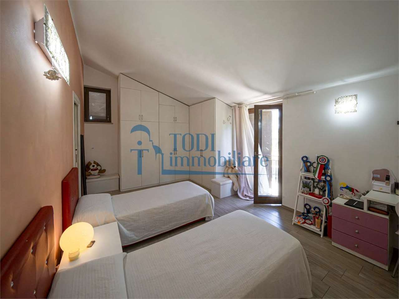 Nella pittoresca campagna di Casteltodino, a pochi chilometri da San Gemini e Terni, proponiamo in vendita una straordinaria proprietà che unisce comfort e fascino rurale. La posizione strategica, a ridosso della superstrada E-45, garantisce collegamenti agevoli con le maggiori città umbre e le mete turistiche della regione.\n\nLa proprietà include una villa indipendente di circa 370 m², caratterizzata da pareti esterne rivestite interamente in pietra locale, che richiamano l’autenticità dei tradizionali casali umbri. Il tutto è incorniciato da un terreno esclusivo e completamente recintato di 2.800 m², arricchito da una piscina, una tettoia per il ricovero delle auto e un uliveto con 70 piante attualmente in produzione.\n\nLa villa si sviluppa su tre livelli, ciascuno con funzioni ben definite: il piano terra ospita la zona giorno, il primo piano è dedicato alla zona notte, mentre il seminterrato accoglie una taverna, un’area SPA e un ampio garage. I piani sono comodamente collegati da un ascensore interno, una soluzione che aggiunge praticità e valorizza ulteriormente la proprietà.\n\nLa superficie abitativa è di circa 245 m², cui si aggiunge un terrazzo di 24 m², ideale per gustare colazioni o pranzi nella tranquillità delle colline circostanti. Al piano terra spiccano una luminosa sala con pareti completamente vetrate, una moderna cucina a induzione con vista panoramica, un doppio salone impreziosito da un elegante camino in marmo e zone relax dedicate alla lettura o alla TV, oltre a un bagno pratico e funzionale.\n\nAl primo piano troviamo tre ampie camere matrimoniali (di 35, 22 e 16 m²), tutte con bagno privato, oltre a un disimpegno che conduce all’ascensore. La camera padronale, particolarmente spaziosa, si distingue per la presenza di una cabina armadio e di un grazioso terrazzino con vista mozzafiato.\n\nIl piano seminterrato rappresenta una vera aggiunta di valore alla proprietà. Qui si trovano una grande taverna con angolo cucina, camino, forno a legna e patio esterno perfetto per aperitivi; un’area SPA dotata di vasca idromassaggio per quattro persone, sauna/bagno turco e bagno completo; infine, un doppio garage con zona lavanderia.\n\nIl terreno pertinenziale è organizzato in diverse aree: un giardino curato nei minimi dettagli con impianto di irrigazione automatica e robot per il taglio dell’erba; una zona piscina; uno spazio dedicato all’uliveto e infine un piazzale con tettoia per due auto. L’uliveto offre un’eccellente produzione stagionale, generando circa 5 quintali di olive nell’ultima stagione.\n\nLa piscina in muratura misura 8x16 metri ed è dotata di acqua salata, bordo pavimentato e lettini per garantire massimo relax. Gli spazi esterni sono stati progettati per offrire comfort ottimale e grande vivibilità.\n\nLa proprietà è arricchita da dettagli tecnici di alta qualità: infissi esterni con vetri antisfondamento e zanzariere al piano terra; persiane in legno al primo piano; riscaldamento a pavimento alimentato sia a GPL che a pellet; impianto fotovoltaico da 6 kW con accumulo da 10 kW e pannelli solari per l’acqua calda; pozzo con acqua sorgiva; cancelli automatici carrabili e pedonali in ferro battuto; porta basculante del garage motorizzata; colonna per lavatrice e asciugatrice. Completano la villa i pavimenti in marmo al piano terra e in gres porcellanato negli altri ambienti, oltre alla connessione internet.\n\nAcquistare questa straordinaria proprietà significa regalarsi un raffinato stile di vita nell’autentica campagna umbra: un luogo dove il giorno inizia con il canto degli uccelli e si conclude con tramonti spettacolari. Contattaci e trasforma il tuo sogno in realtà!