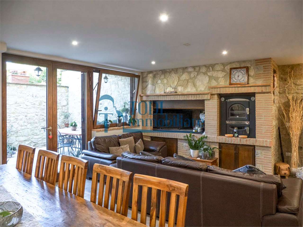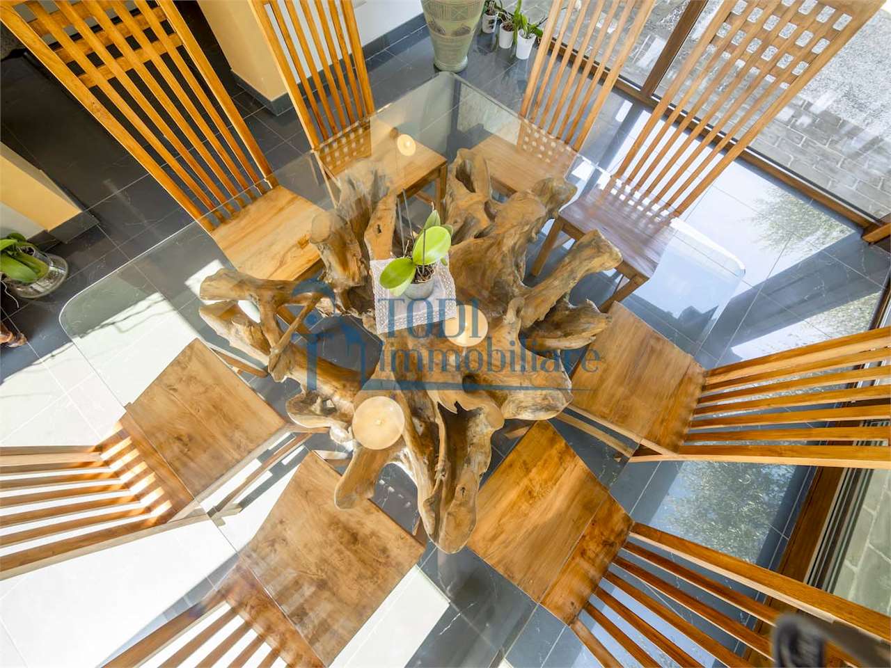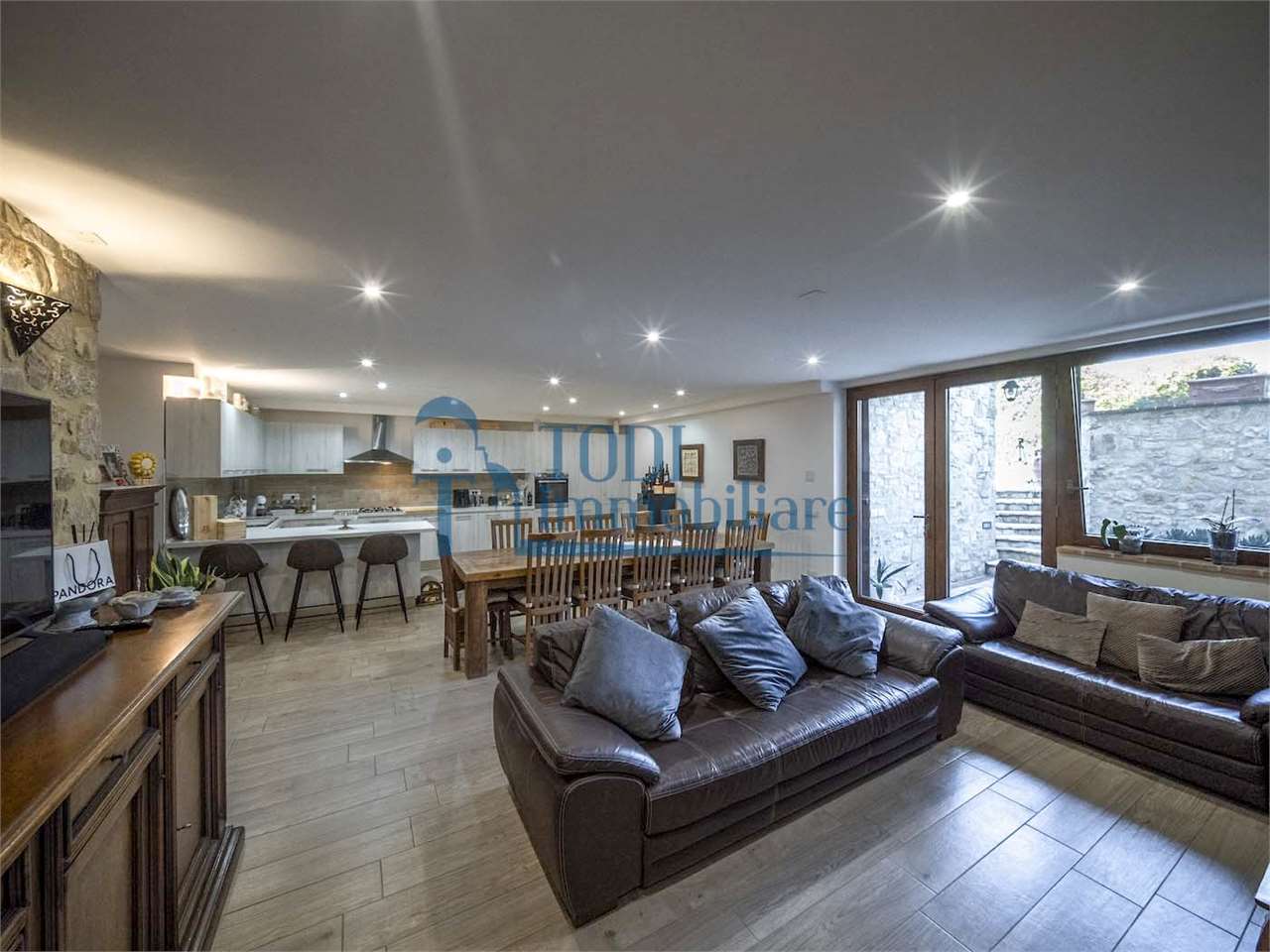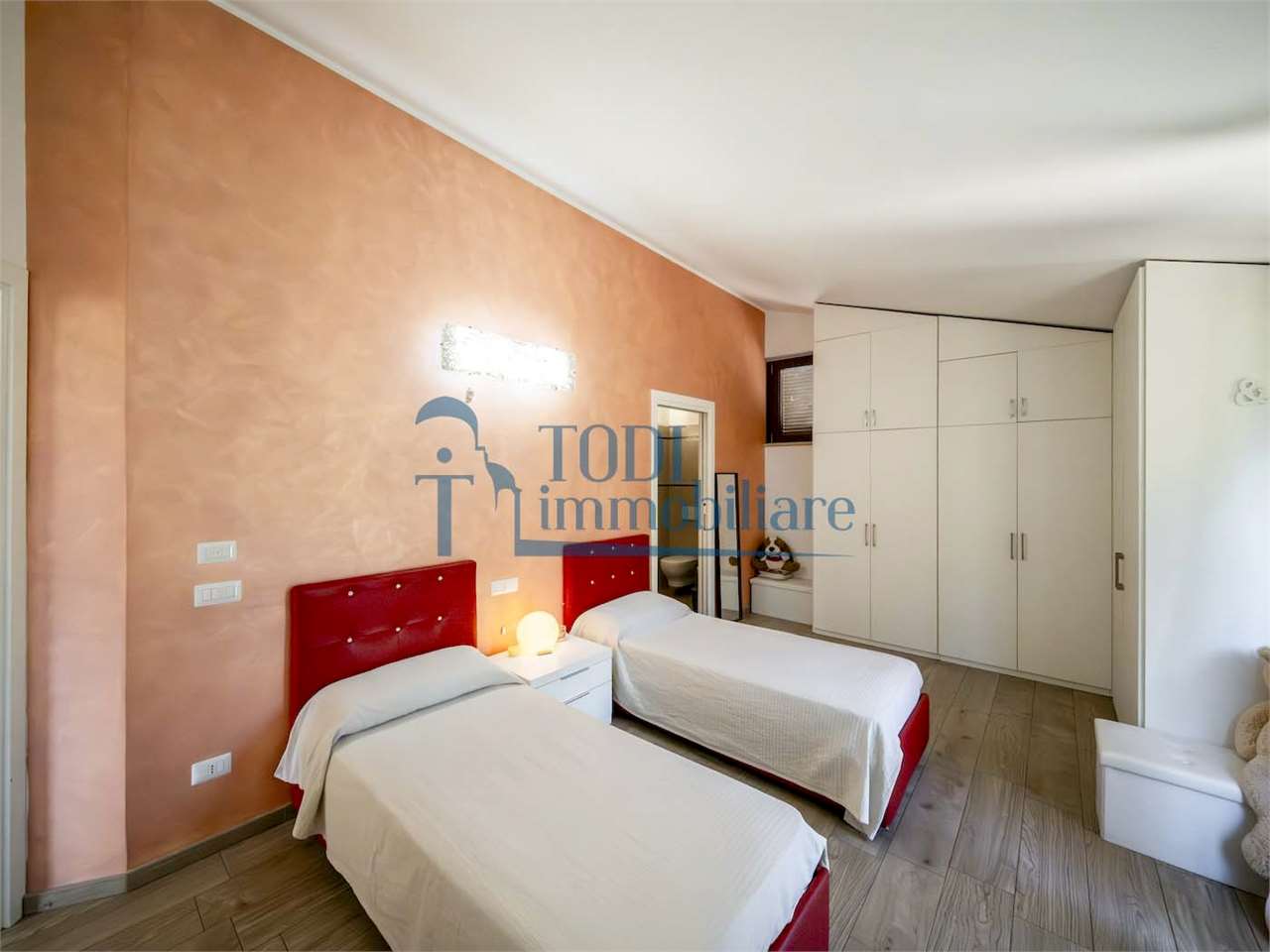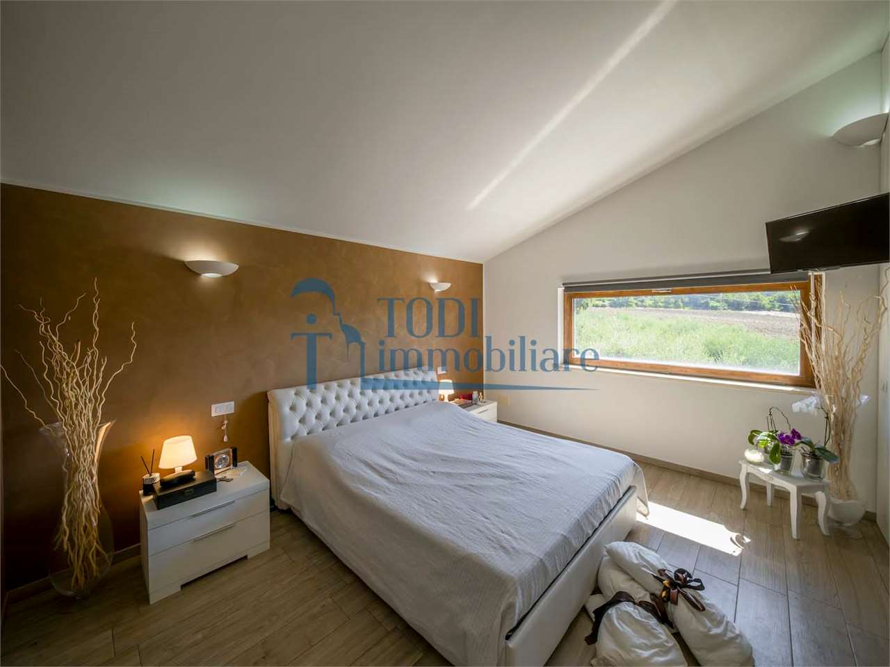 Nella pittoresca campagna di Casteltodino, a pochi chilometri da San Gemini e Terni, proponiamo in vendita una straordinaria proprietà che unisce comfort e fascino rurale. La posizione strategica, a ridosso della superstrada E-45, garantisce collegamenti agevoli con le maggiori città umbre e le mete turistiche della regione.\n\nLa proprietà include una villa indipendente di circa 370 m², caratterizzata da pareti esterne rivestite interamente in pietra locale, che richiamano l’autenticità dei tradizionali casali umbri. Il tutto è incorniciato da un terreno esclusivo e completamente recintato di 2.800 m², arricchito da una piscina, una tettoia per il ricovero delle auto e un uliveto con 70 piante attualmente in produzione.\n\nLa villa si sviluppa su tre livelli, ciascuno con funzioni ben definite: il piano terra ospita la zona giorno, il primo piano è dedicato alla zona notte, mentre il seminterrato accoglie una taverna, un’area SPA e un ampio garage. I piani sono comodamente collegati da un ascensore interno, una soluzione che aggiunge praticità e valorizza ulteriormente la proprietà.\n\nLa superficie abitativa è di circa 245 m², cui si aggiunge un terrazzo di 24 m², ideale per gustare colazioni o pranzi nella tranquillità delle colline circostanti. Al piano terra spiccano una luminosa sala con pareti completamente vetrate, una moderna cucina a induzione con vista panoramica, un doppio salone impreziosito da un elegante camino in marmo e zone relax dedicate alla lettura o alla TV, oltre a un bagno pratico e funzionale.\n\nAl primo piano troviamo tre ampie camere matrimoniali (di 35, 22 e 16 m²), tutte con bagno privato, oltre a un disimpegno che conduce all’ascensore. La camera padronale, particolarmente spaziosa, si distingue per la presenza di una cabina armadio e di un grazioso terrazzino con vista mozzafiato.\n\nIl piano seminterrato rappresenta una vera aggiunta di valore alla proprietà. Qui si trovano una grande taverna con angolo cucina, camino, forno a legna e patio esterno perfetto per aperitivi; un’area SPA dotata di vasca idromassaggio per quattro persone, sauna/bagno turco e bagno completo; infine, un doppio garage con zona lavanderia.\n\nIl terreno pertinenziale è organizzato in diverse aree: un giardino curato nei minimi dettagli con impianto di irrigazione automatica e robot per il taglio dell’erba; una zona piscina; uno spazio dedicato all’uliveto e infine un piazzale con tettoia per due auto. L’uliveto offre un’eccellente produzione stagionale, generando circa 5 quintali di olive nell’ultima stagione.\n\nLa piscina in muratura misura 8x16 metri ed è dotata di acqua salata, bordo pavimentato e lettini per garantire massimo relax. Gli spazi esterni sono stati progettati per offrire comfort ottimale e grande vivibilità.\n\nLa proprietà è arricchita da dettagli tecnici di alta qualità: infissi esterni con vetri antisfondamento e zanzariere al piano terra; persiane in legno al primo piano; riscaldamento a pavimento alimentato sia a GPL che a pellet; impianto fotovoltaico da 6 kW con accumulo da 10 kW e pannelli solari per l’acqua calda; pozzo con acqua sorgiva; cancelli automatici carrabili e pedonali in ferro battuto; porta basculante del garage motorizzata; colonna per lavatrice e asciugatrice. Completano la villa i pavimenti in marmo al piano terra e in gres porcellanato negli altri ambienti, oltre alla connessione internet.\n\nAcquistare questa straordinaria proprietà significa regalarsi un raffinato stile di vita nell’autentica campagna umbra: un luogo dove il giorno inizia con il canto degli uccelli e si conclude con tramonti spettacolari. Contattaci e trasforma il tuo sogno in realtà!