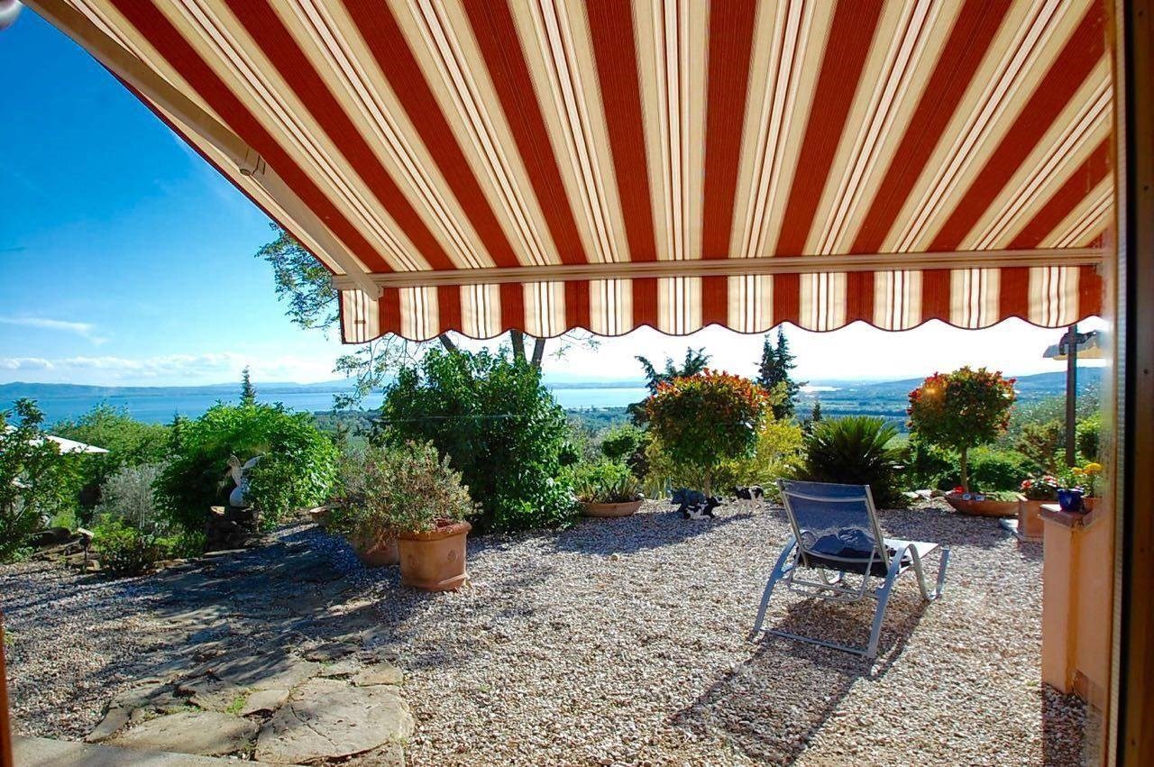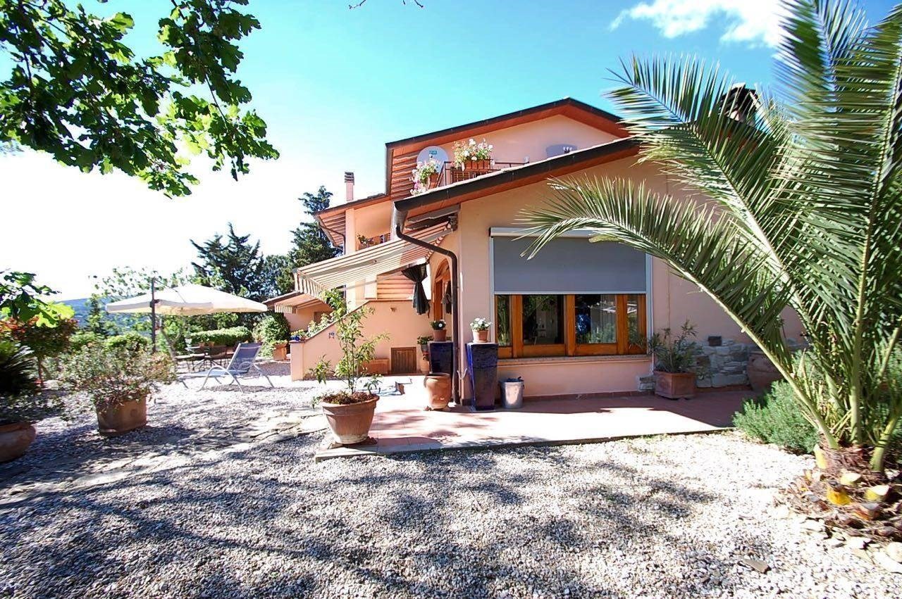 SCOPRILO SUBITOAmpia villa in posizione privilegiata, immersa nel verde con splendido panorama sul Lago Trasimeno sulle isole e le colline della Toscana dietro. Si trova a soli 2,5 km da un paese vivace con tutti i servizi, e a soli 30 minuti da città come Perugia e Cortona. La villa su 3 piani ha un ampio soggiorno open space con cucina al piano terra, 2 grandi camere con terrazze al piano primo, 3 bagni, oltre a portici e terrazze su più lati. Inoltre un appartamento per ospiti con soggiorno, cucina, bagno e camere, e un garage per 6 auto con studio nel piano seminterrato. Tutto in ottimo stato. La proprietà si trova al centro di 4,5 ha di terreno agricolo, con strada privata, ulivi secolari, pascolo e bosco. Una casa comoda in mezzo alla natura e allo stesso tempo vicino a tutte le comodità.