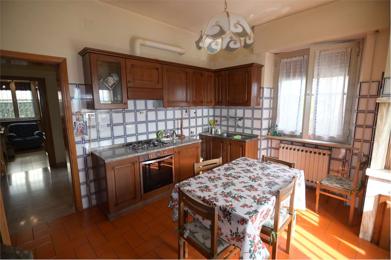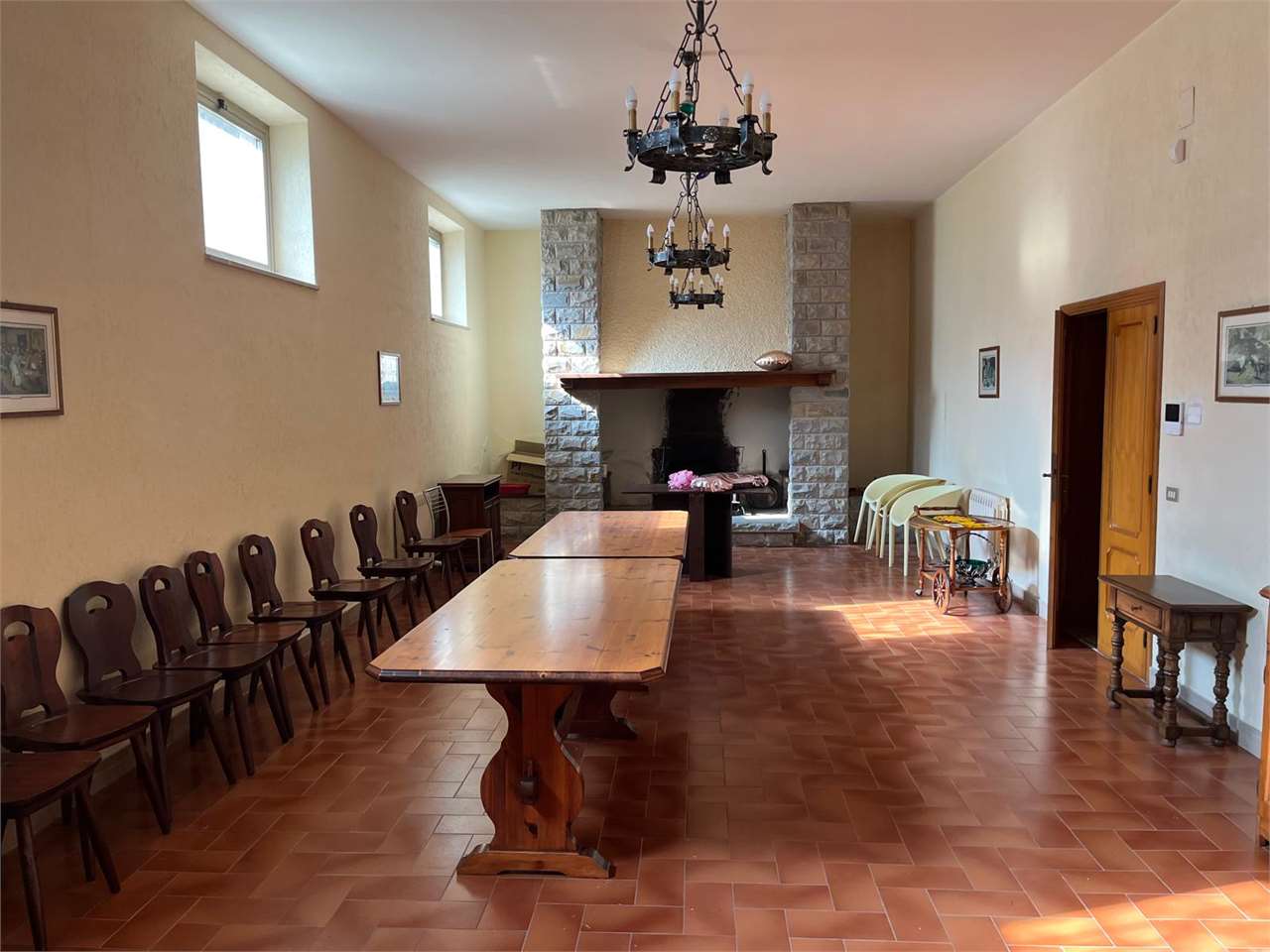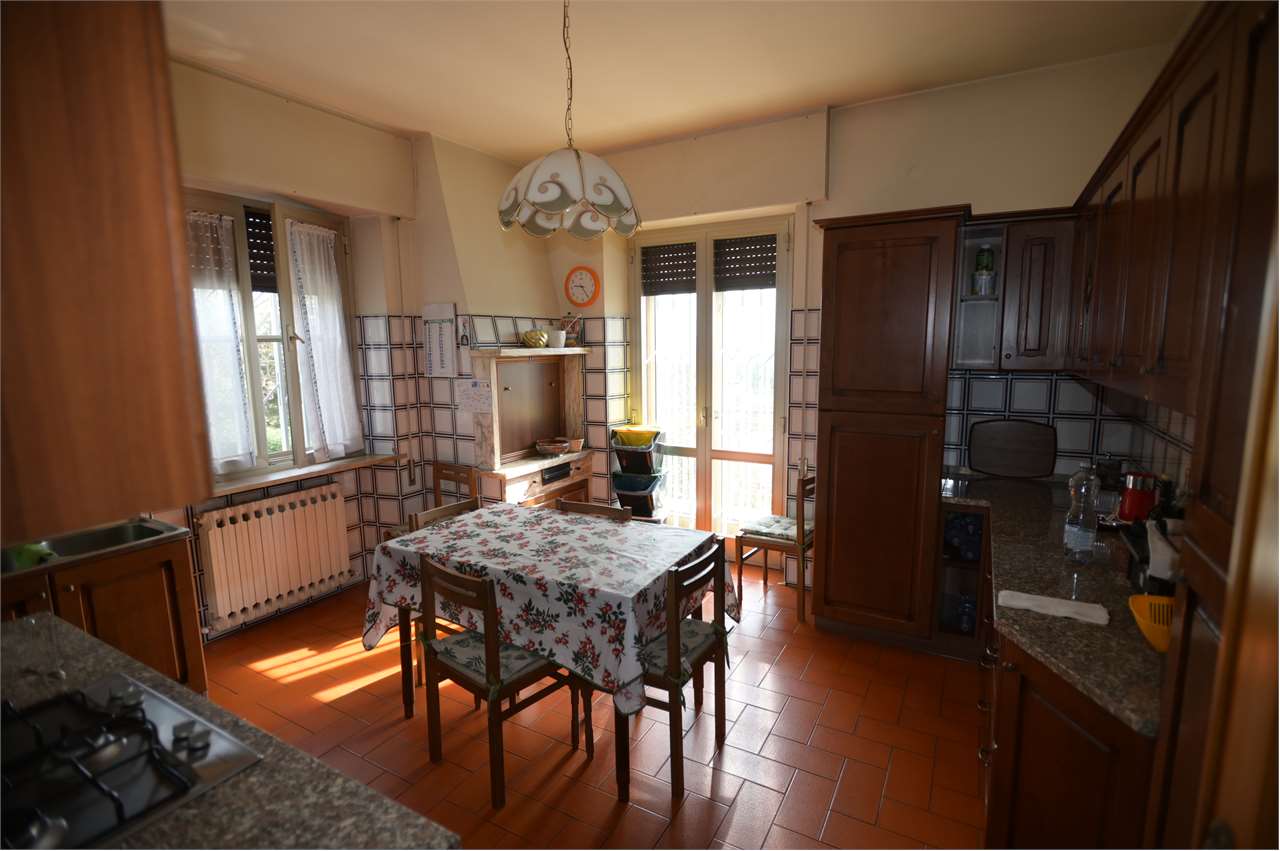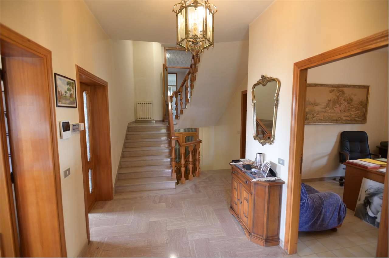 CASAGLIA: Proponiamo in vendita villa indipendente di grandi dimensioni, in posizione panoramica ed in buono stato d\'uso.\nDisposta su 3 livelli, con giardino recintato sui 4 lati di circa 500 mq.\nIl piano terra è composto da ampio garage (per 4 auto con 2 accessi carrabili), lavanderia/stireria, magazzino, bagno, cantina, centrale termica/locale tecnico, cucina di sevizio ed ampio salone rustico con camino di circa 60 mq, con accesso diretto al giardino.\nAl primo piano troviamo nella zona giorno l\'ingresso principale, al quale si accede direttamente con una scala esterna, salone doppio con camino e terrazzo, cucina abitabile con ulteriore terrazzo, studio e bagno di servizio finestrato, nella zona notte 3 camere matrimoniali e 2 bagni.\nAl secondo piano 2 camere, bagno, ulteriore salone doppio con camino, e soffitta di oltre 100 mq.\nPer ulteriori informazioni 07530040.