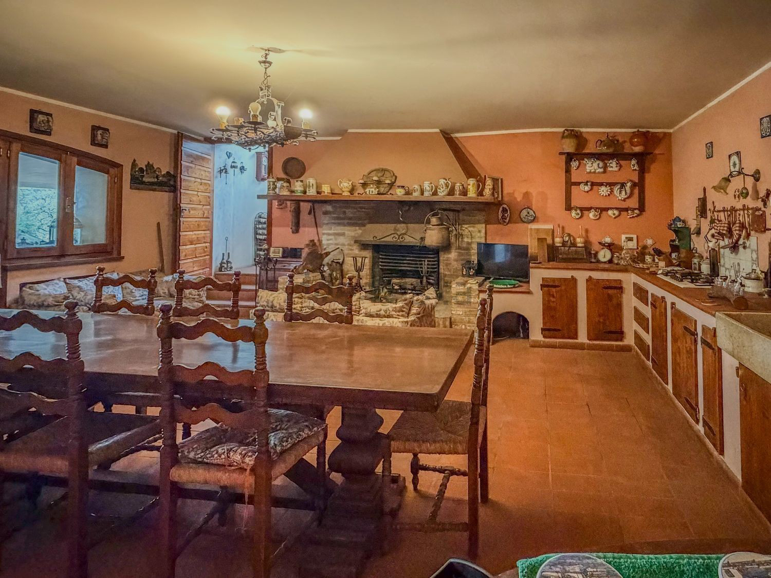- Piano seminterrato: zona giorno con accesso a una grande veranda, sala biliardo, bagno, fondi e garage