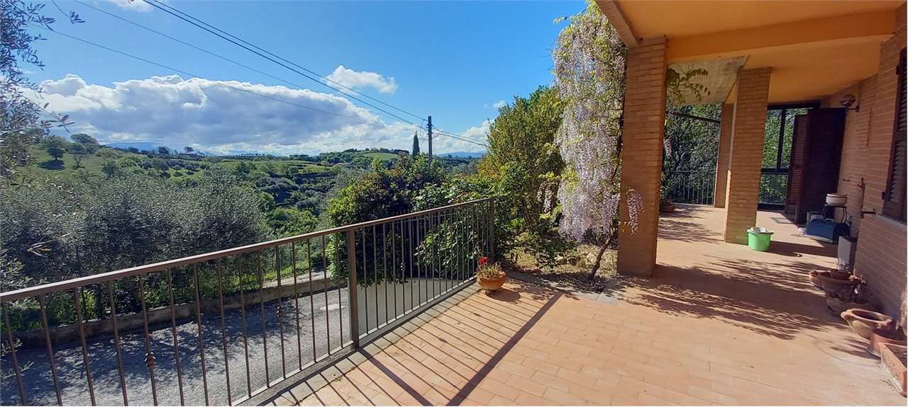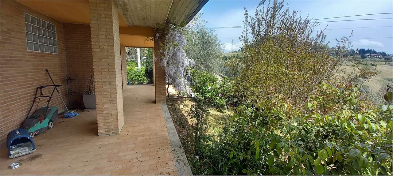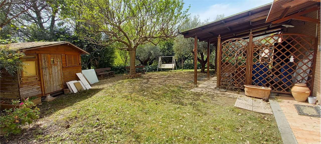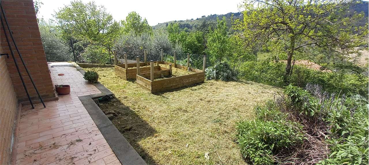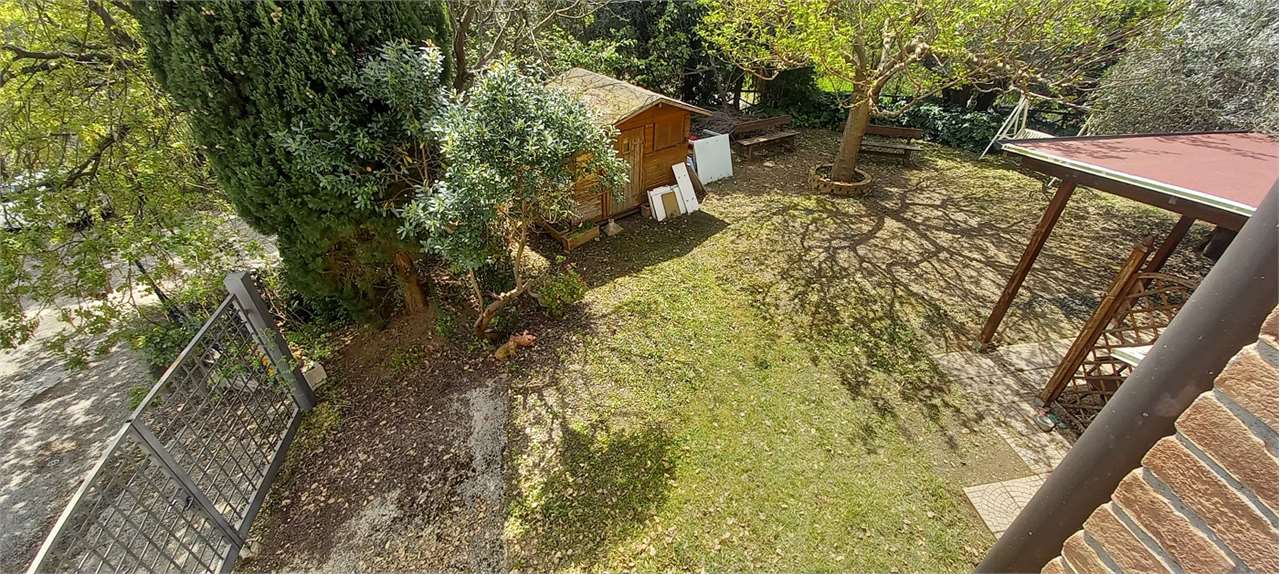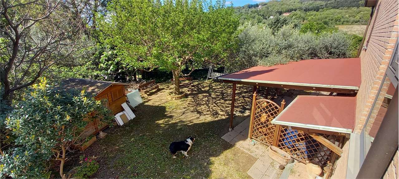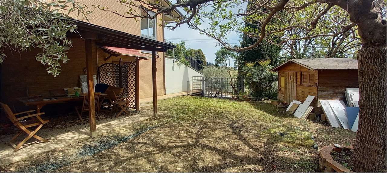 Perugia, Montebagnolo. In contesto riservato e silenzioso, al termine di una strada privata priva di traffico, proponiamo in vendita una villetta indipendente in ottime condizioni, circondata da un ampio giardino privato e con spazi interni luminosi e funzionali.\nComposizione interna\nPiano Terra: Ampia taverna con cucina a vista, camino e stufa a legna. Bagno di servizio e spazioso garage con basculante elettrica. Inoltre locale versatile attualmente adibito a studio. Dotato di accesso diretto al giardino, rialzato rispetto al piano strada \nPiano Primo: Grande salone molto luminoso con uscita su portico coperto e piccolo giardino, cucina separata con accesso diretto all’esterno, due ampie camere matrimoniali, due bagni finestrati, uno con vasca e uno con doccia.\nPiano Mansardato: Ampio open space con altezze comode e ben fruibili, due camere da letto, un bagno e accesso al lastrico solare. \nEsterni: L’abitazione è circondata da un ampio giardino privato, perfettamente sfruttabile per momenti di relax e convivialità.\nCaratteristiche: Infissi in legno con doppio vetro, ambienti luminosi e ben distribuiti, contesto tranquillo e panoramico. Ottimo stato di manutenzione. Una soluzione ideale per chi cerca la tranquillità, senza rinunciare alla vicinanza ai principali servizi e al comfort di una casa spaziosa e indipendente.