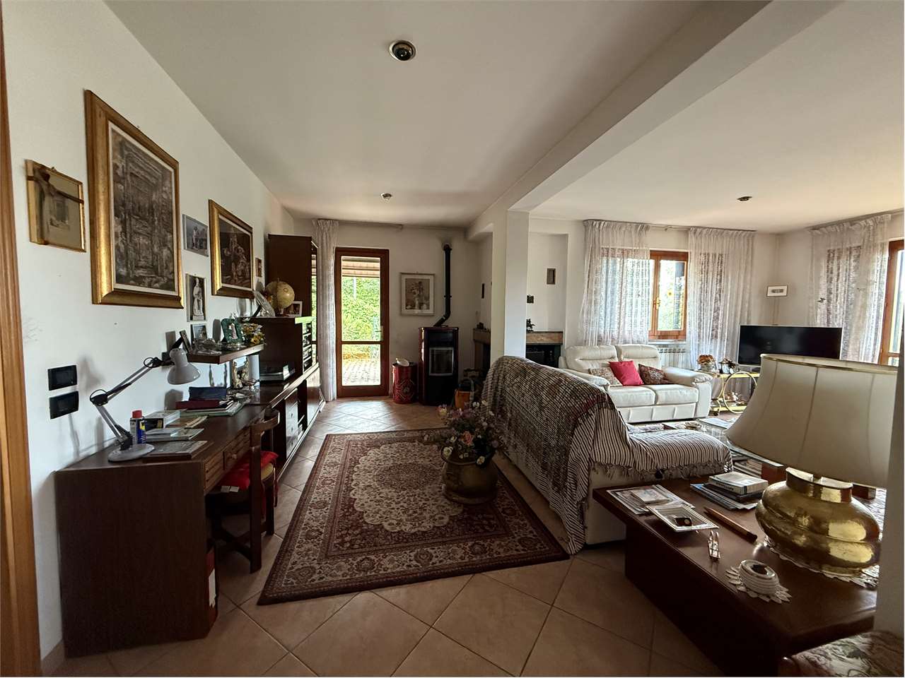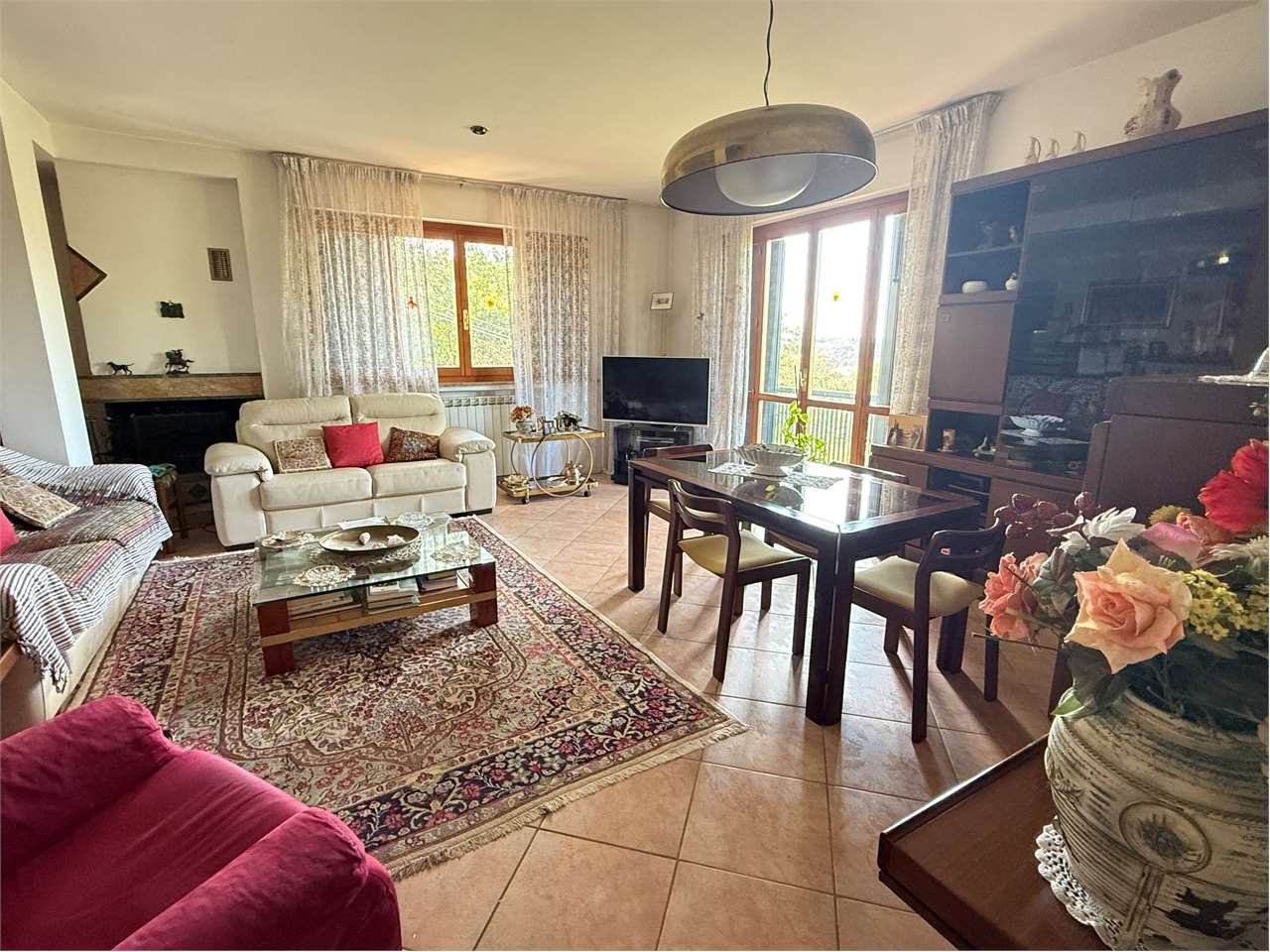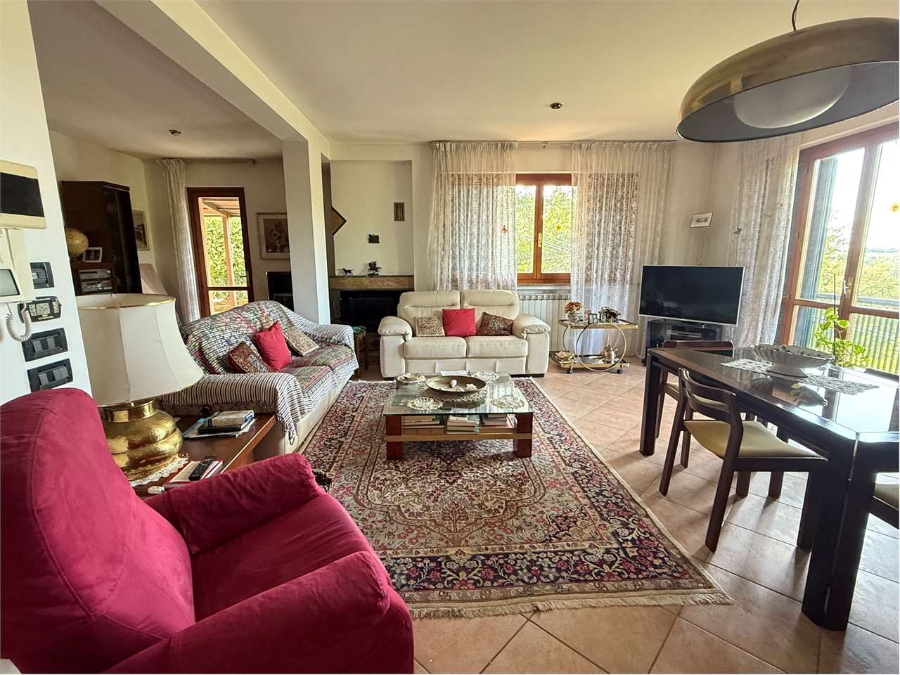 Perugia, Vestricciano, a 1 km da Ponte della Pietra, in zona residenziale tranquilla e molto panoramica, vicino a tutti i servizi più importanti, disponiamo di villa singola costruita nel 1995. La villa, di mq 420 ca., disposta su tre livelli, è completamente recintata con lastrico e giardino ben curato, di mq 1500 ca., ed è così composta: \n\n-Piano seminterrato, mq 150 ca.: ingresso, scala di accesso ai piani superiori, ampio rustico con angolo cucina di mq 60 ca., bagno lavanderia con finestra, ripostiglio, portico d\'ingresso completamente verandato di mq 55 ca. e giardino, garage di mq 43 ca. \n\n-Piano terra, mq 125 ca.: ingresso, soggiorno con camino, cucina abitabile, due camere matrimoniali, due bagni con finestra di cui uno nella camera principale, terrazzo di mq 80 ca.. Possibilità di creare la terza camera.\n\n-Piano primo, mq 105 ca., mansarda così composta: ingresso, soggiorno con camino, cucina vivibile, terrazzo panoramico, 2 stanze, terrazzo, bagno con lucernario, ampia soffitta.\n\nFiniture di ottimo livello, tutti i pavimenti sono in porcellana nella zona giorno e in parquet nella zona notte, i portone sono in legno, le porte sono in legno, gli infissi sono in legno con vetri termici e persiane, impianto d\'allarme volumetrico e perimetrico, predisposizione per aria condizionata. Impianto termico classico con termosifoni e caldaia alimentata a GPL, oltre stufa a pellet e camino.\n\nPer ulteriori informazioni contattare Michele Merli 335*5636517\n\nTutti i dati indicati relativi all\'immobile sono stati forniti in buona fede dal proprietario e non costituiscono elemento contrattuale, pertanto l’agente immobiliare non si assume nessuna responsabilità.